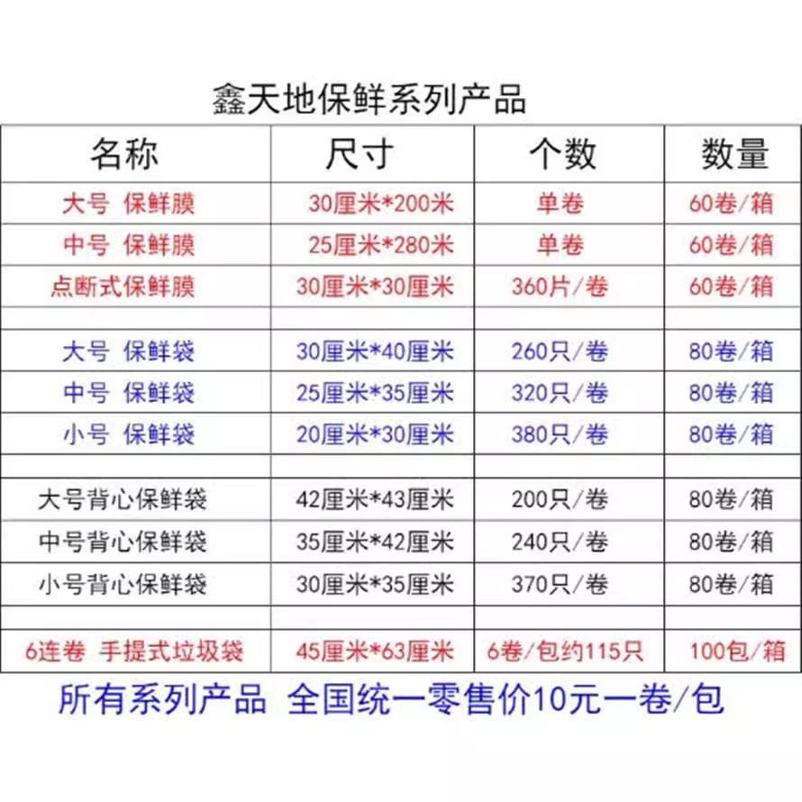 | 保鲜袋大80/箱 | USD $0.0 | 916259 piece available |