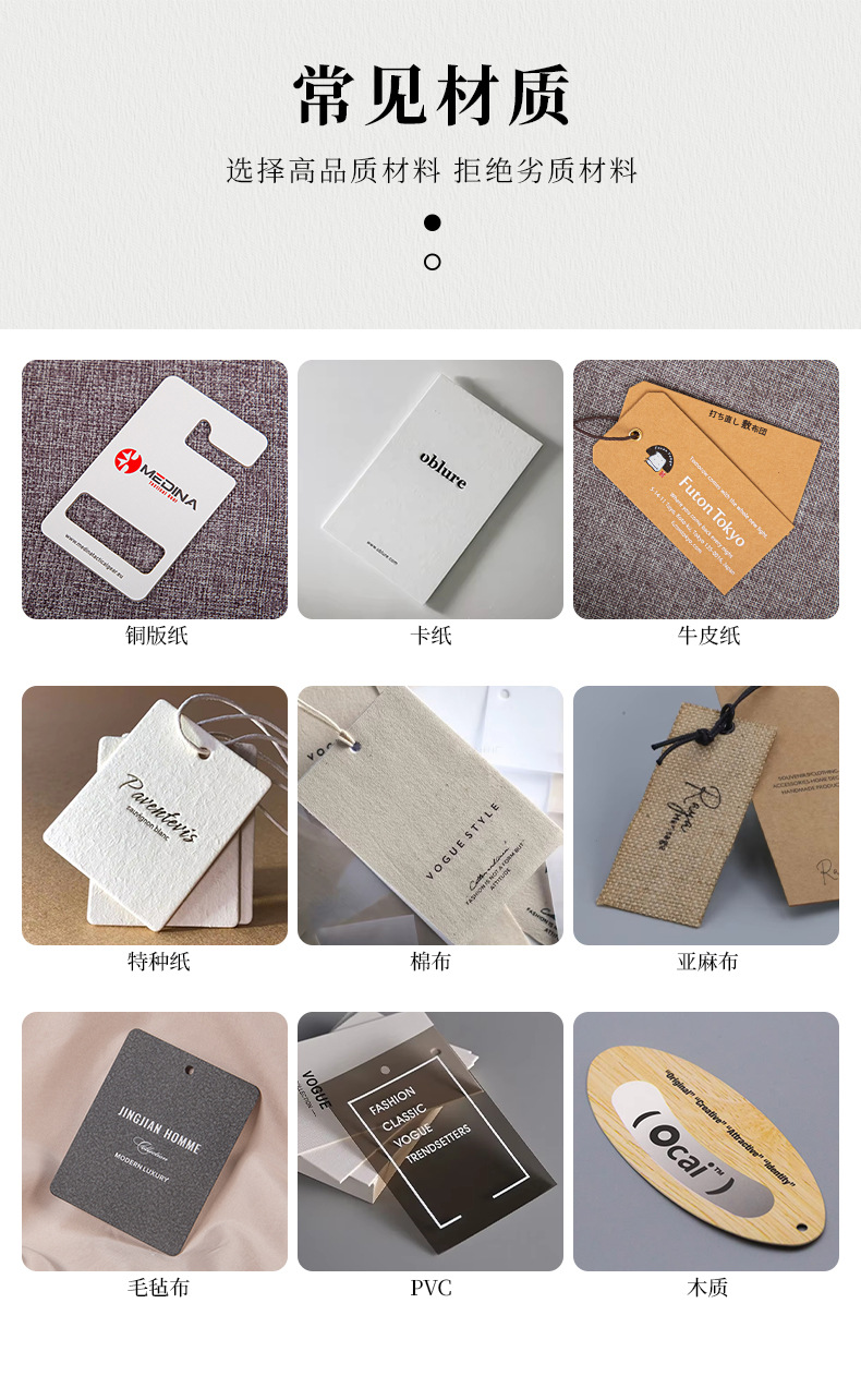 服装吊牌挂牌标签价格牌合格证产品信息卡说明书备扣袋定制工厂