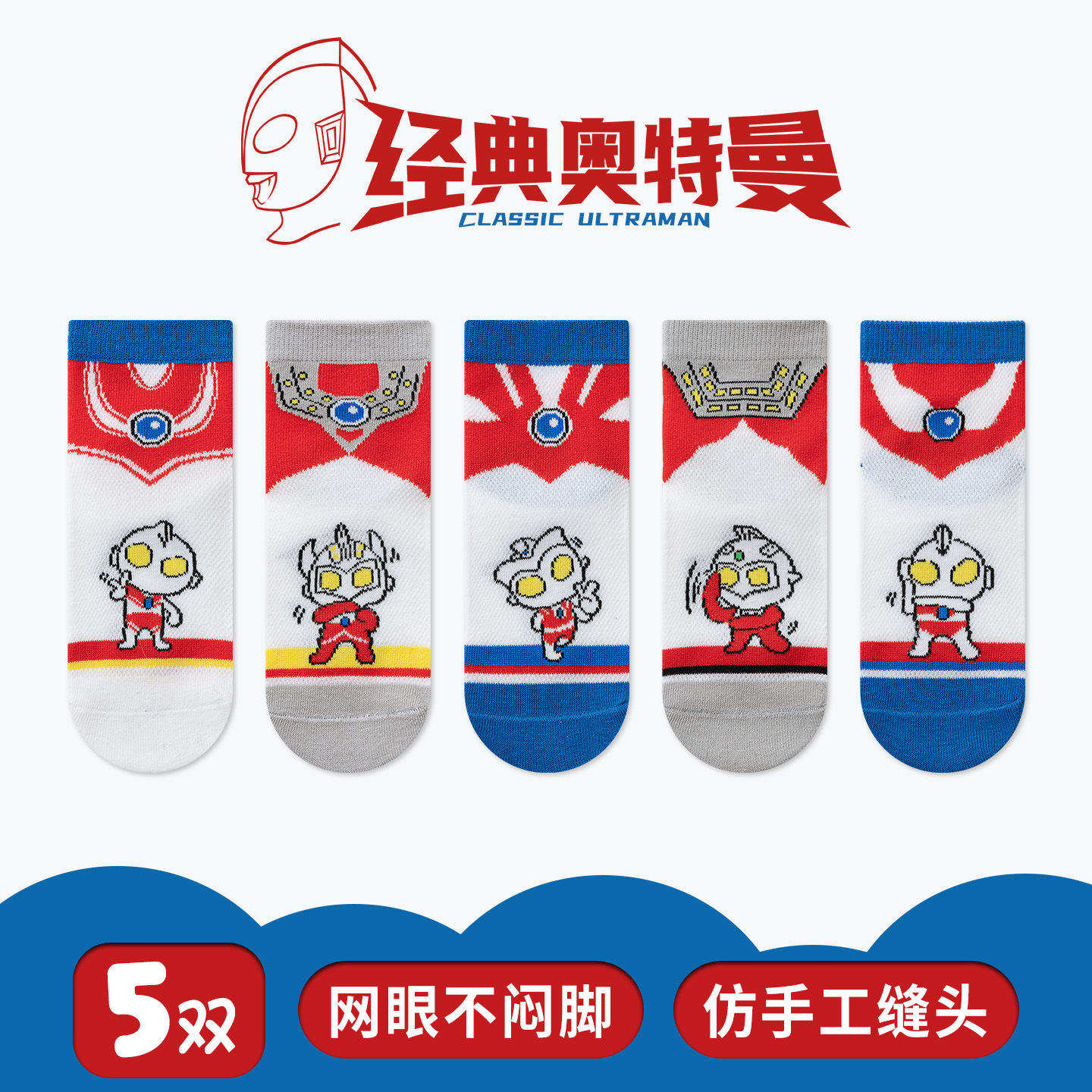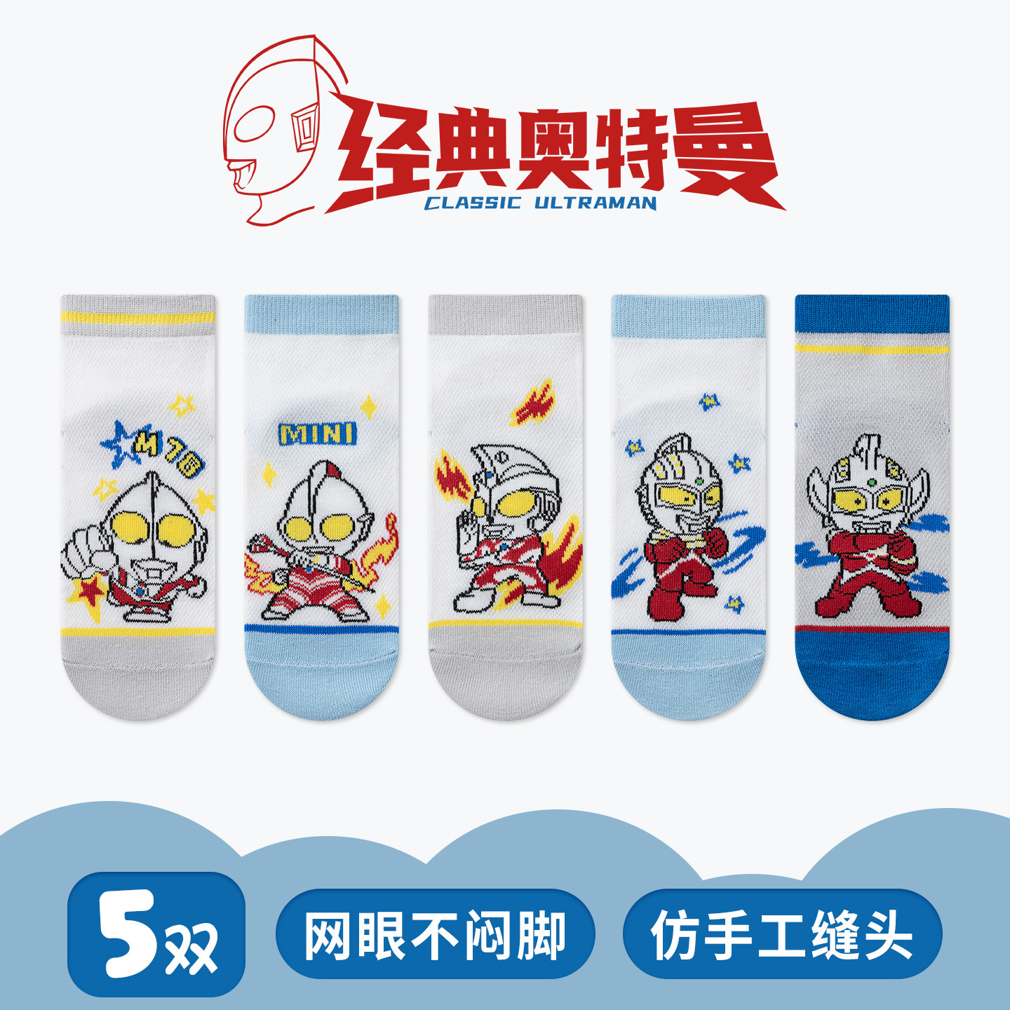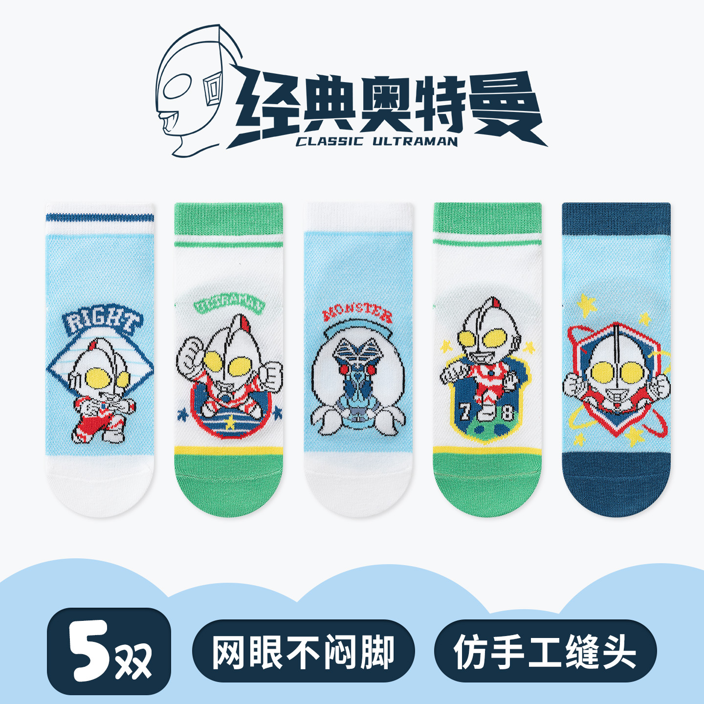 经典奥特曼男童袜子儿童袜26夏季薄款透气男孩宝宝中筒袜a类网眼