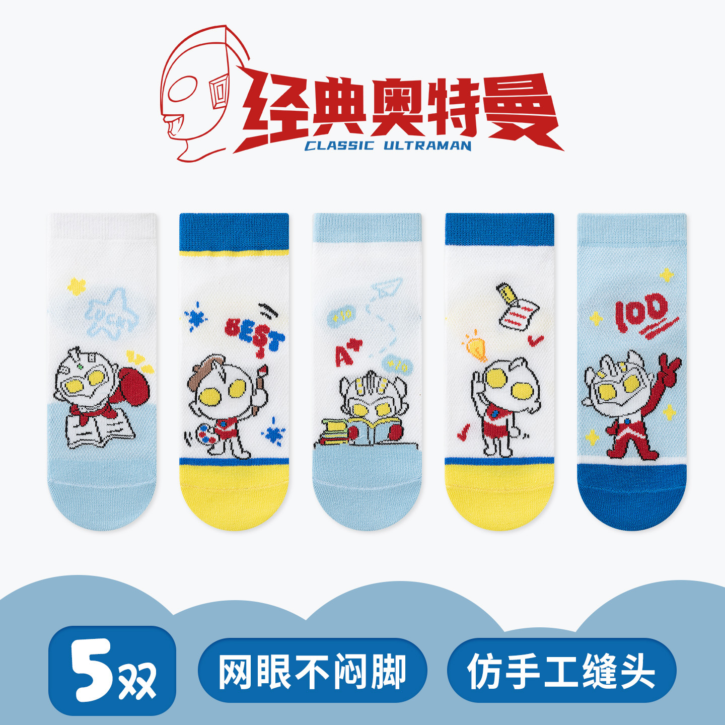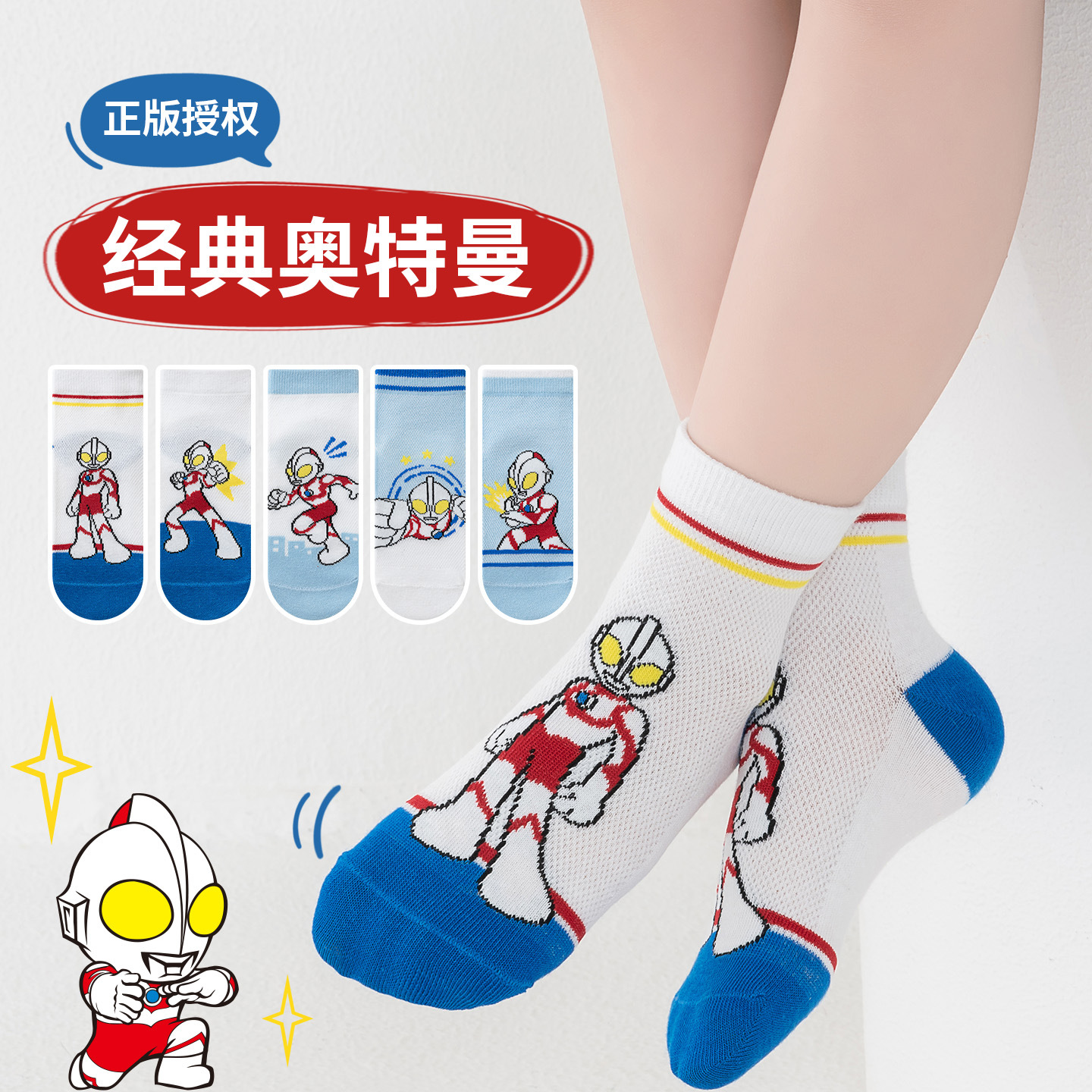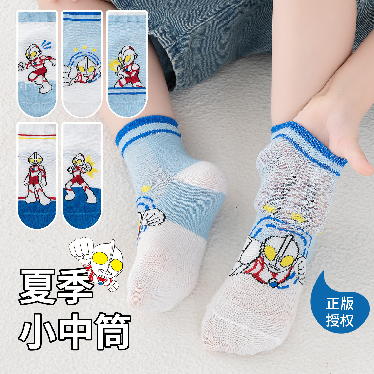 经典奥特曼男童袜子儿童袜26夏季薄款透气男孩宝宝中筒袜a类网眼