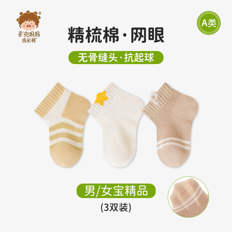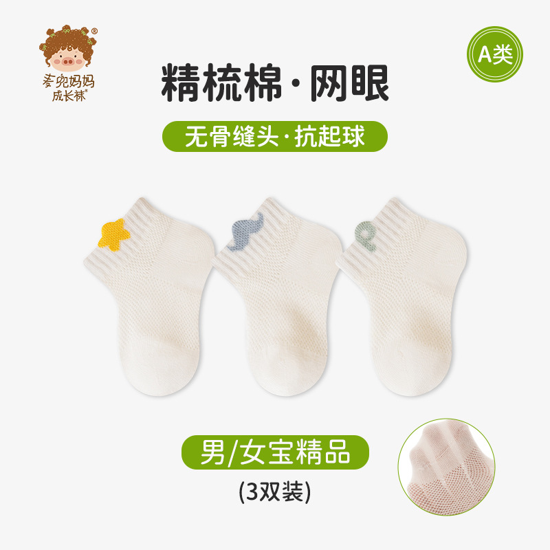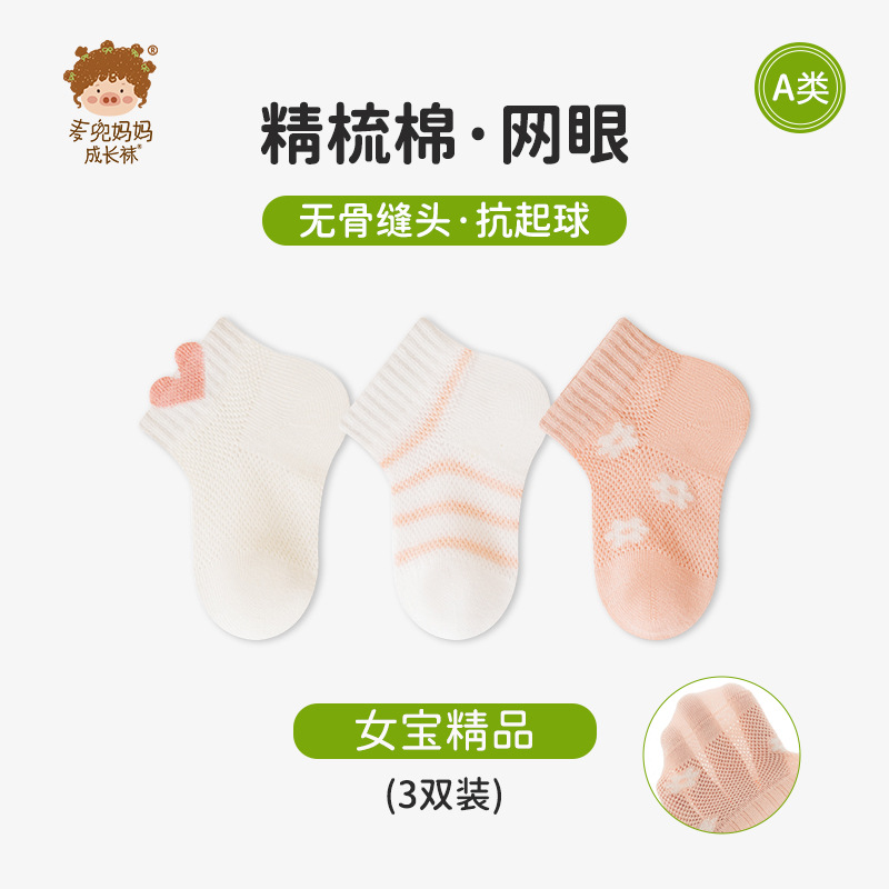 a类婴幼儿童袜子春夏薄款男女童棉袜短筒网眼袜子全棉透气宝宝袜
