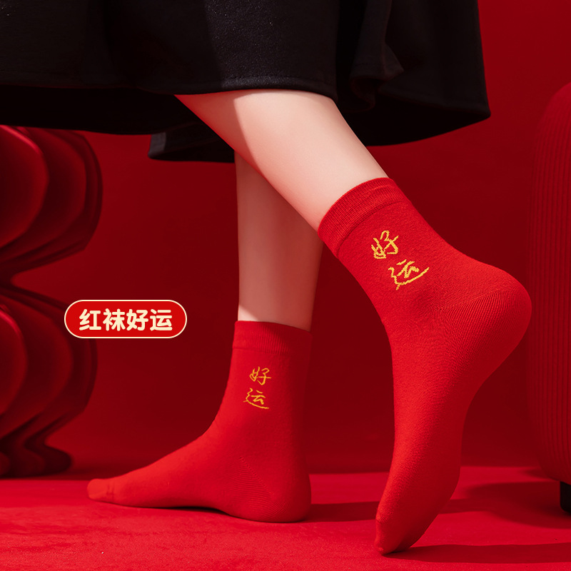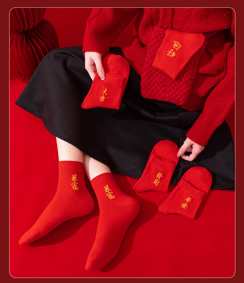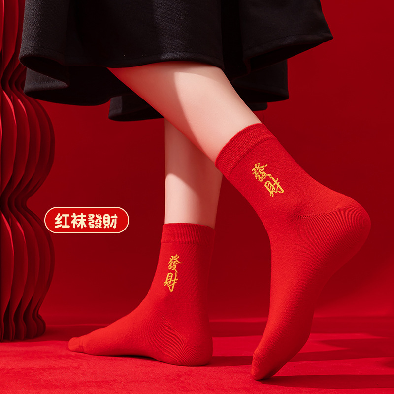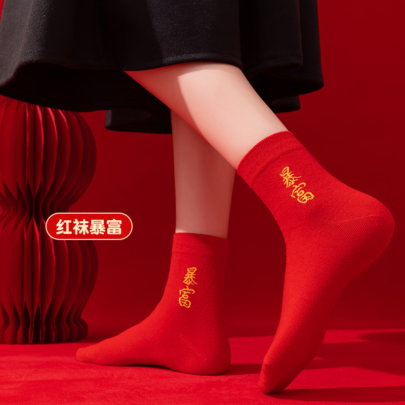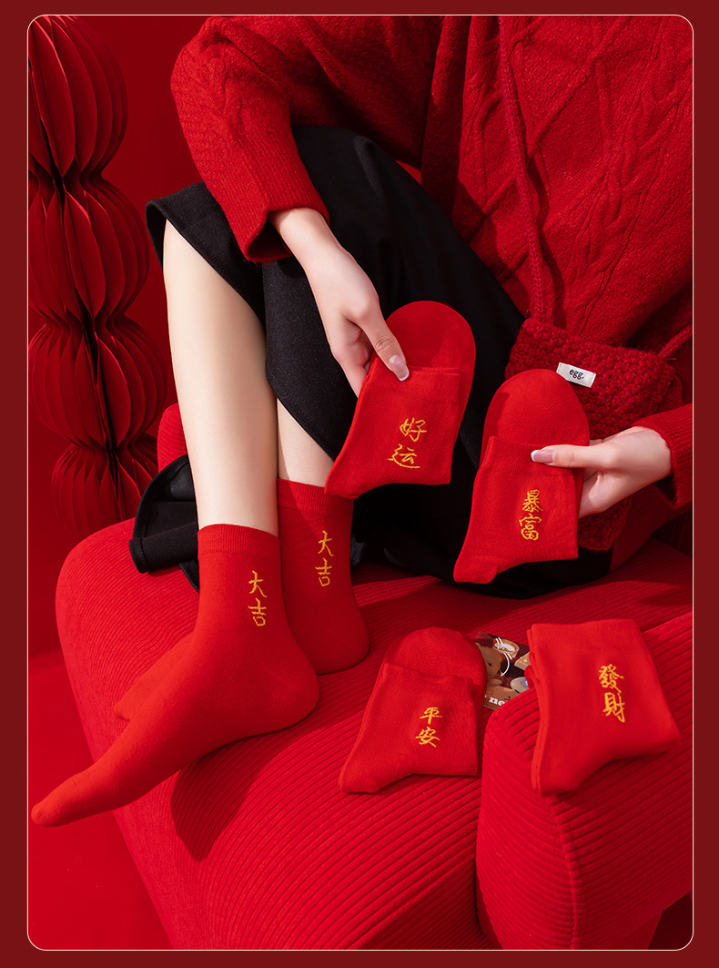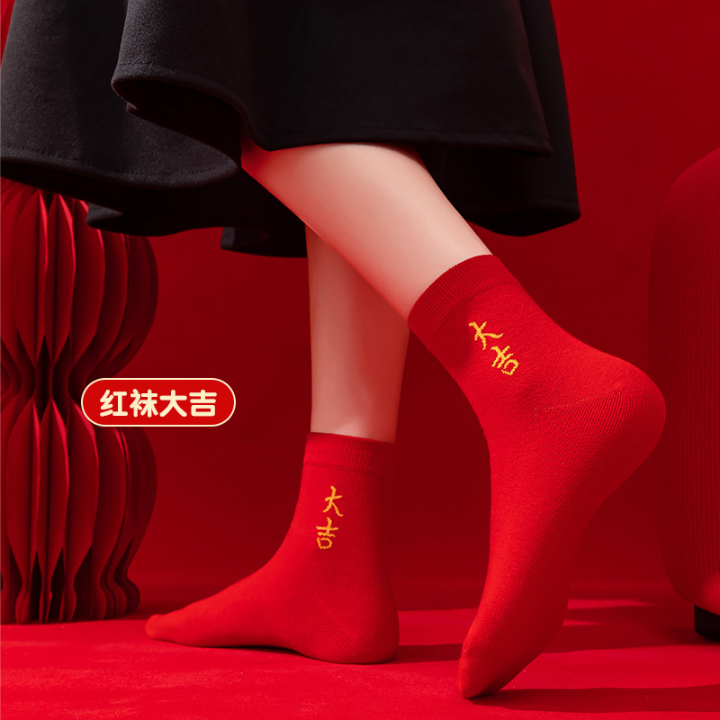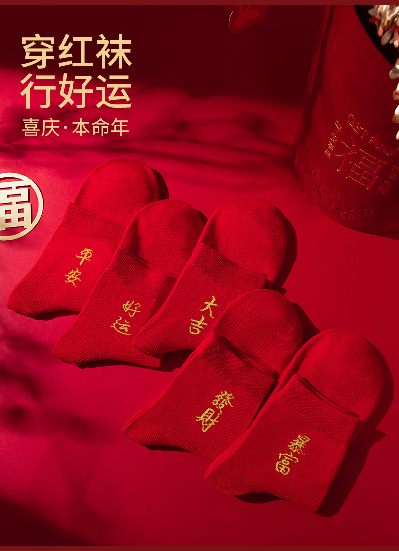 本命年大红色袜子棉新年大吉平安暴富发财好运袜子结婚情侣喜袜