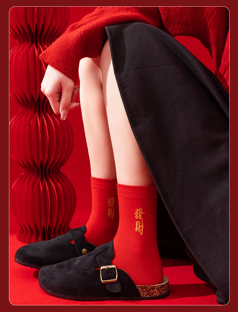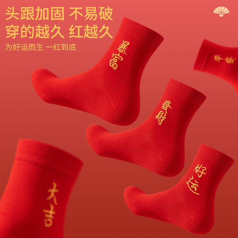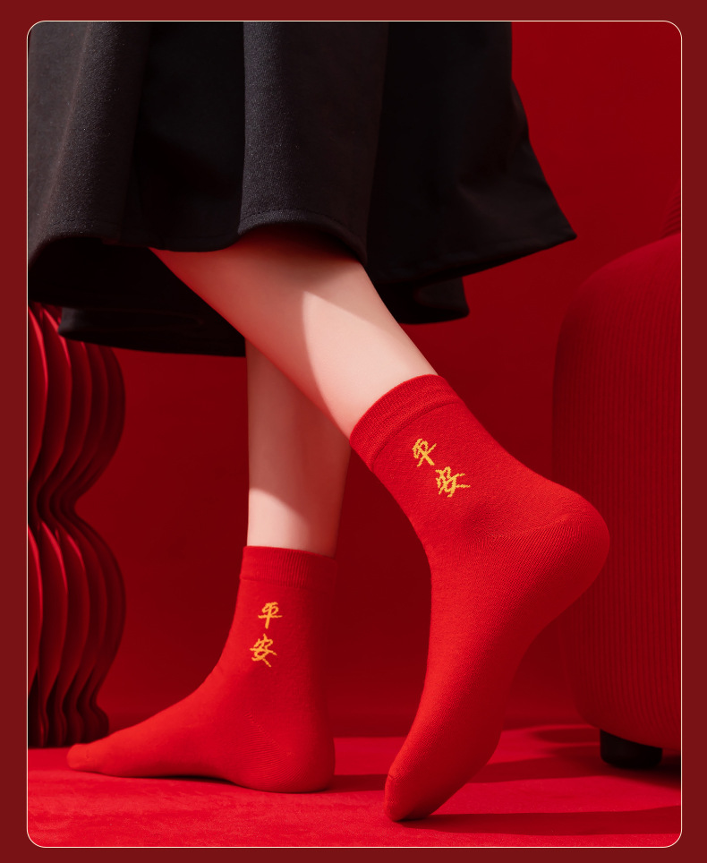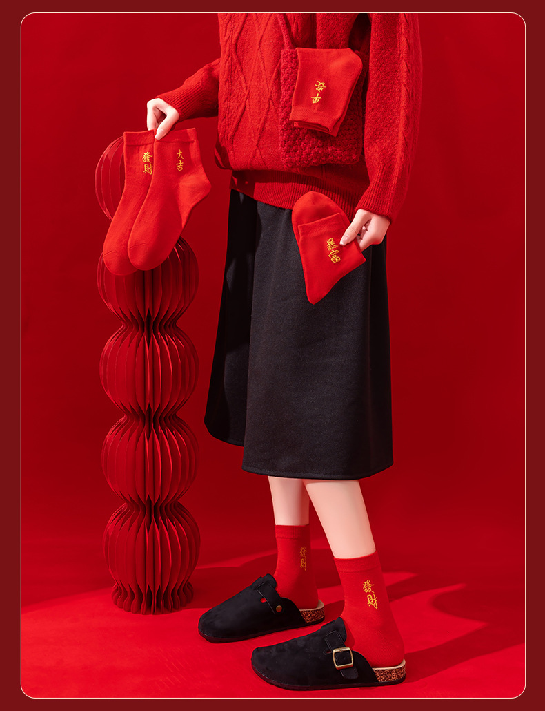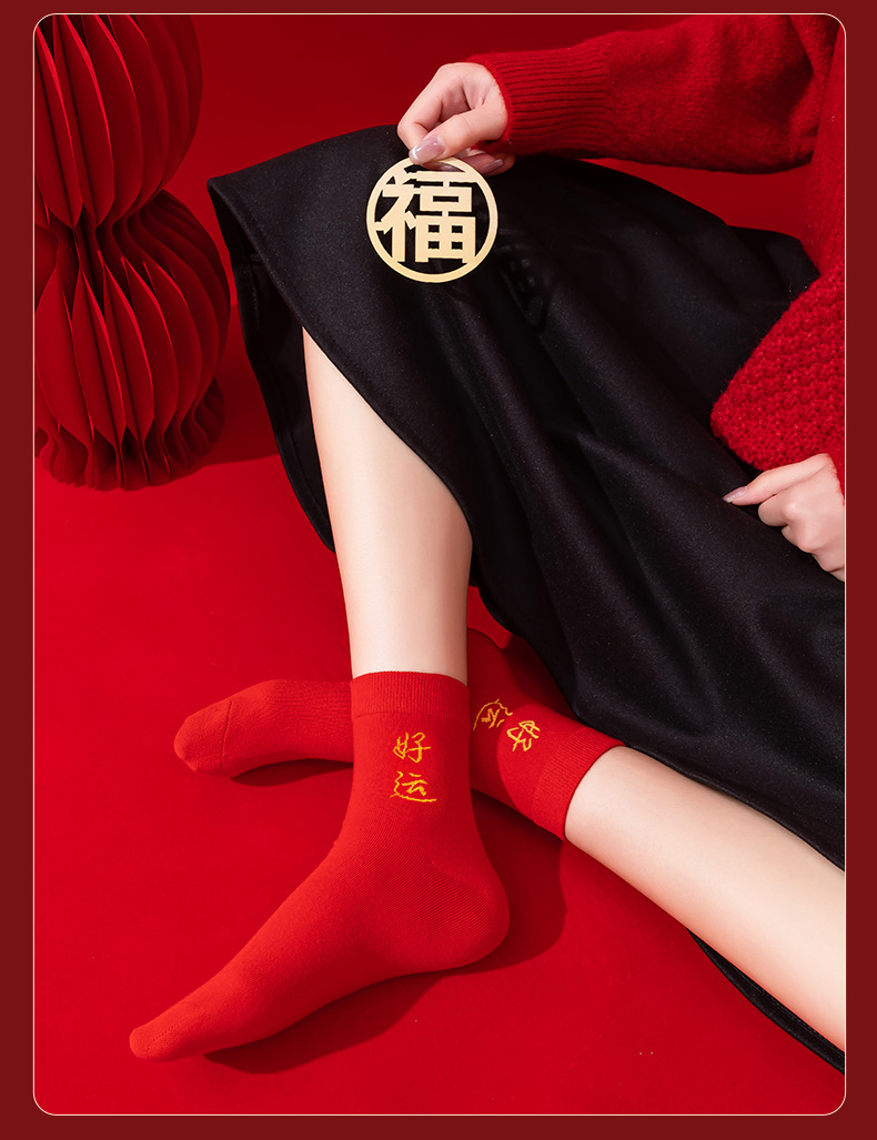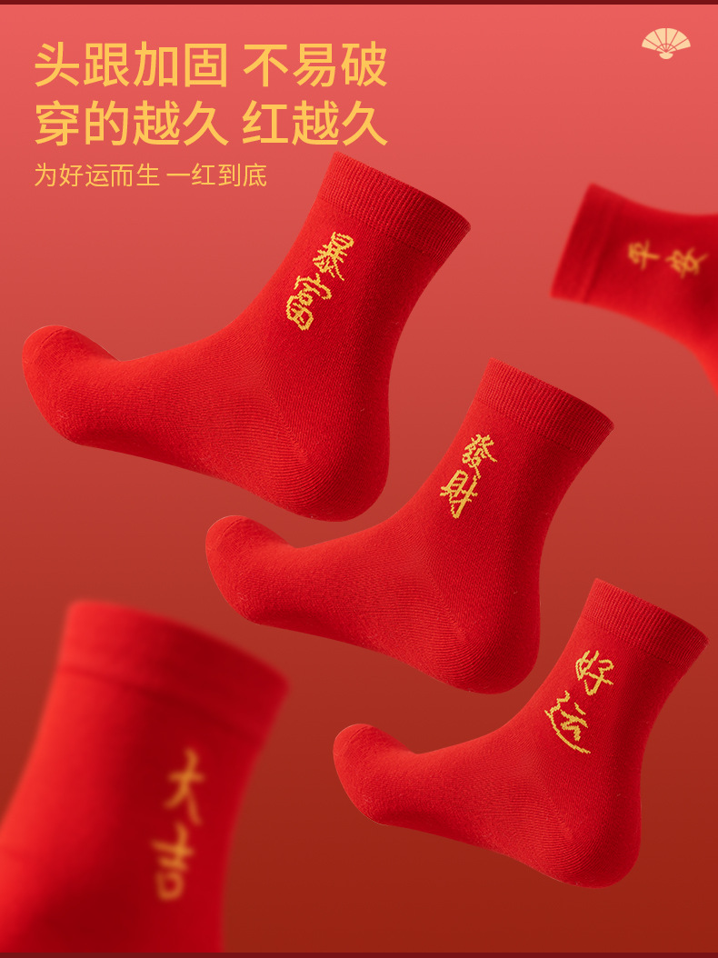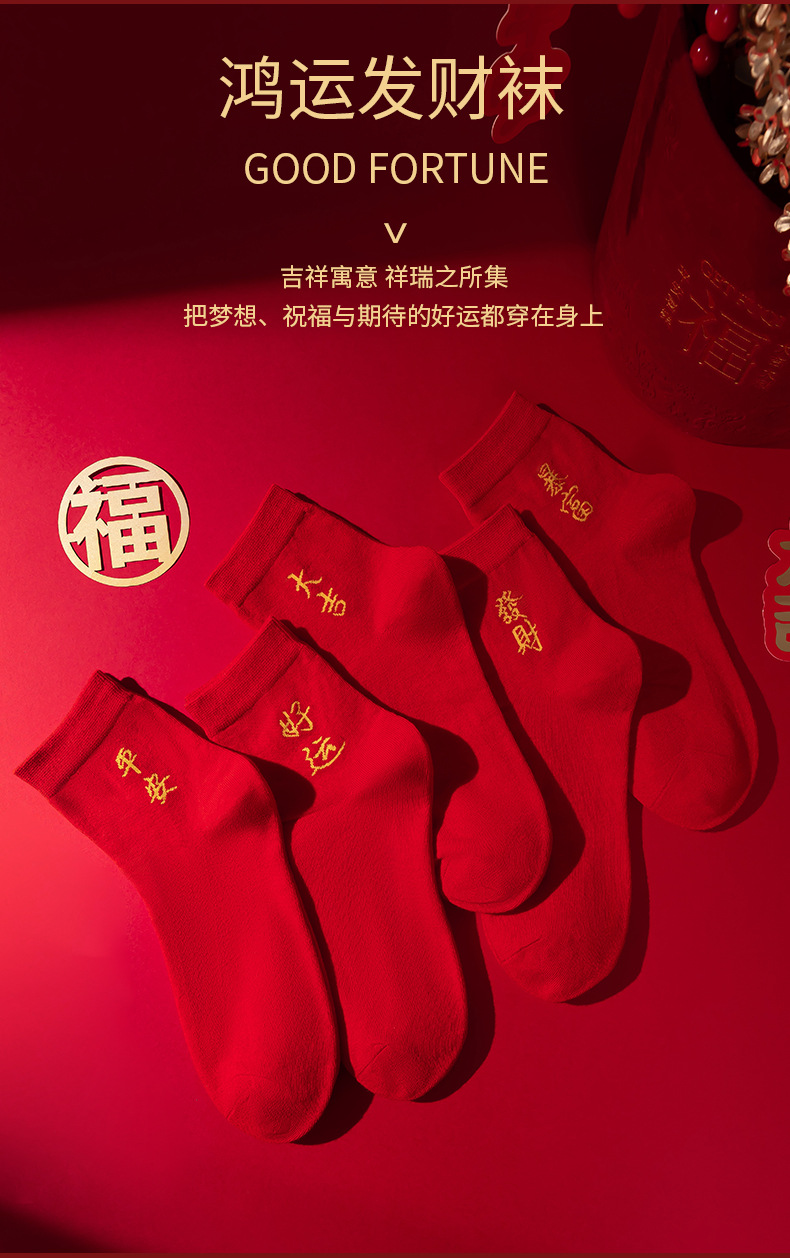 本命年大红色袜子棉新年大吉平安暴富发财好运袜子结婚情侣喜袜