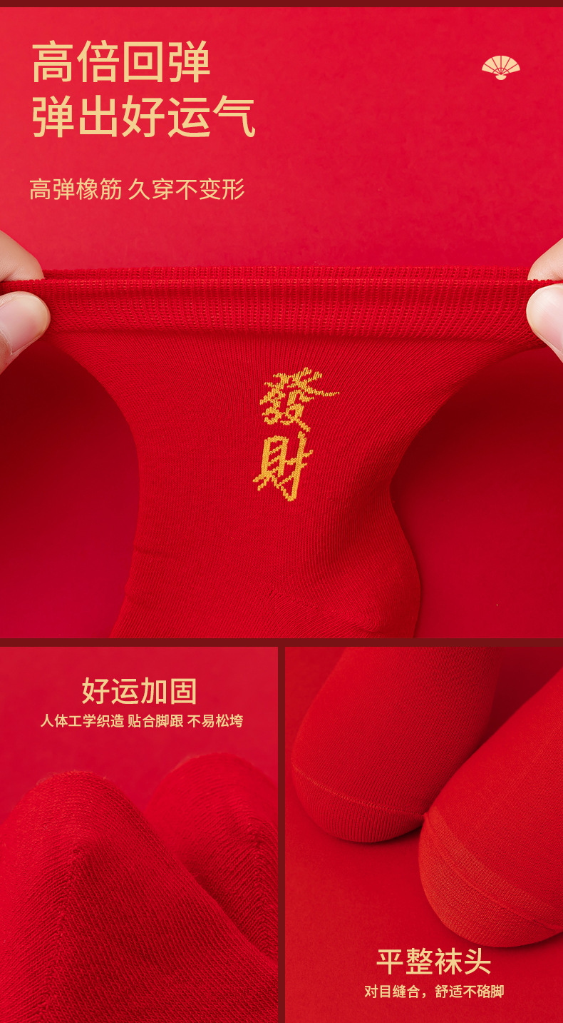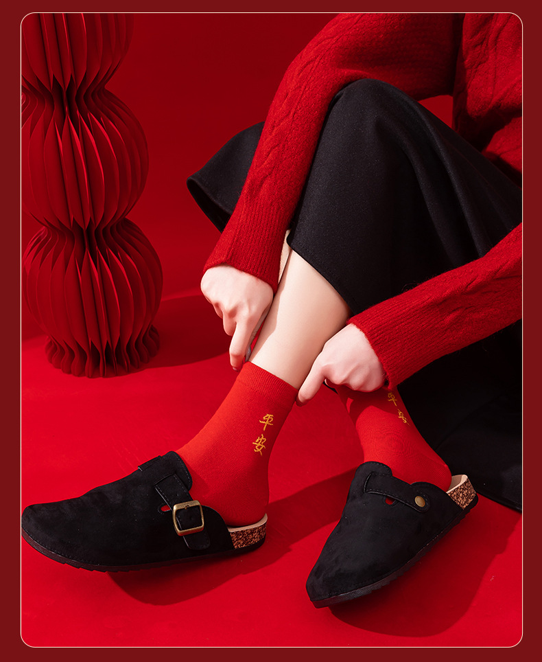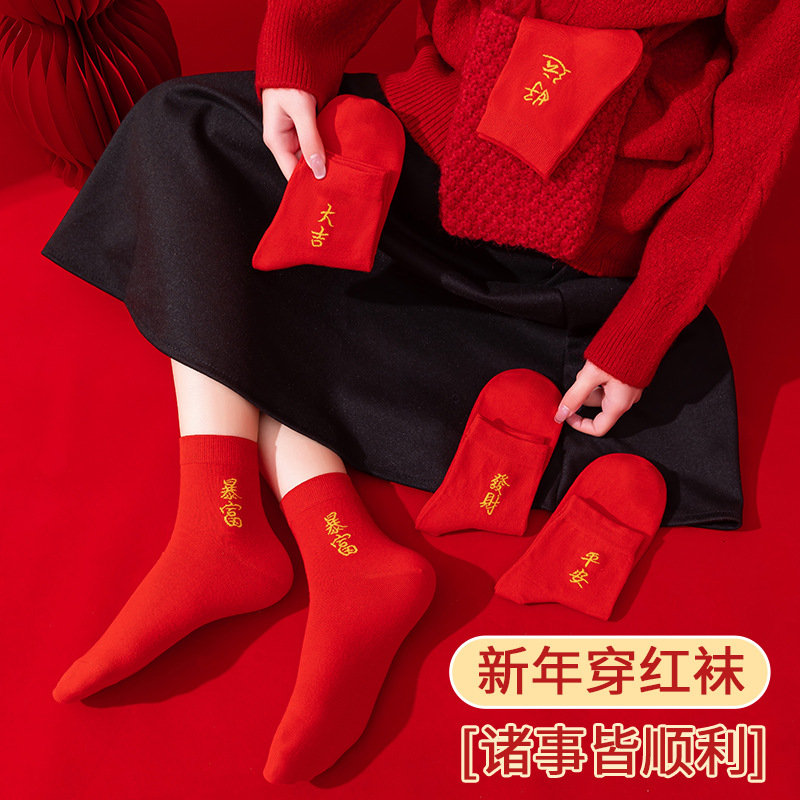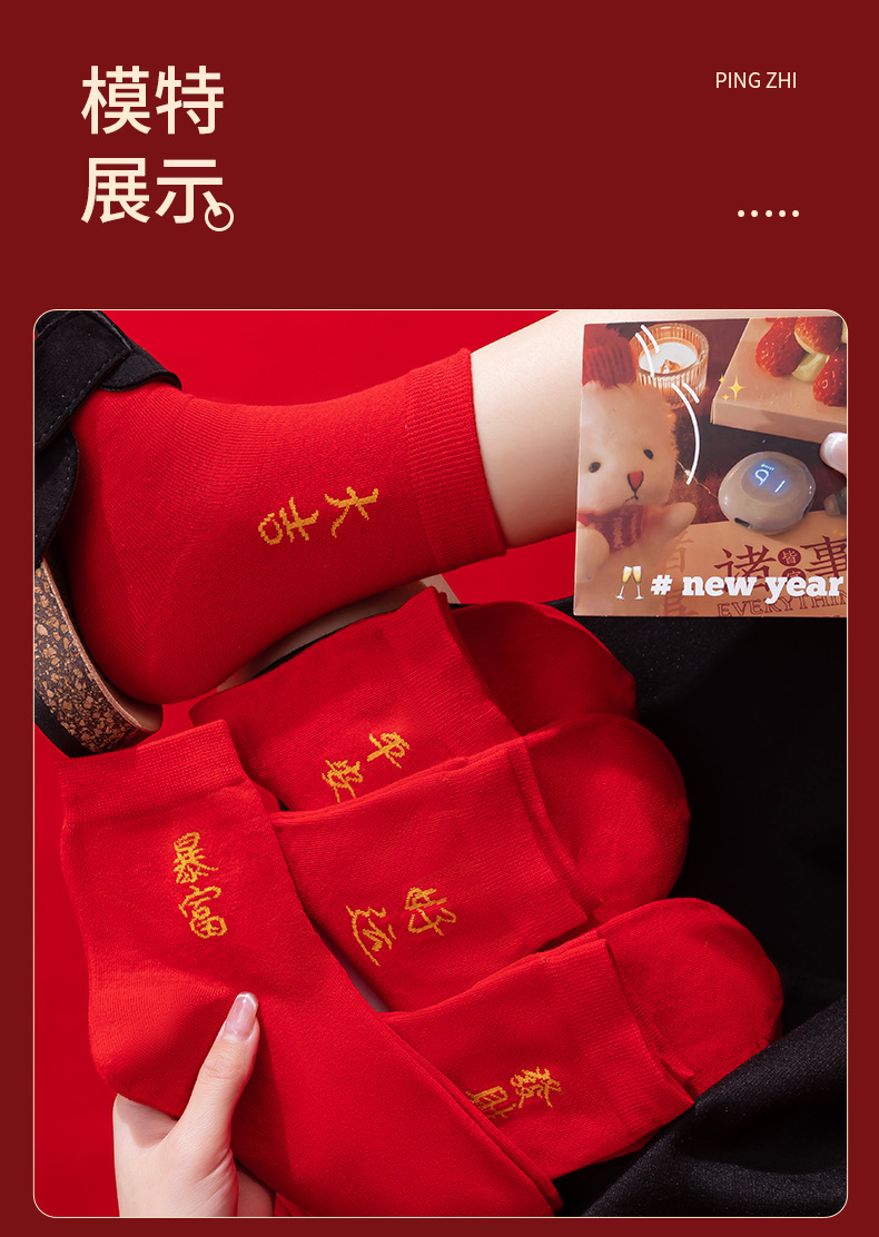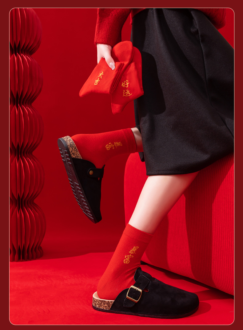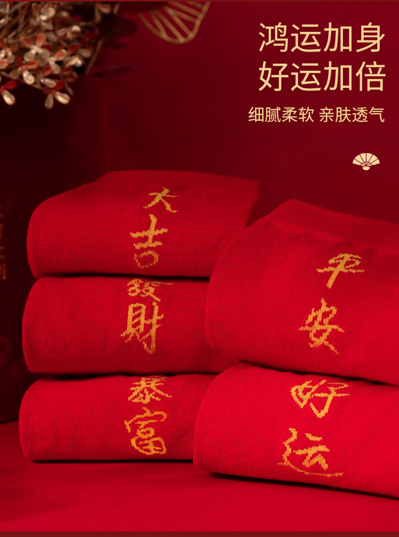本命年大红色袜子棉新年大吉平安暴富发财好运袜子结婚情侣喜袜