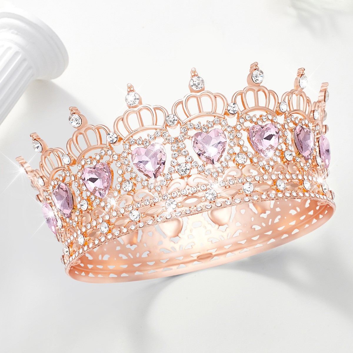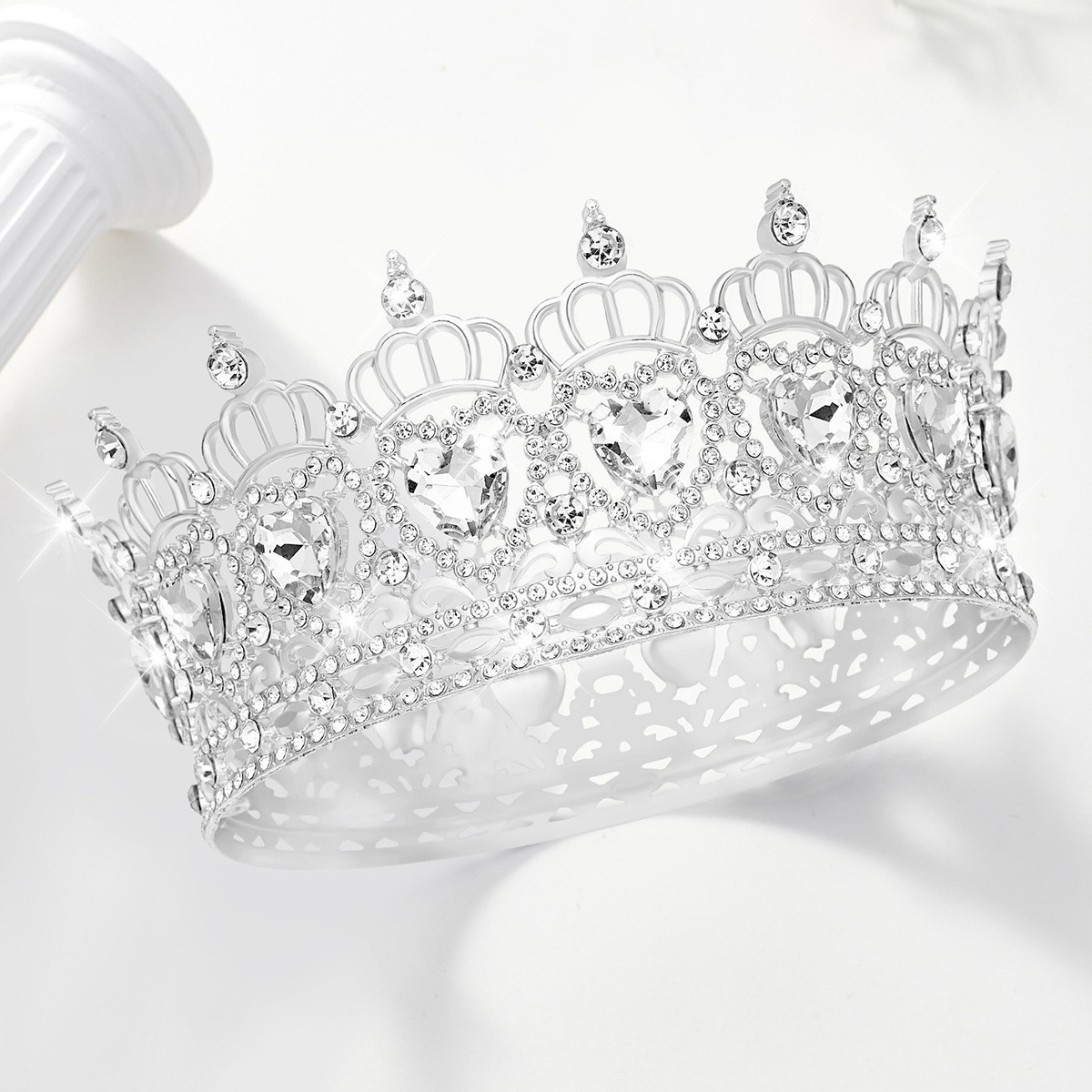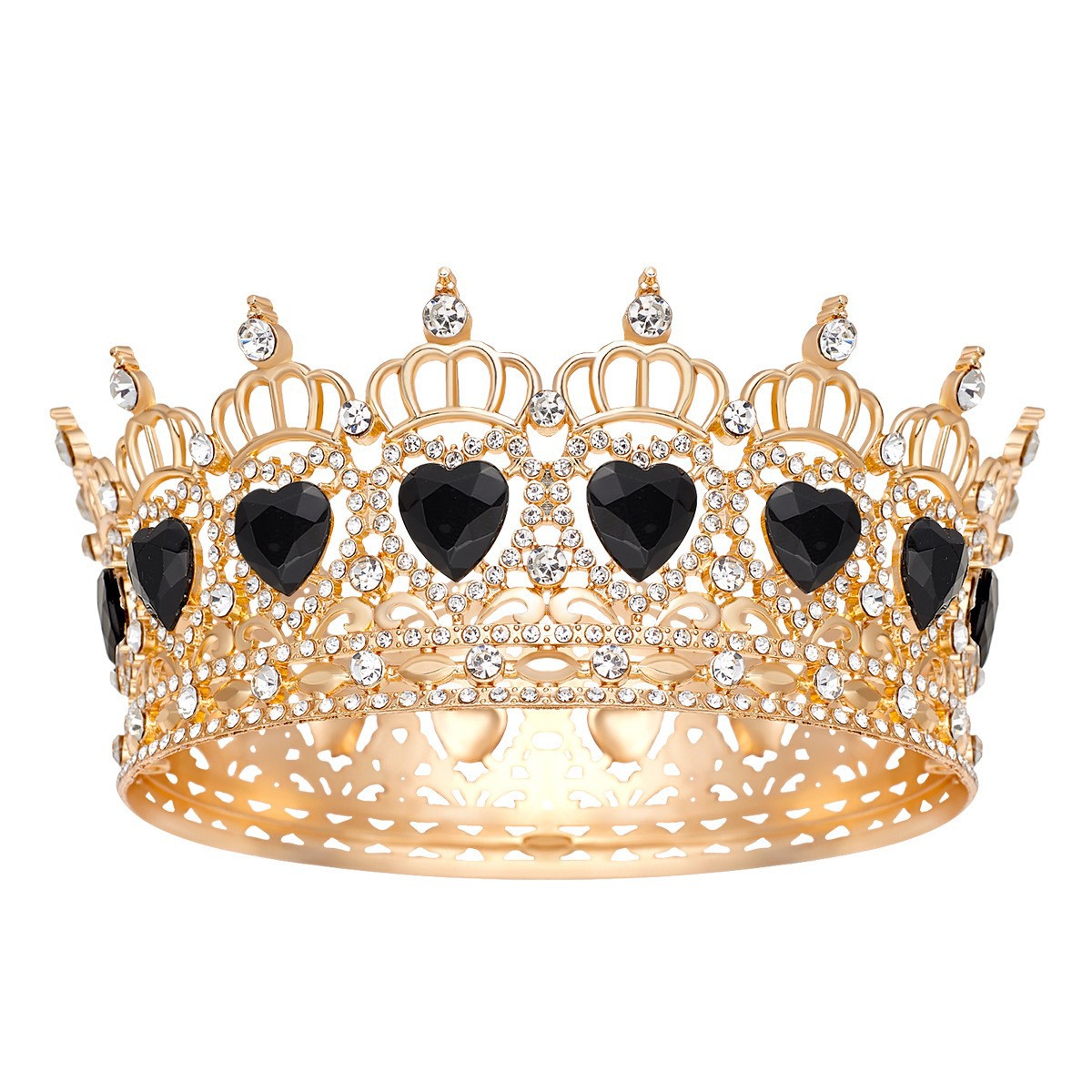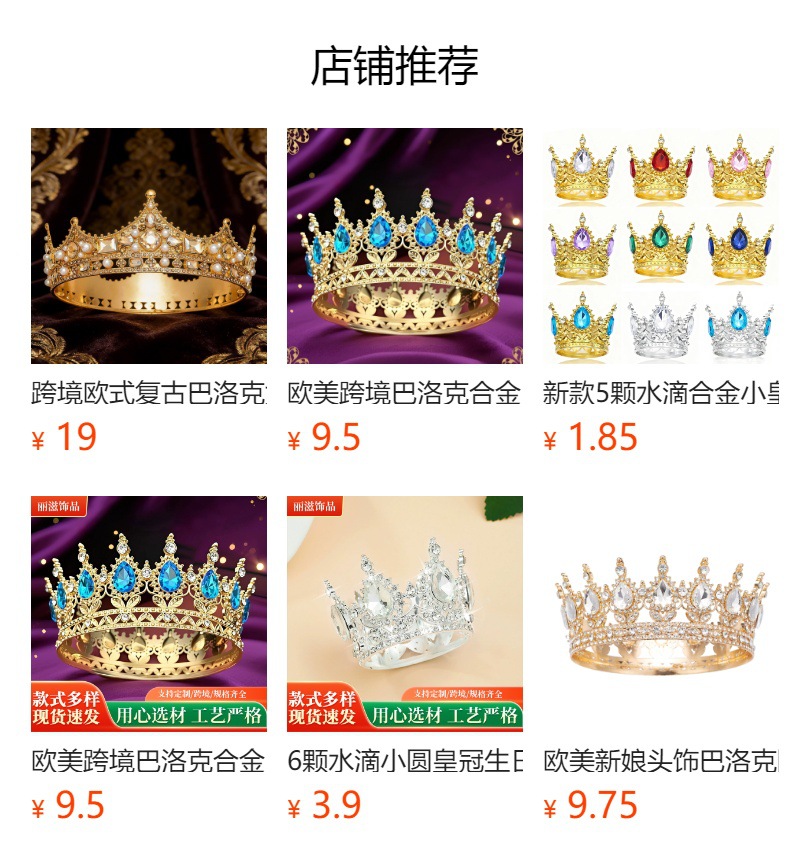 欧美新娘头饰巴洛克圆皇冠16颗水滴合金复古选美女王冠欧美婚礼季