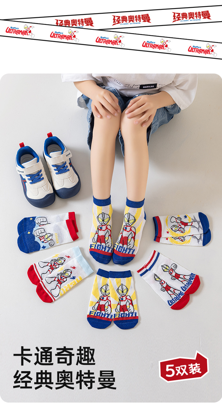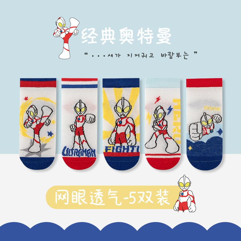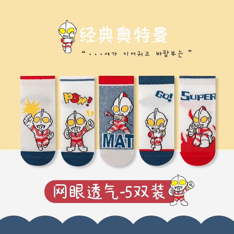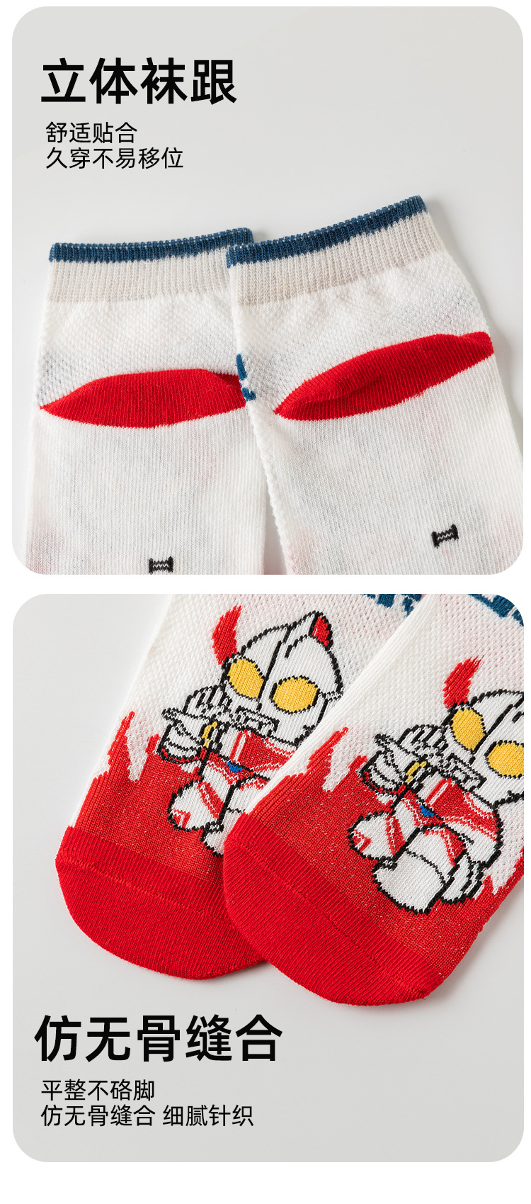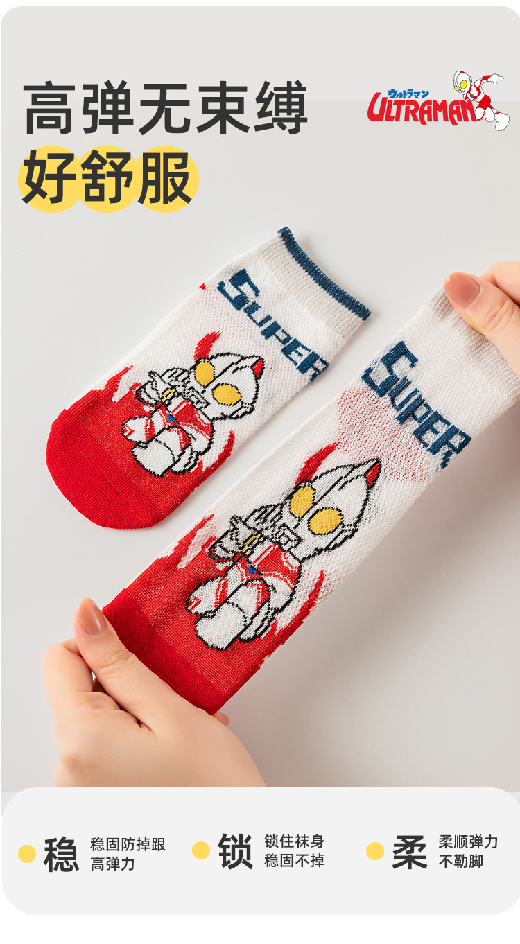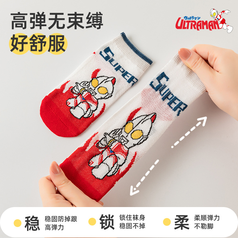 正版经典奥特曼春季网眼短筒薄款a类棉袜子儿童卡通透气男童袜子
