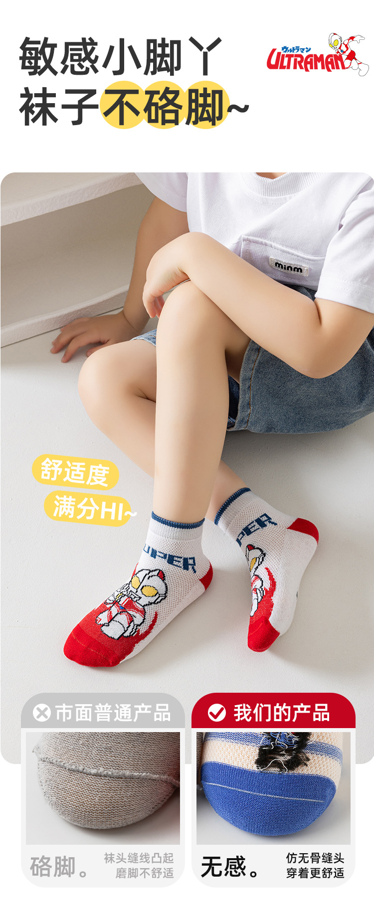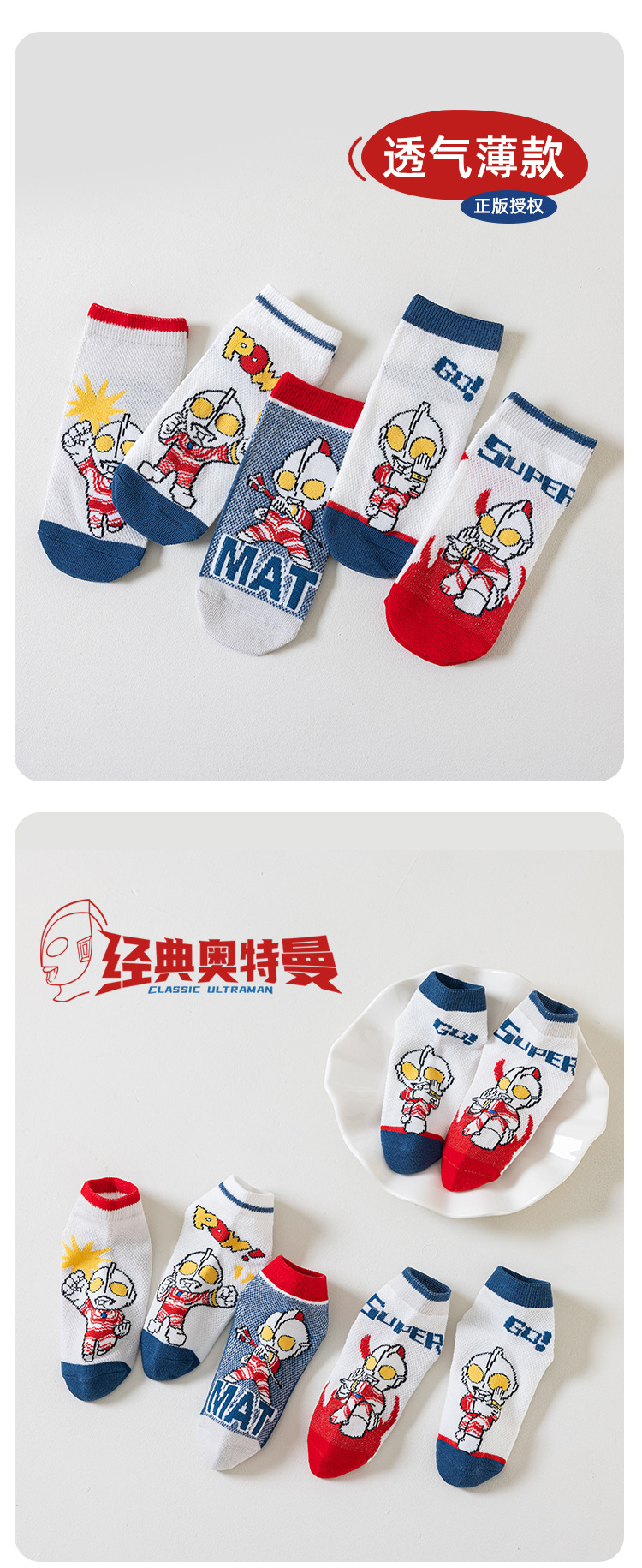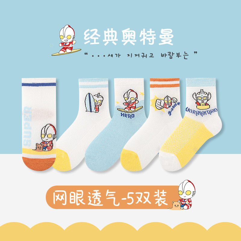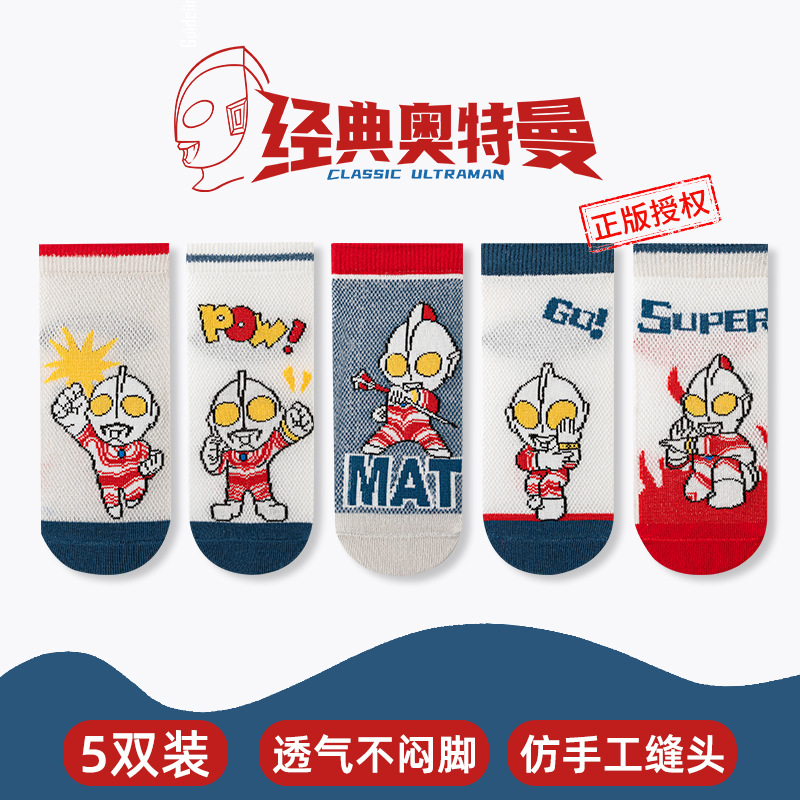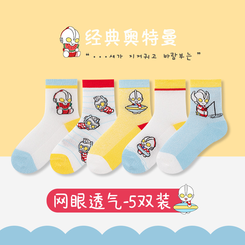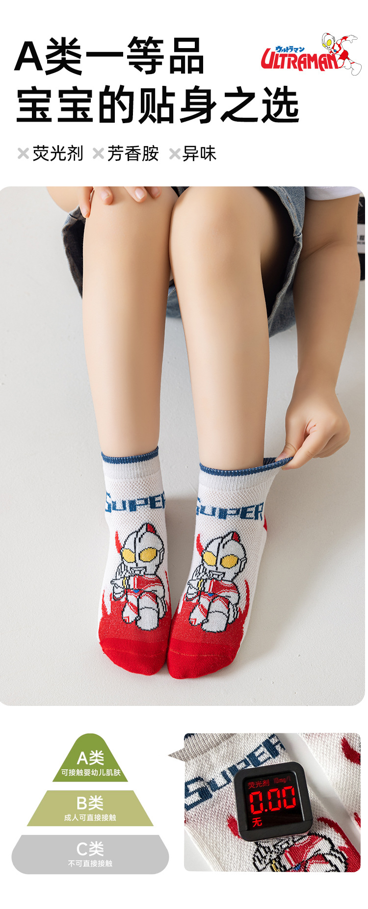 正版经典奥特曼春季网眼短筒薄款a类棉袜子儿童卡通透气男童袜子