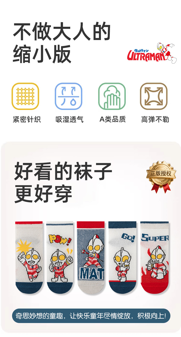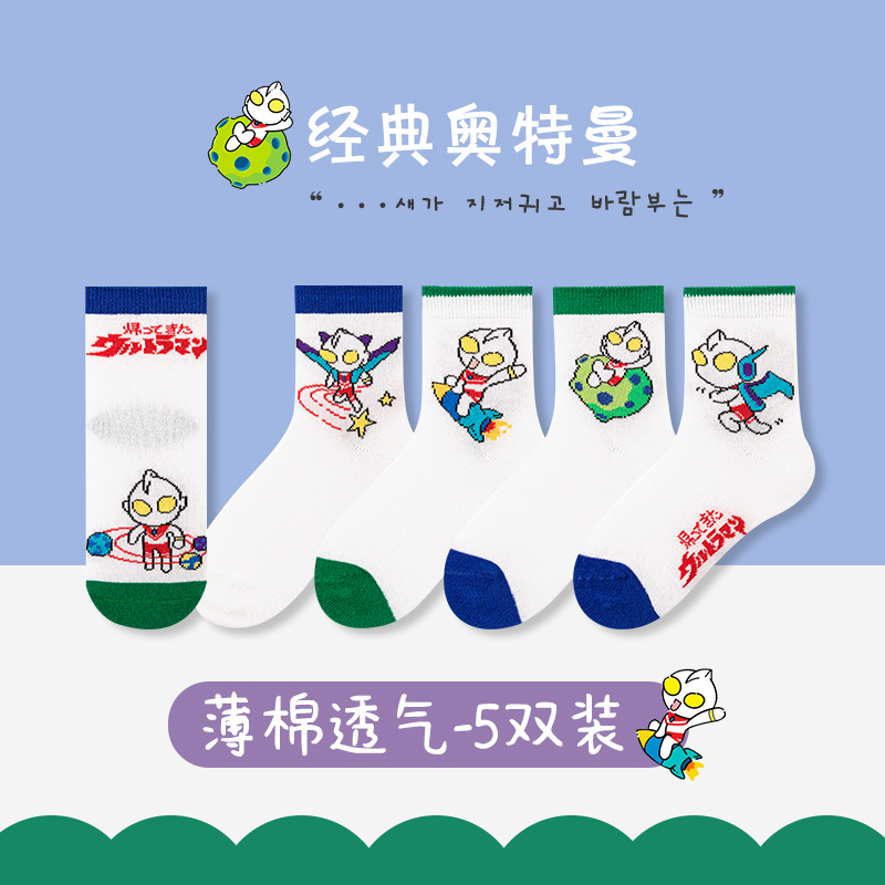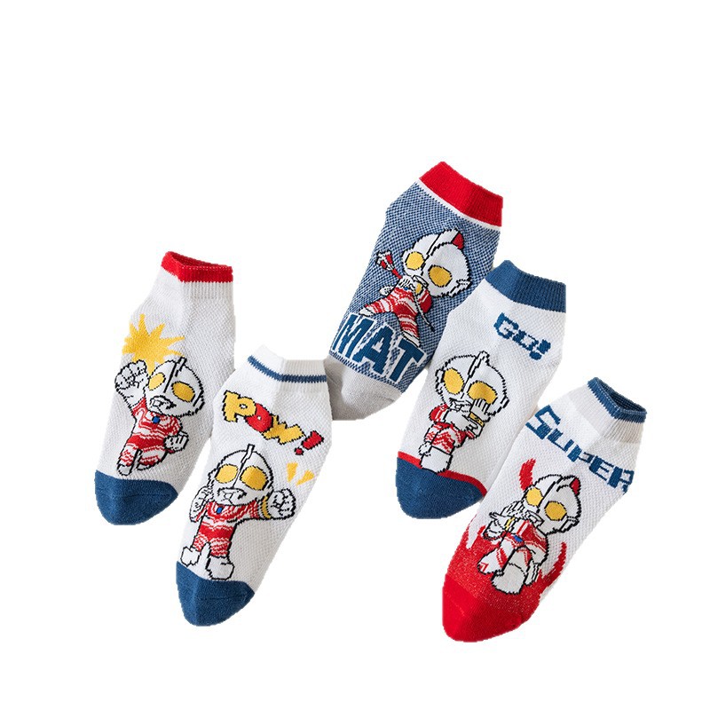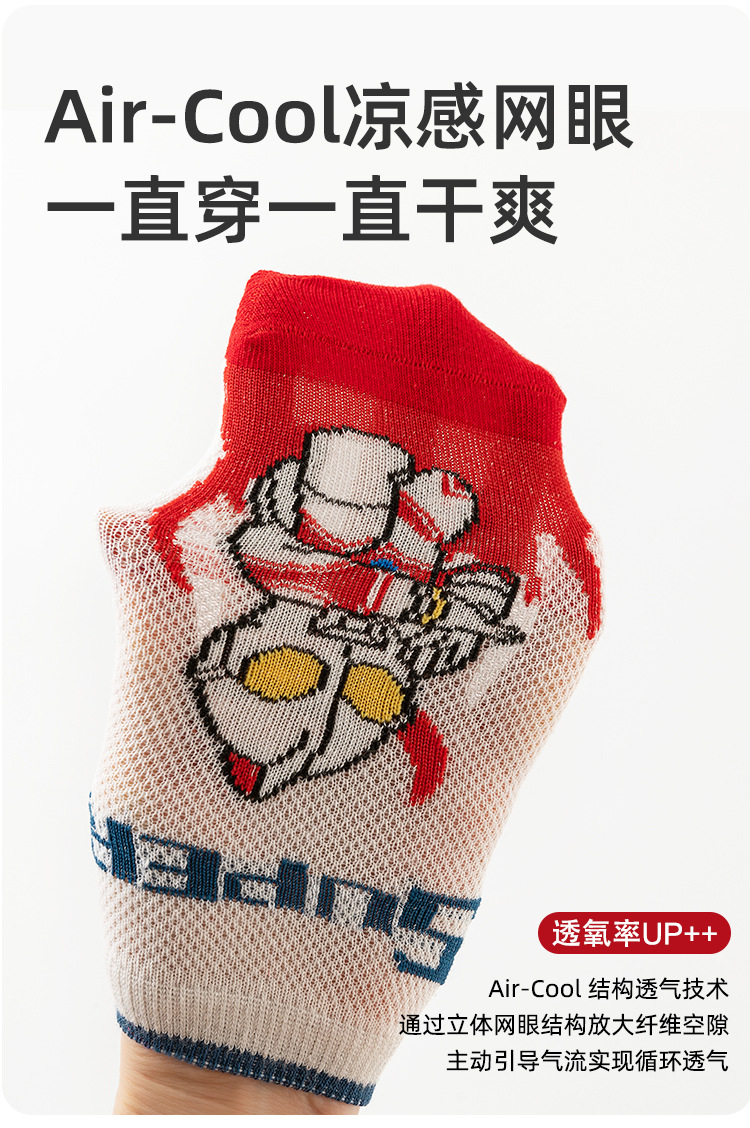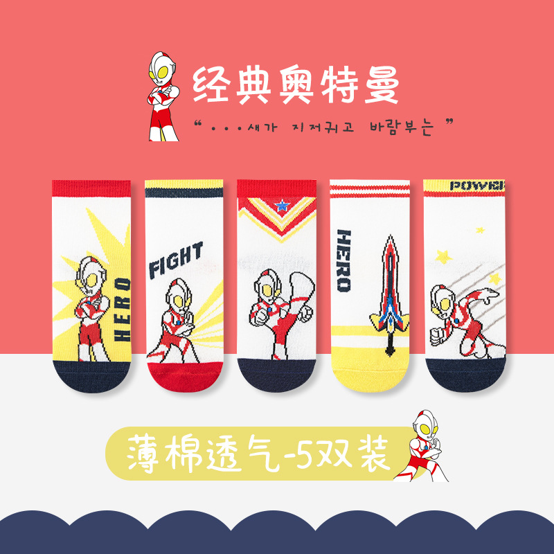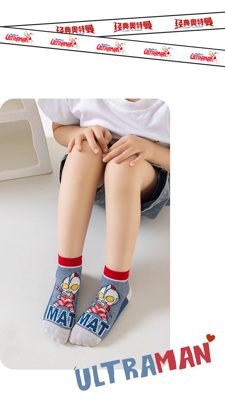 正版经典奥特曼春季网眼短筒薄款a类棉袜子儿童卡通透气男童袜子