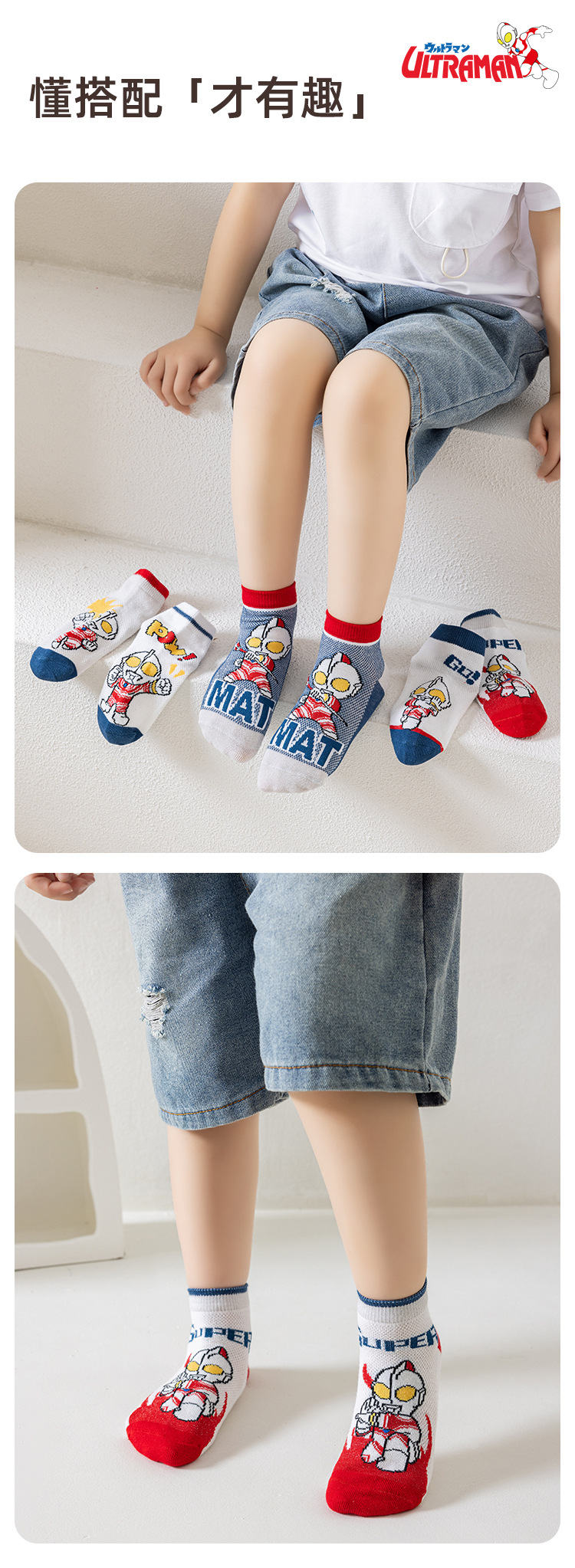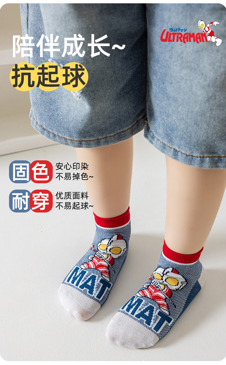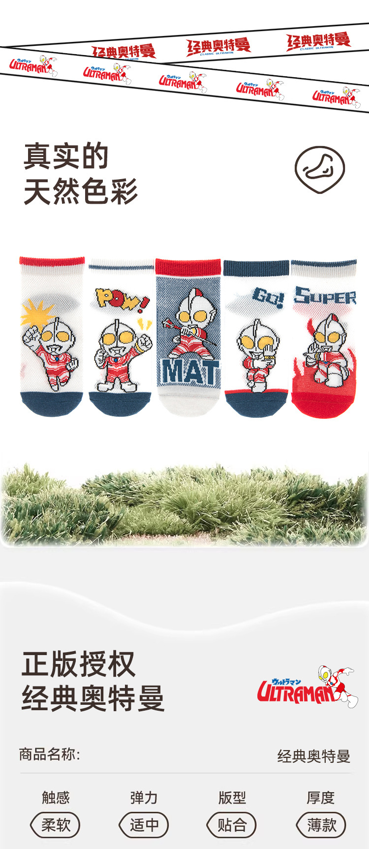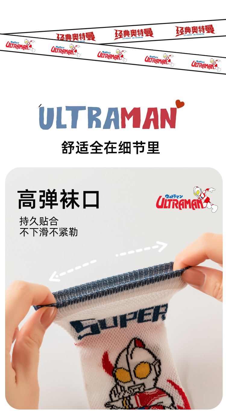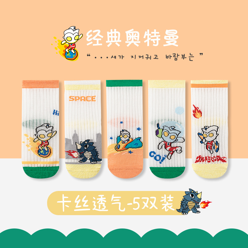 正版经典奥特曼春季网眼短筒薄款a类棉袜子儿童卡通透气男童袜子