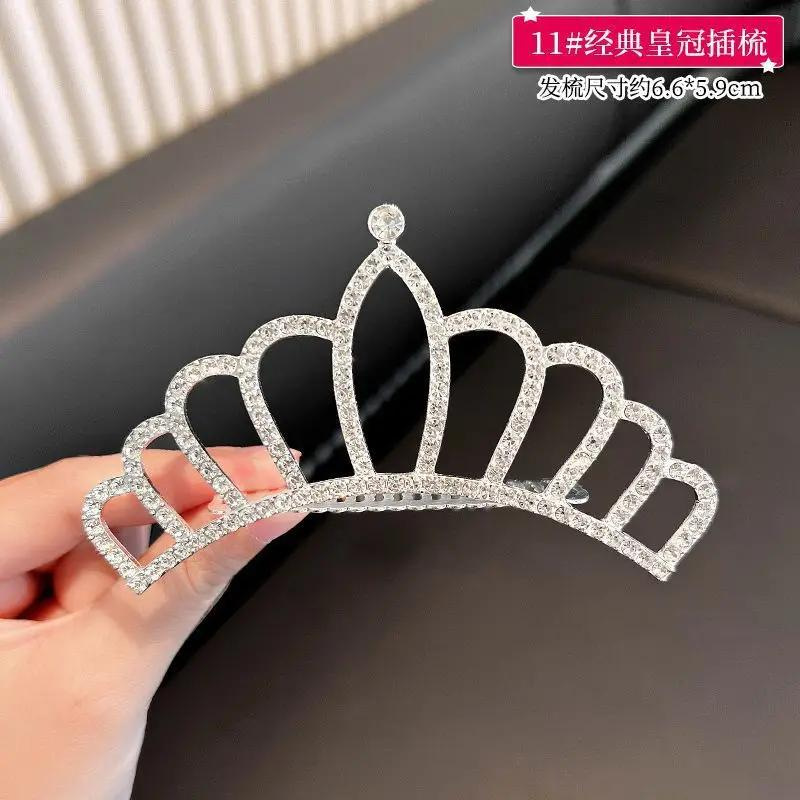 皇冠头饰儿童插梳女童珍珠水钻发夹生日演出饰品公主王冠发夹发饰