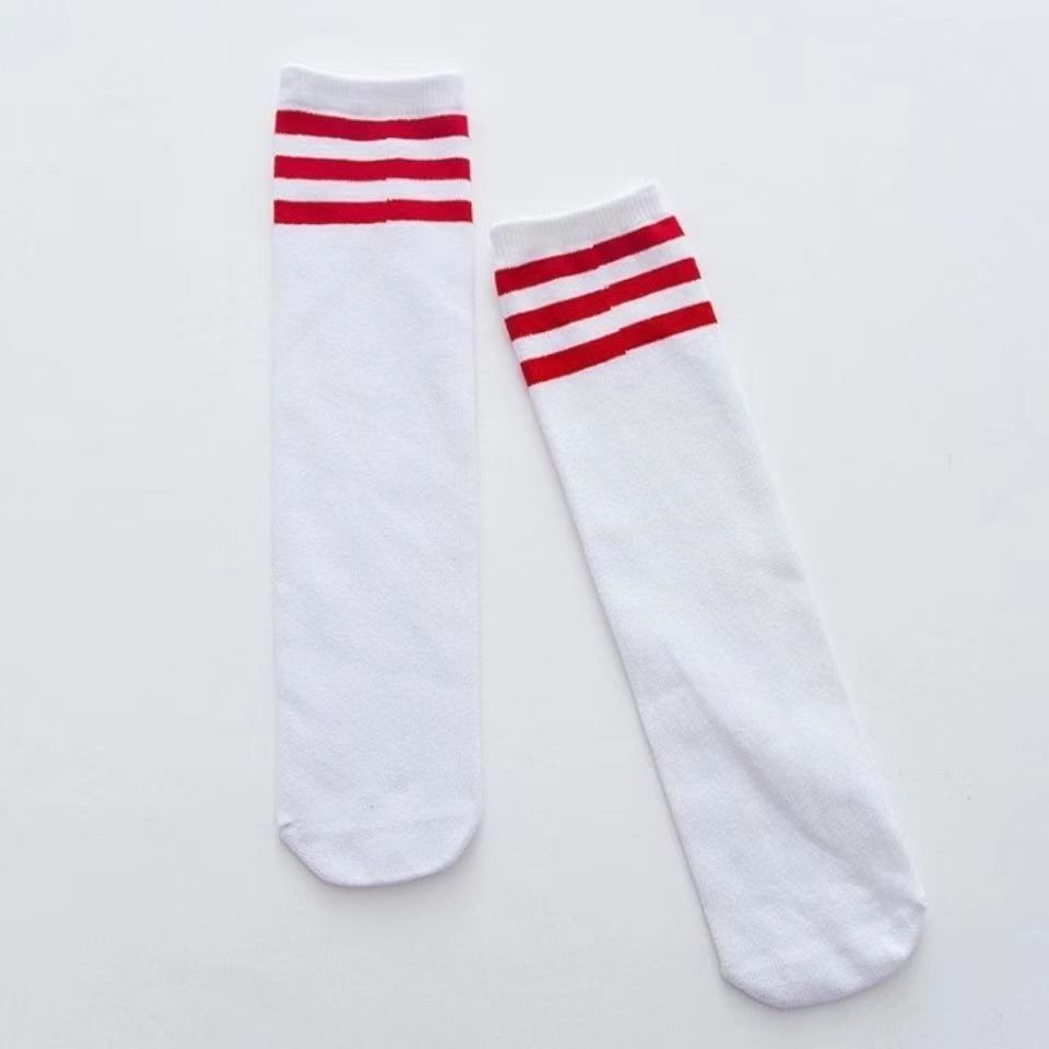 儿童长筒袜夏季薄款男女童中筒袜不过膝条纹白色袜子演出袜中小童