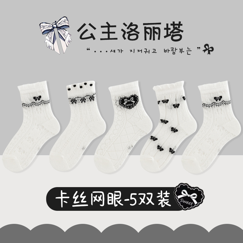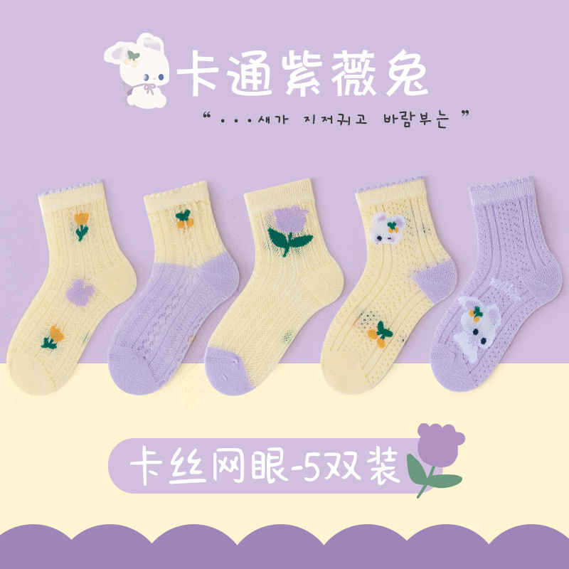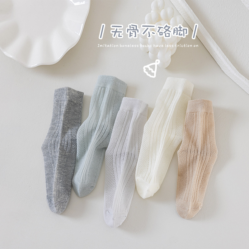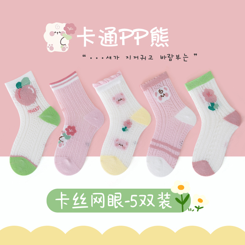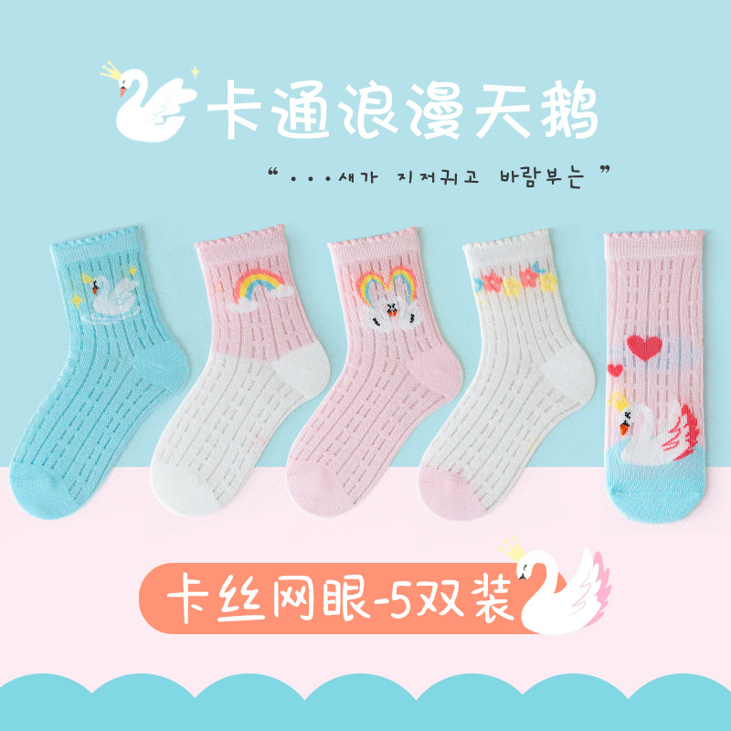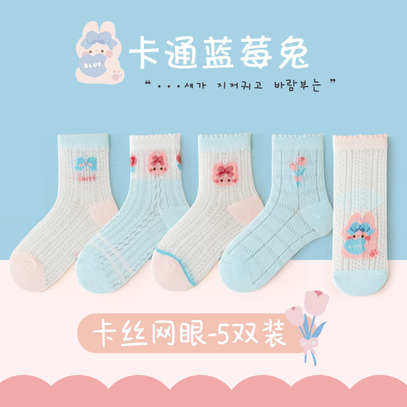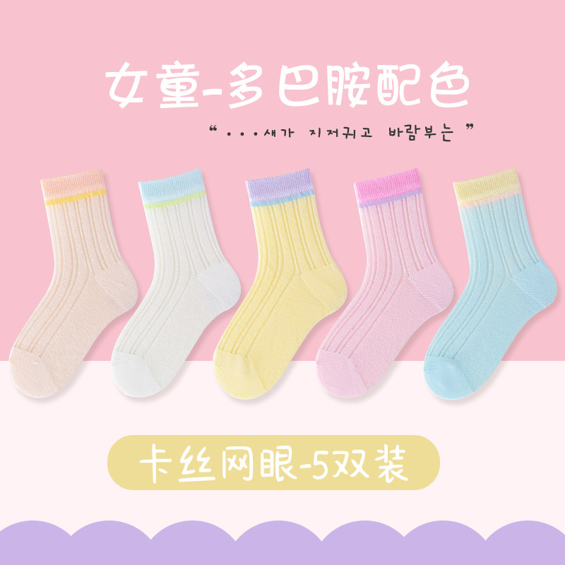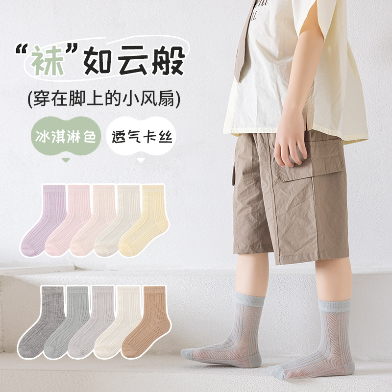 儿童a类棉袜子春季新品卡通薄款网眼卡丝中筒袜子儿童潮袜子批发