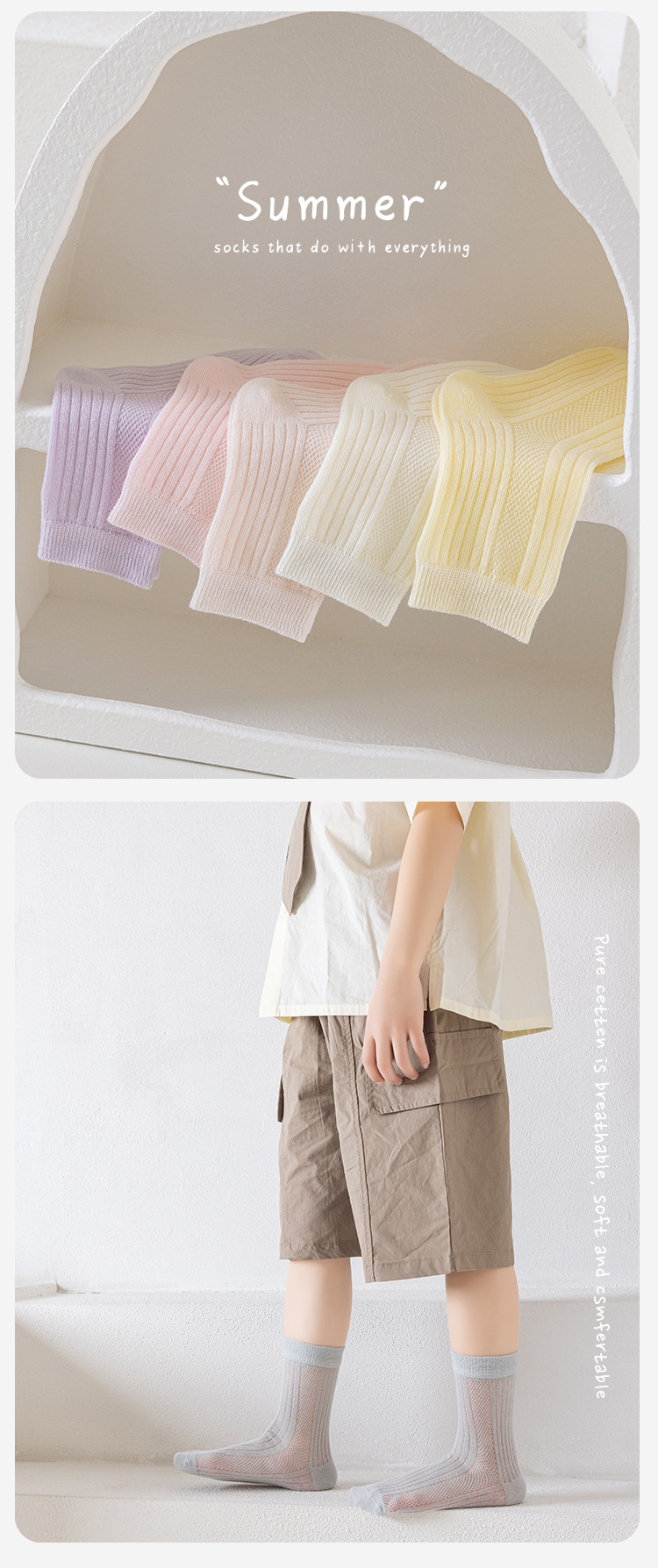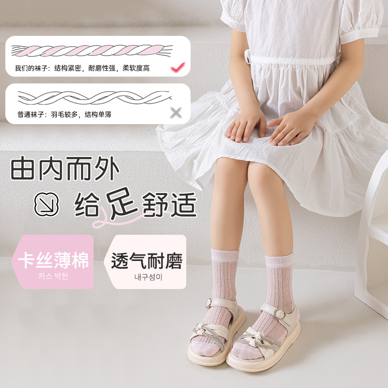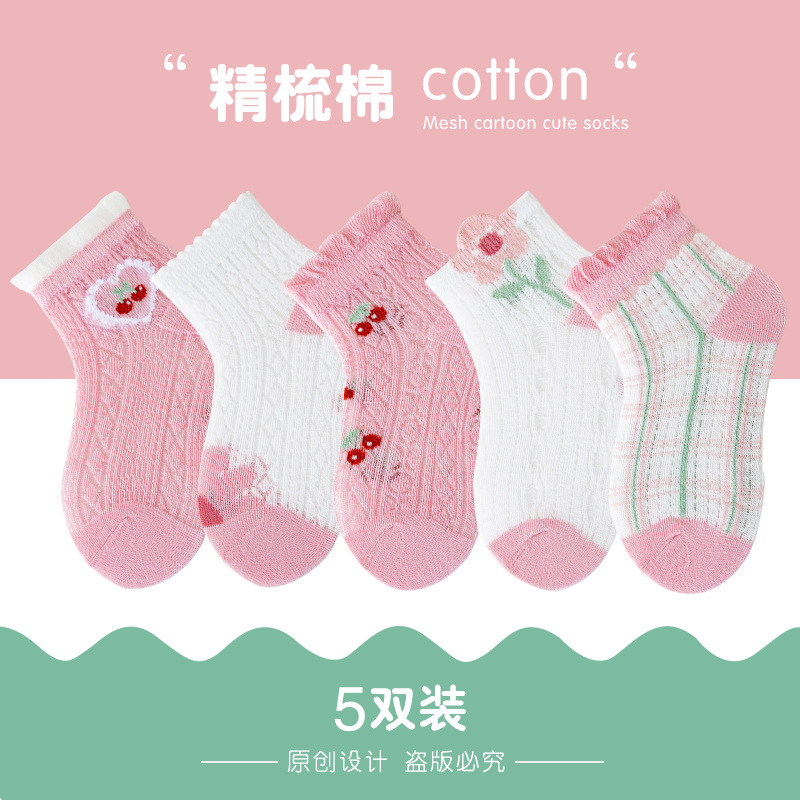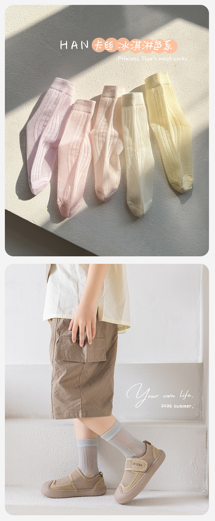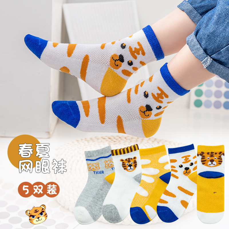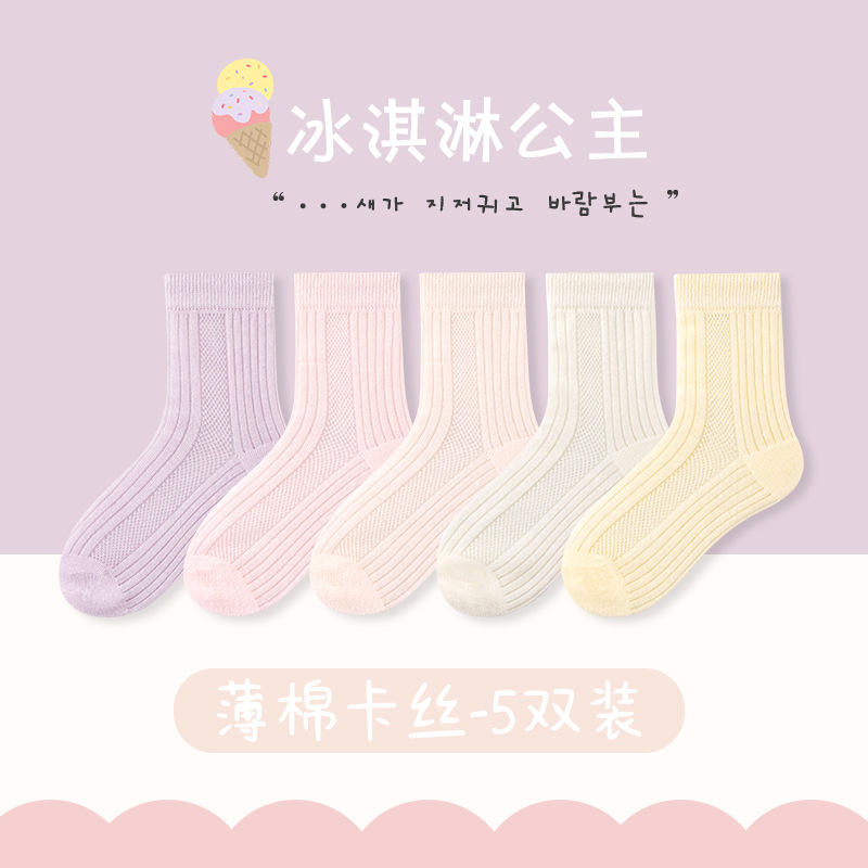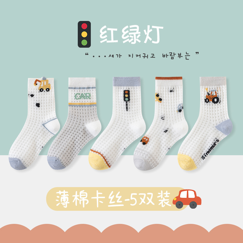儿童a类棉袜子春季新品卡通薄款网眼卡丝中筒袜子儿童潮袜子批发