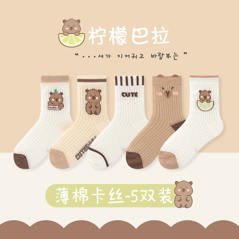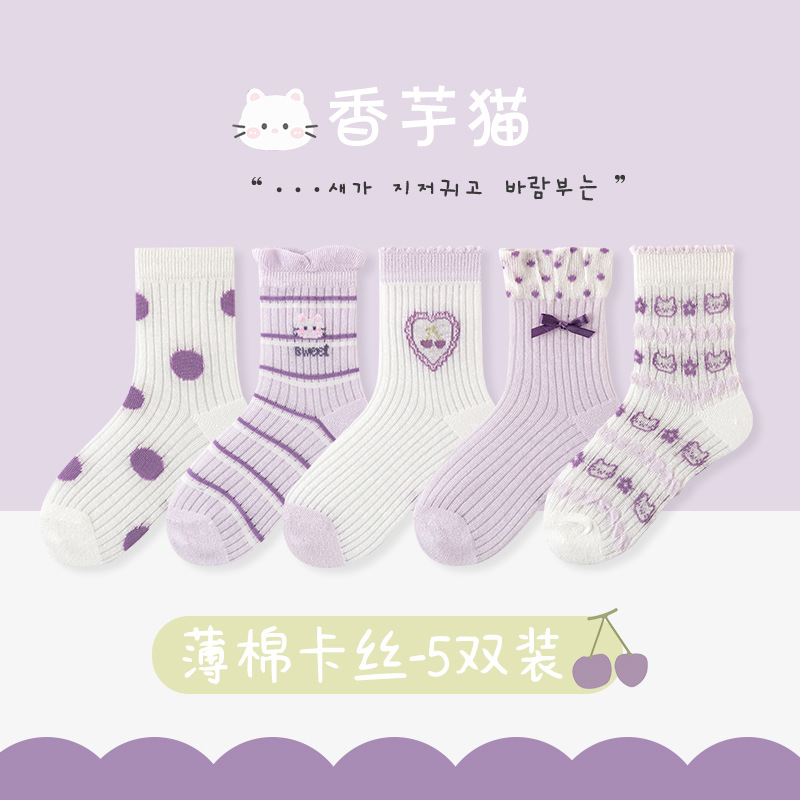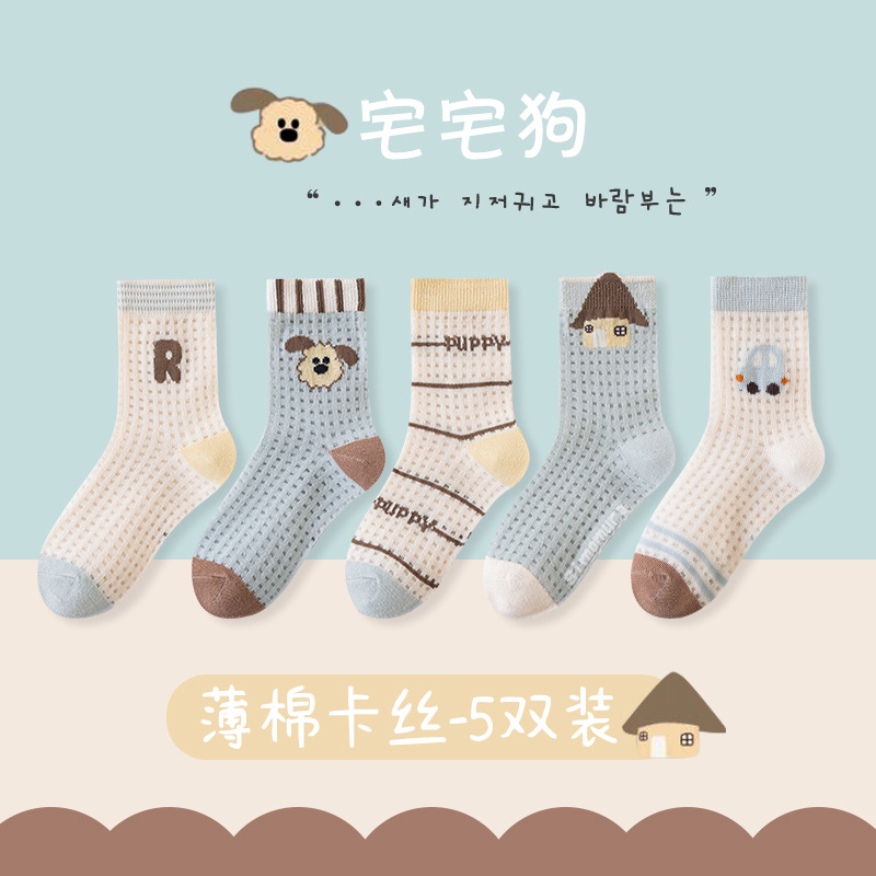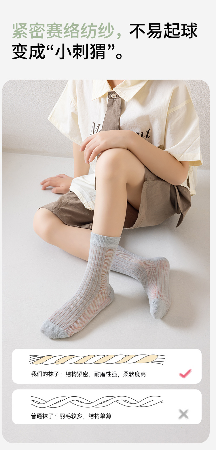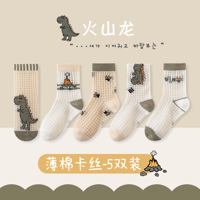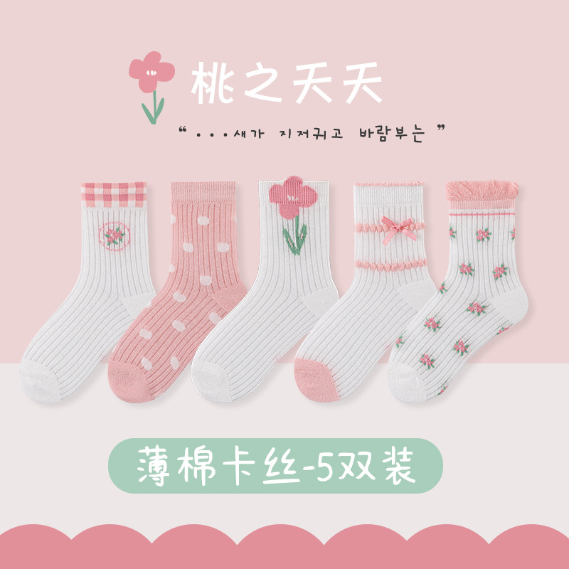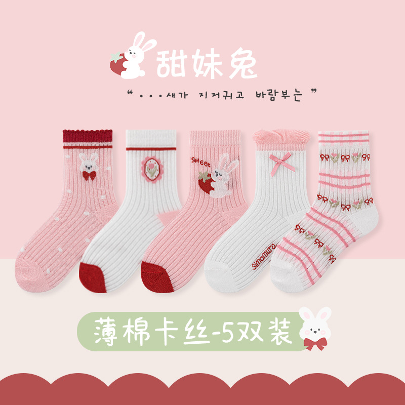 儿童a类棉袜子春季新品卡通薄款网眼卡丝中筒袜子儿童潮袜子批发