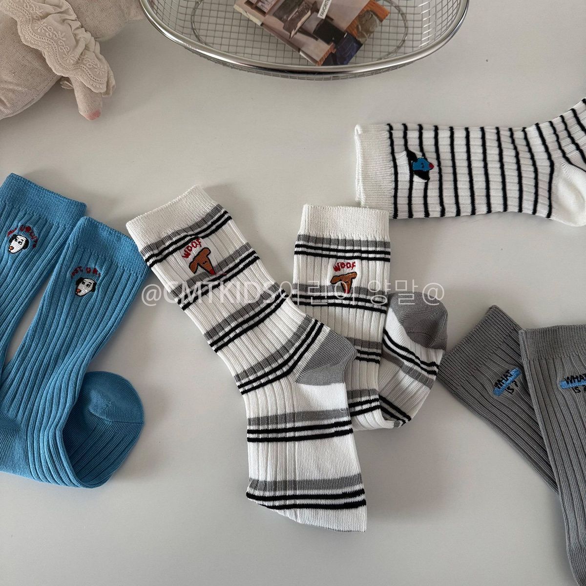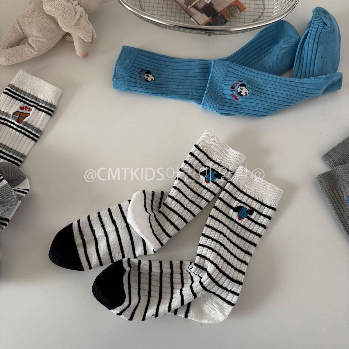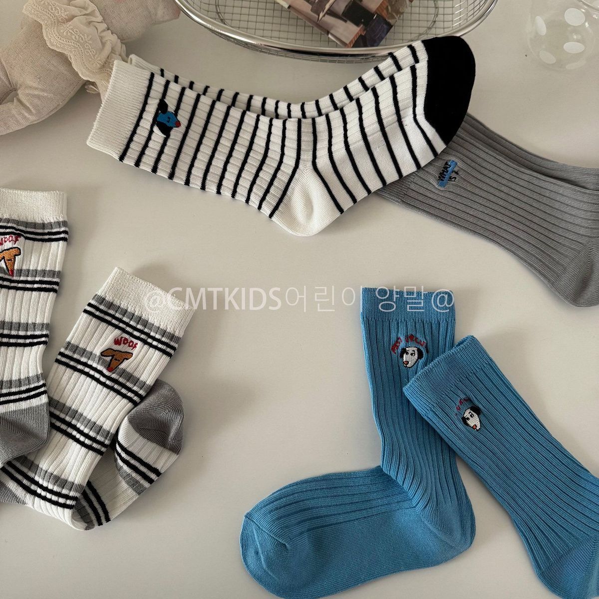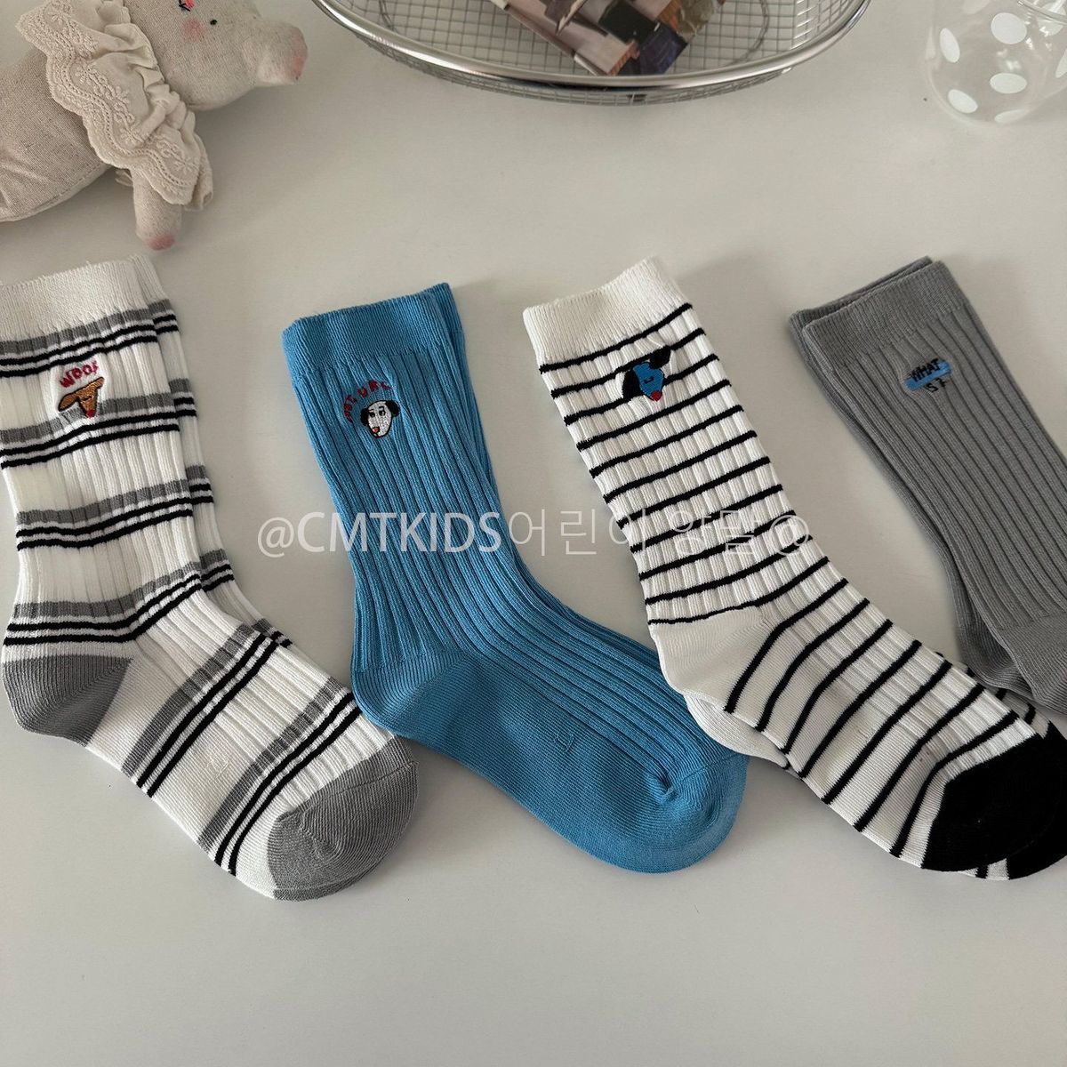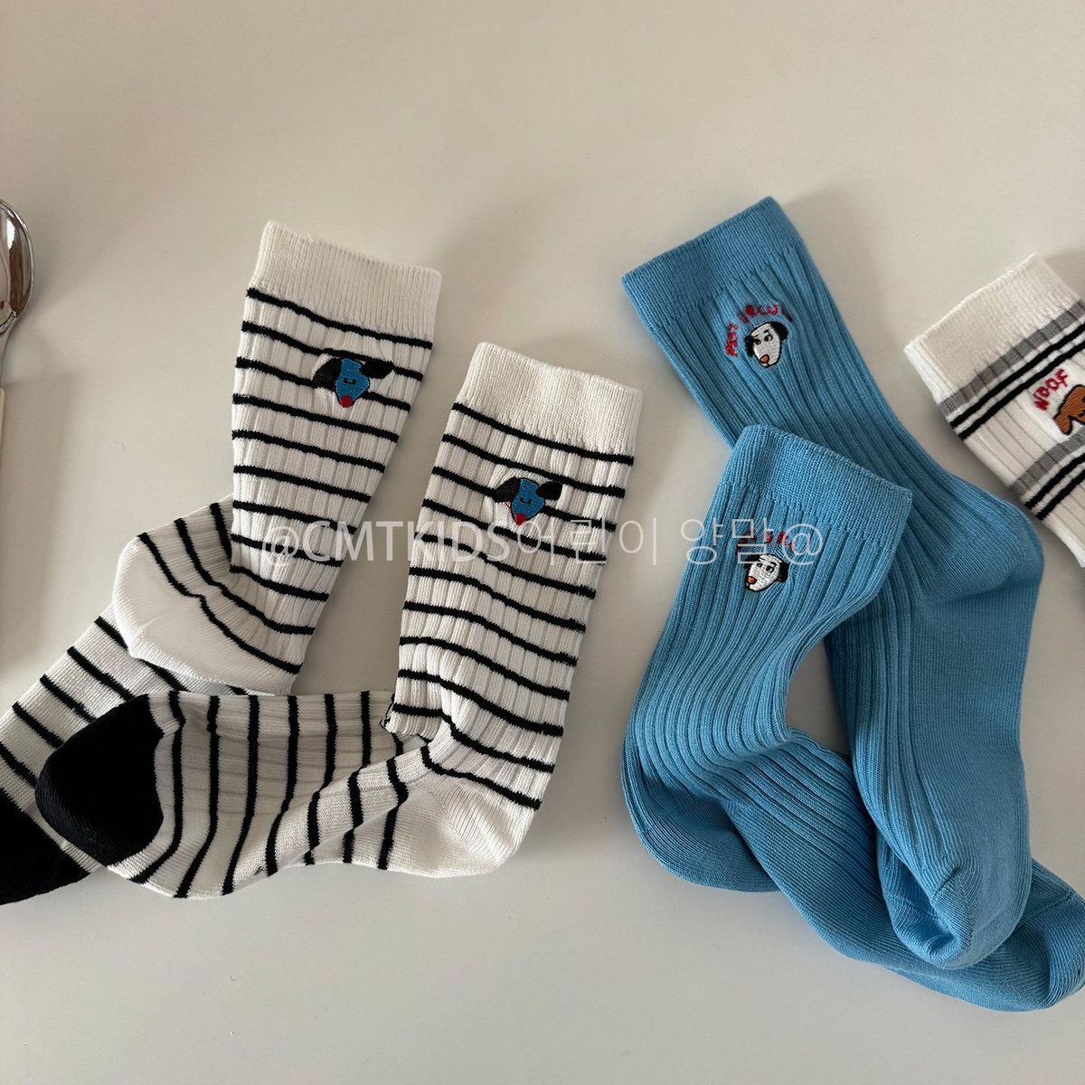 儿童袜子春夏春秋条纹蓝灰调小狗中大童中筒薄款男童男生宝宝棉袜