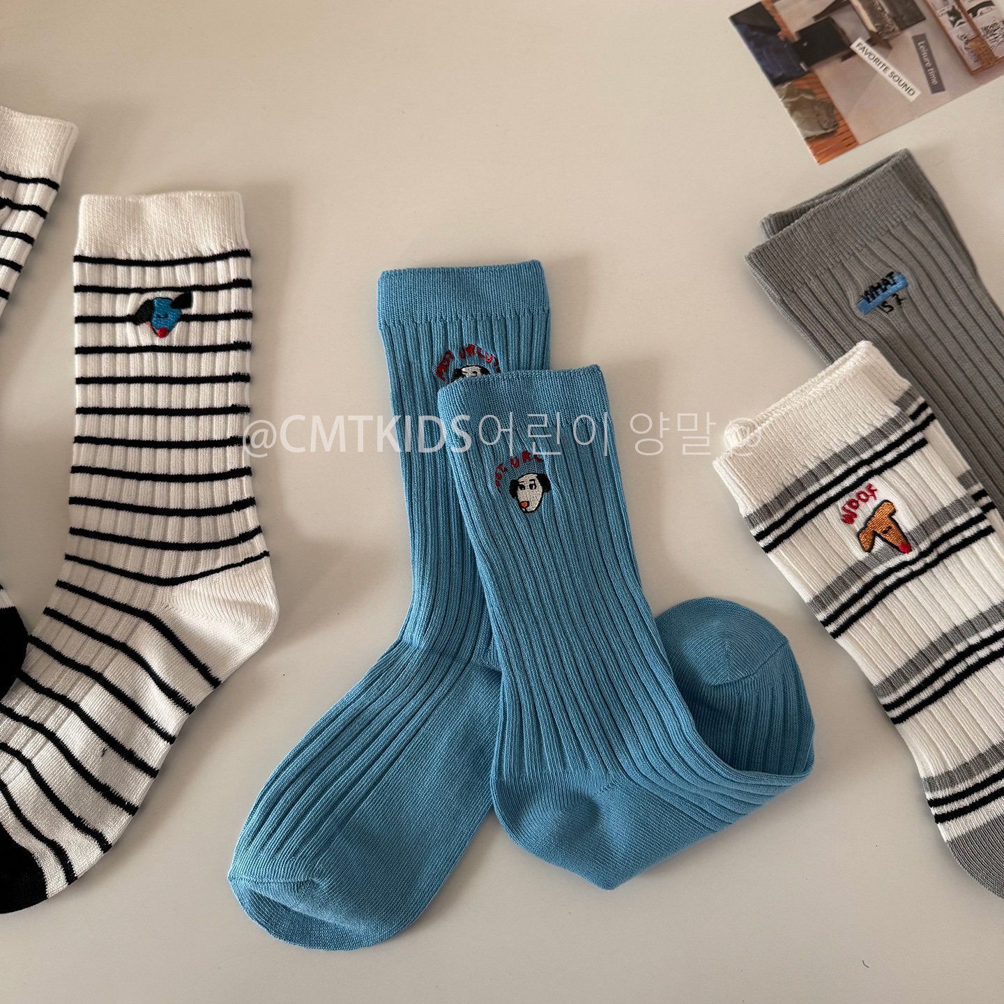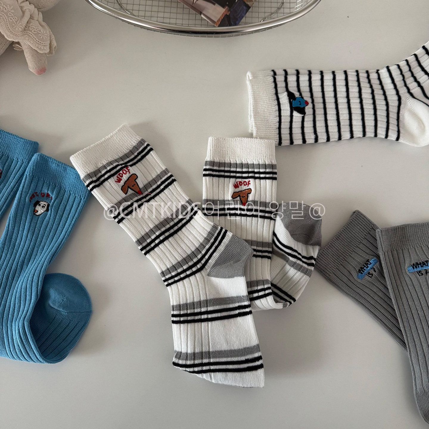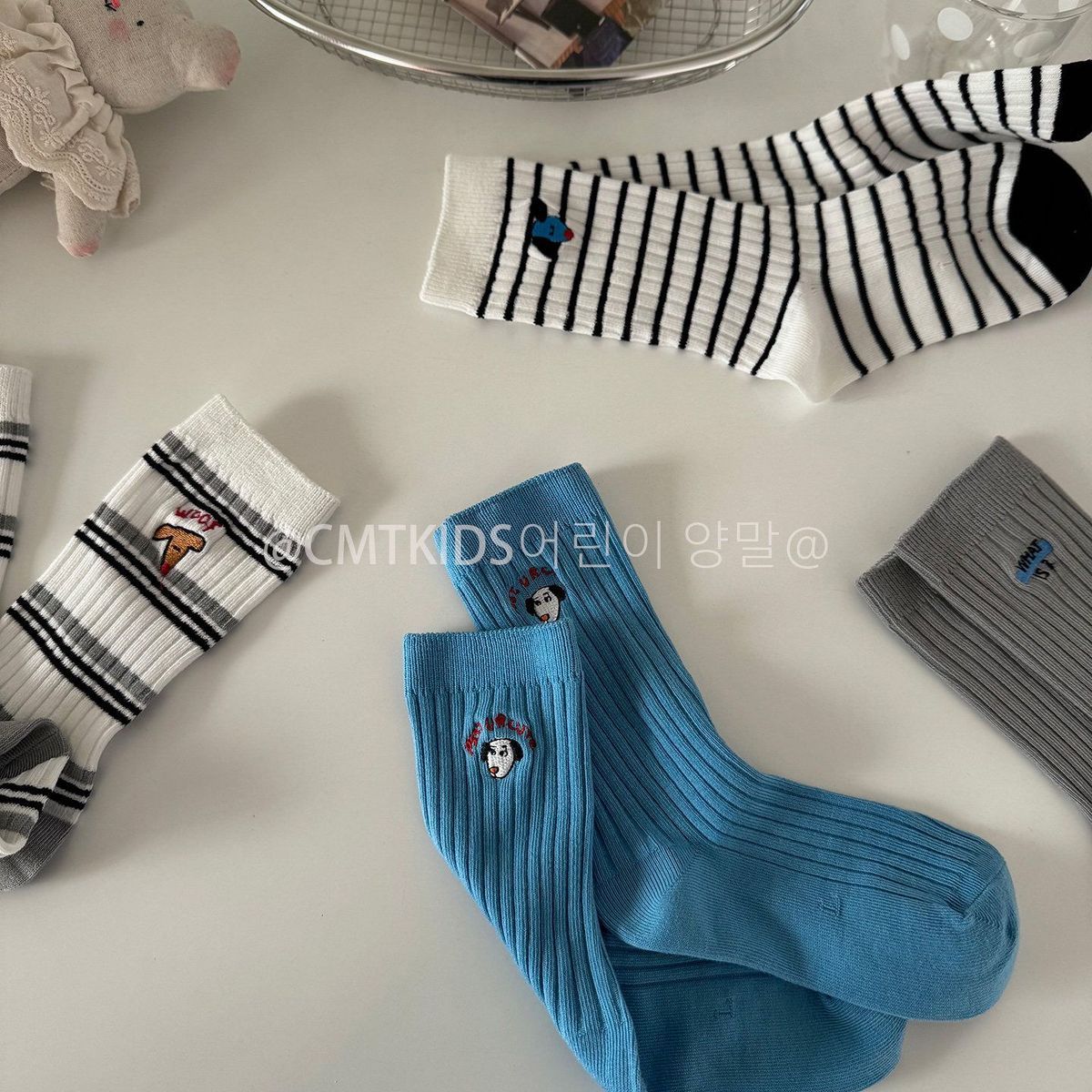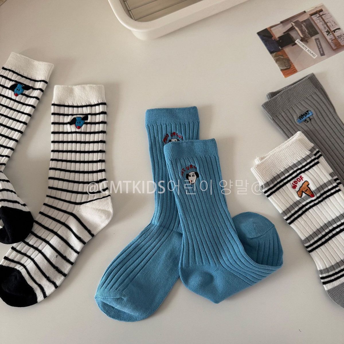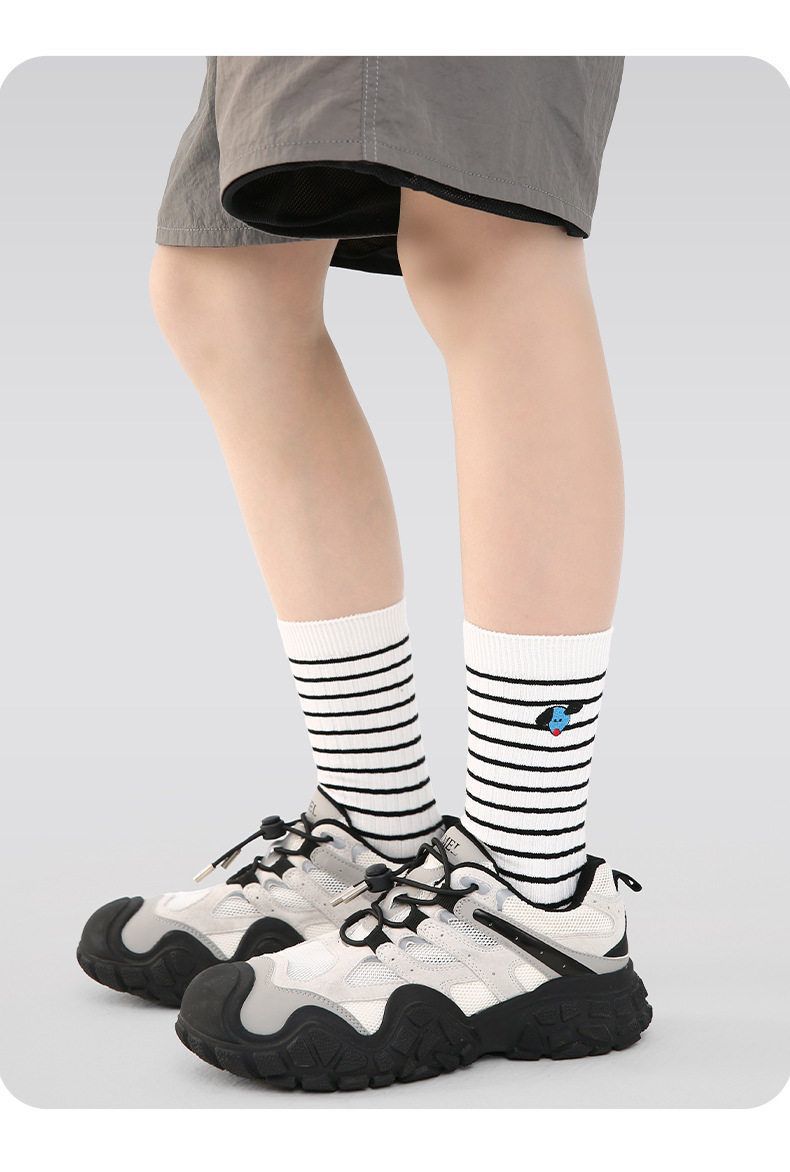 儿童袜子春夏春秋条纹蓝灰调小狗中大童中筒薄款男童男生宝宝棉袜