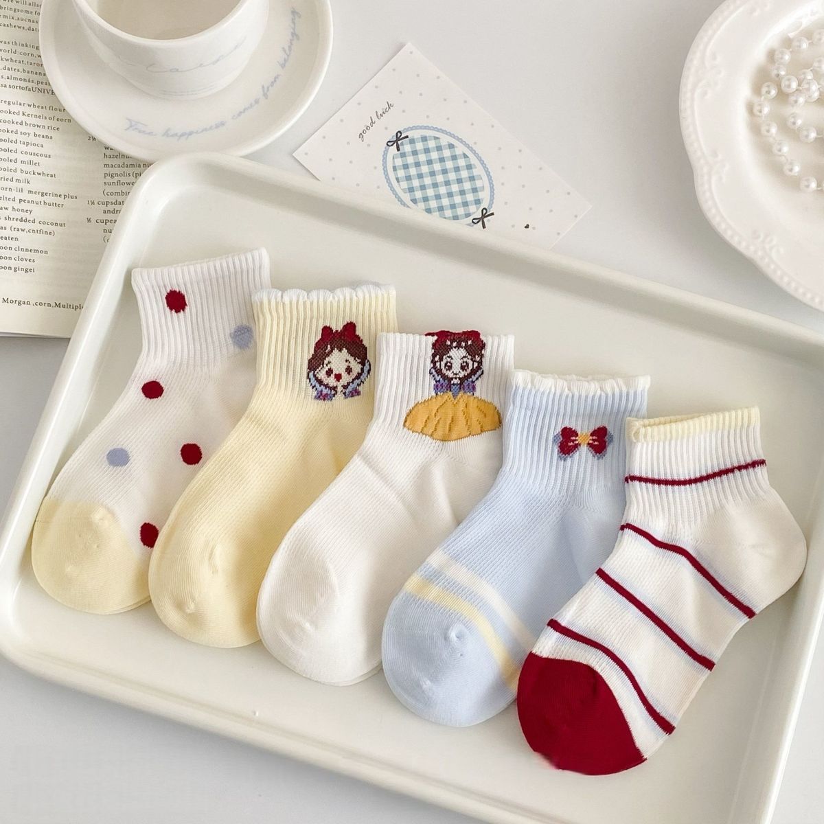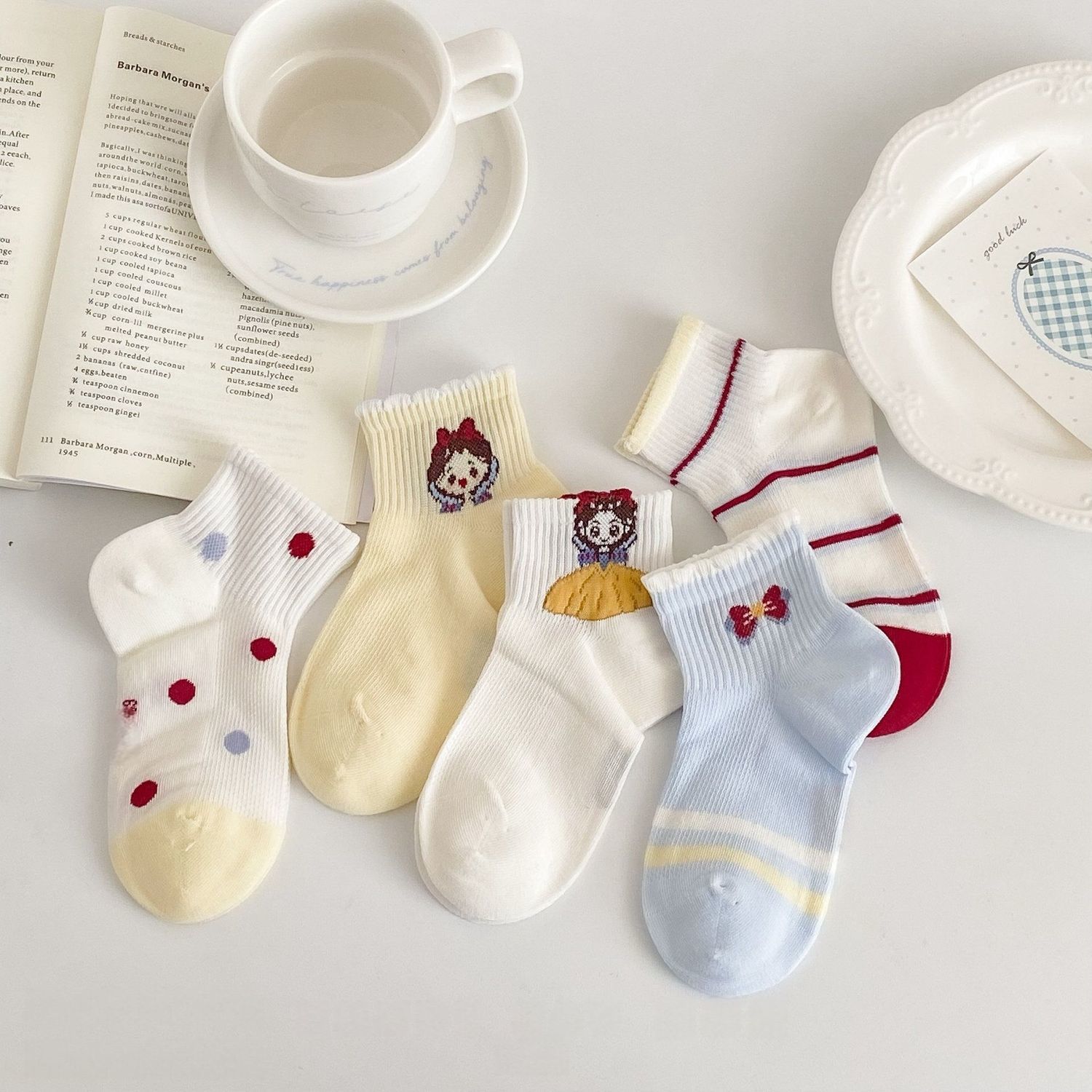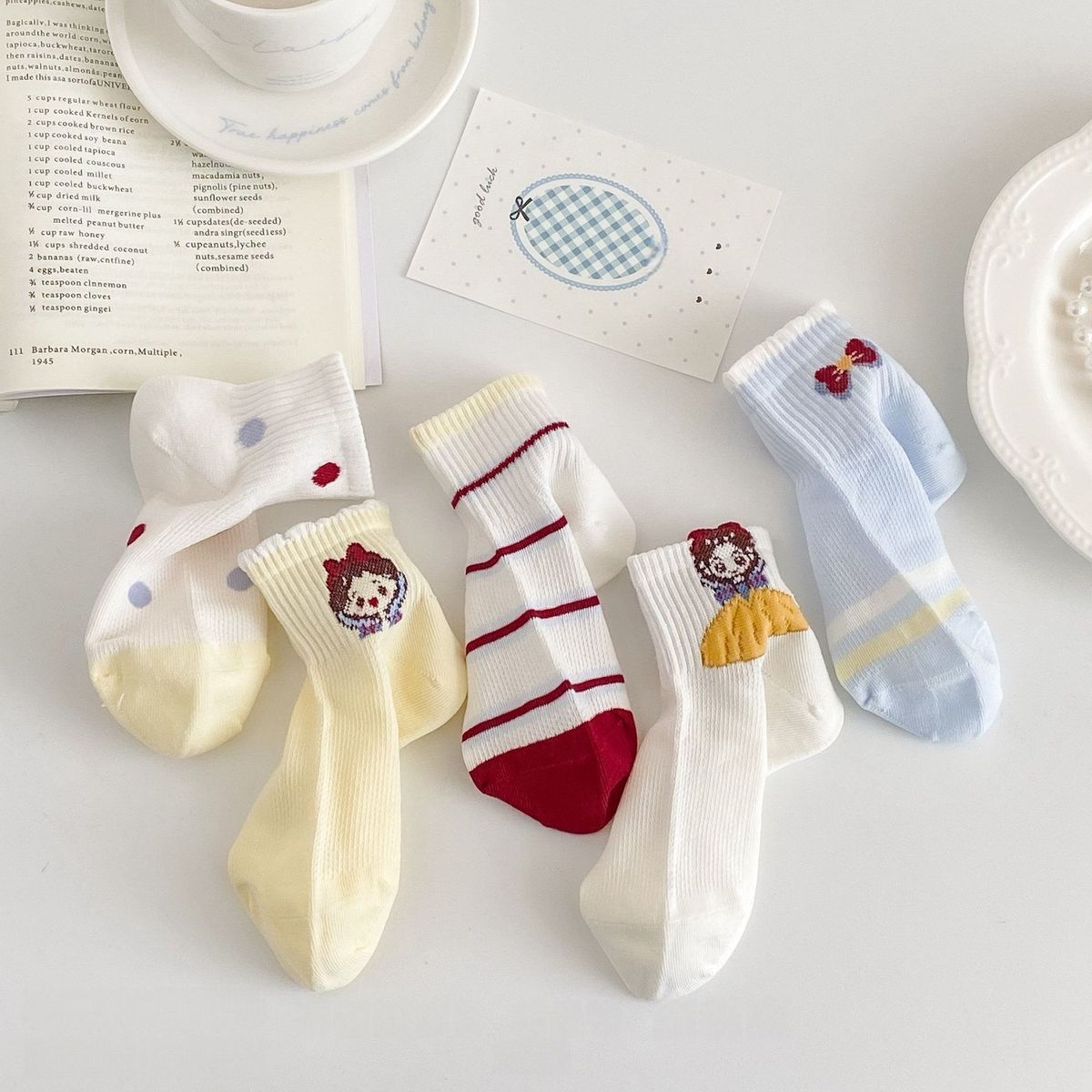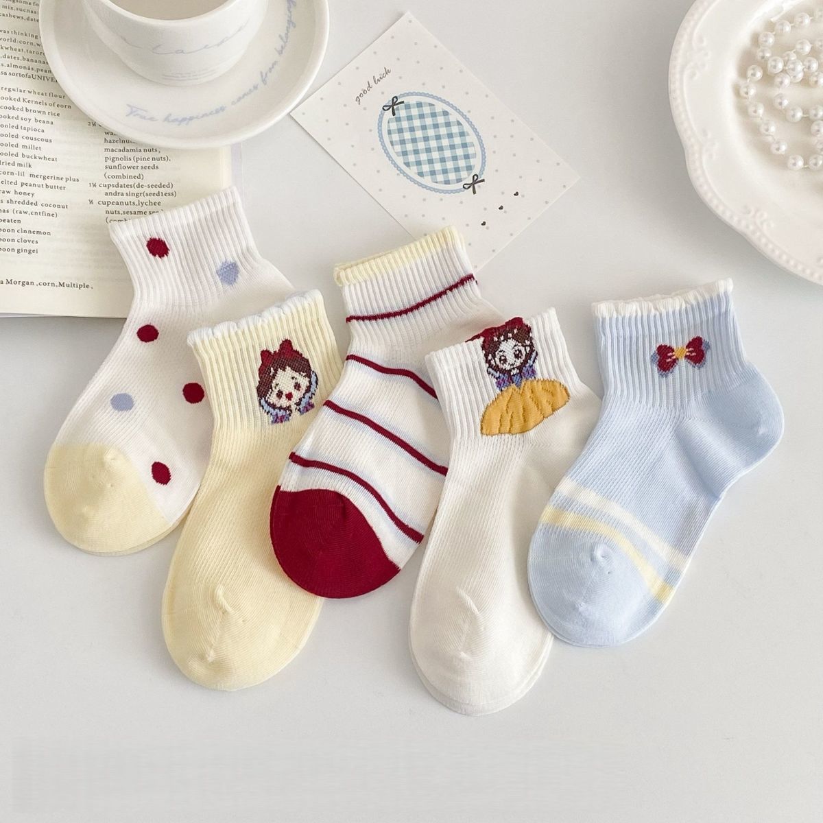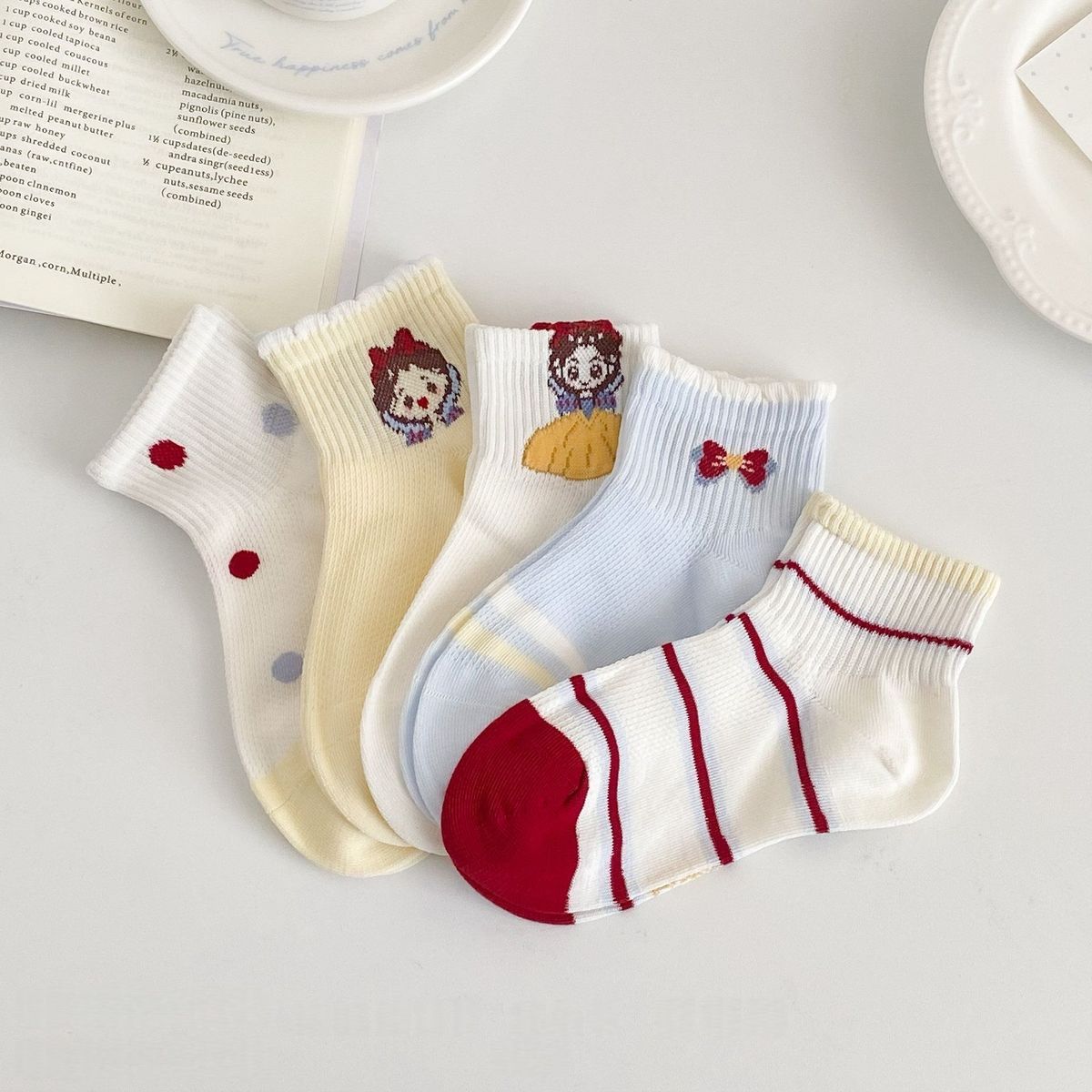 女童袜子春夏新款白雪公主多巴胺儿童洋气透气网眼可爱卡通学生袜