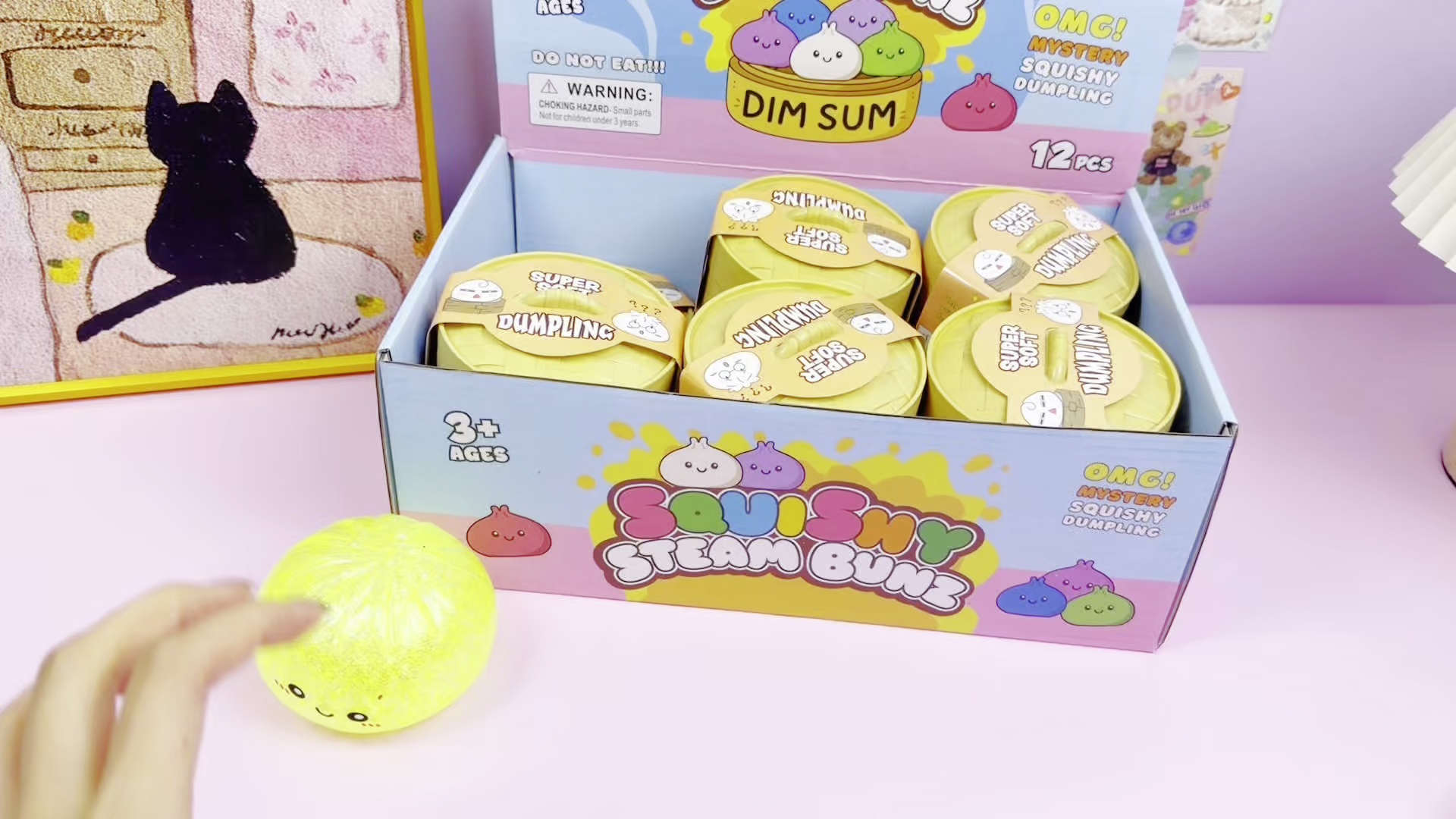 8.5CM卡通表情金粉珠子大包子捏捏乐盲盒拉拉乐仿真小笼包玩具