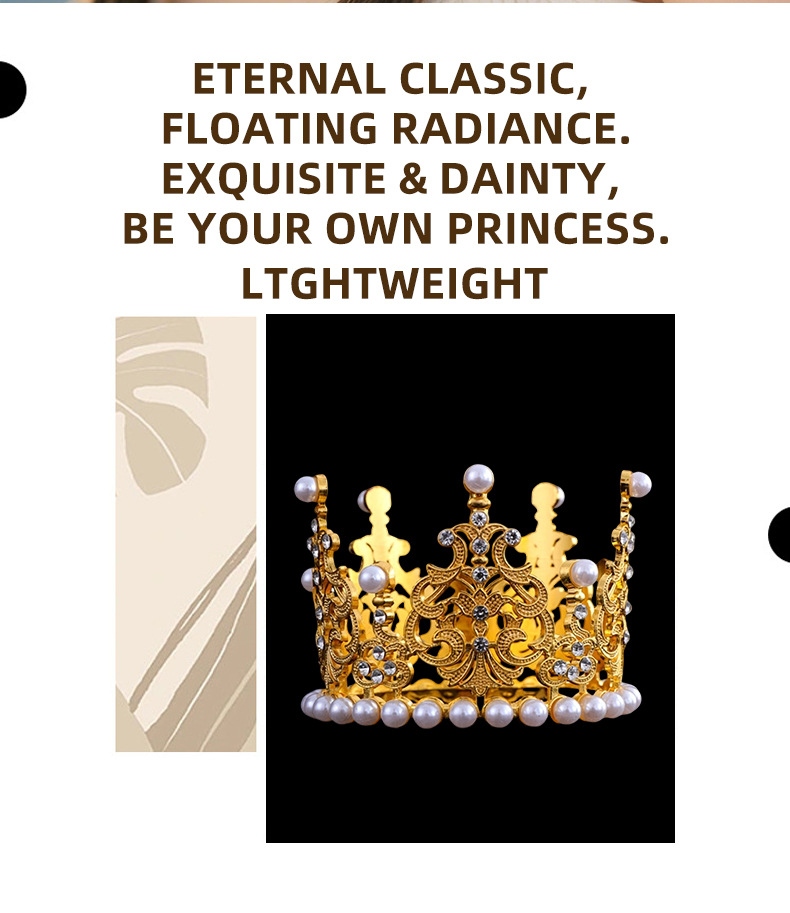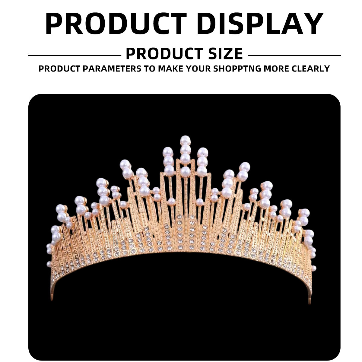 跨境皇冠头饰整圆珍珠新娘婚纱合金配饰生日舞会派对头饰镶钻饰品