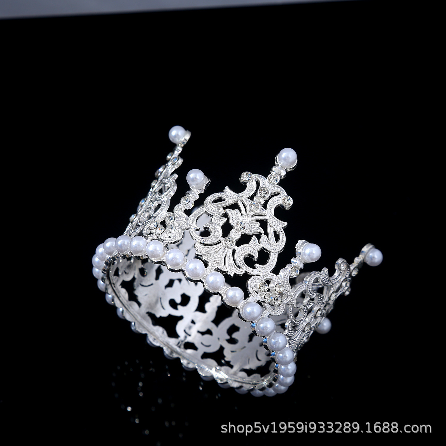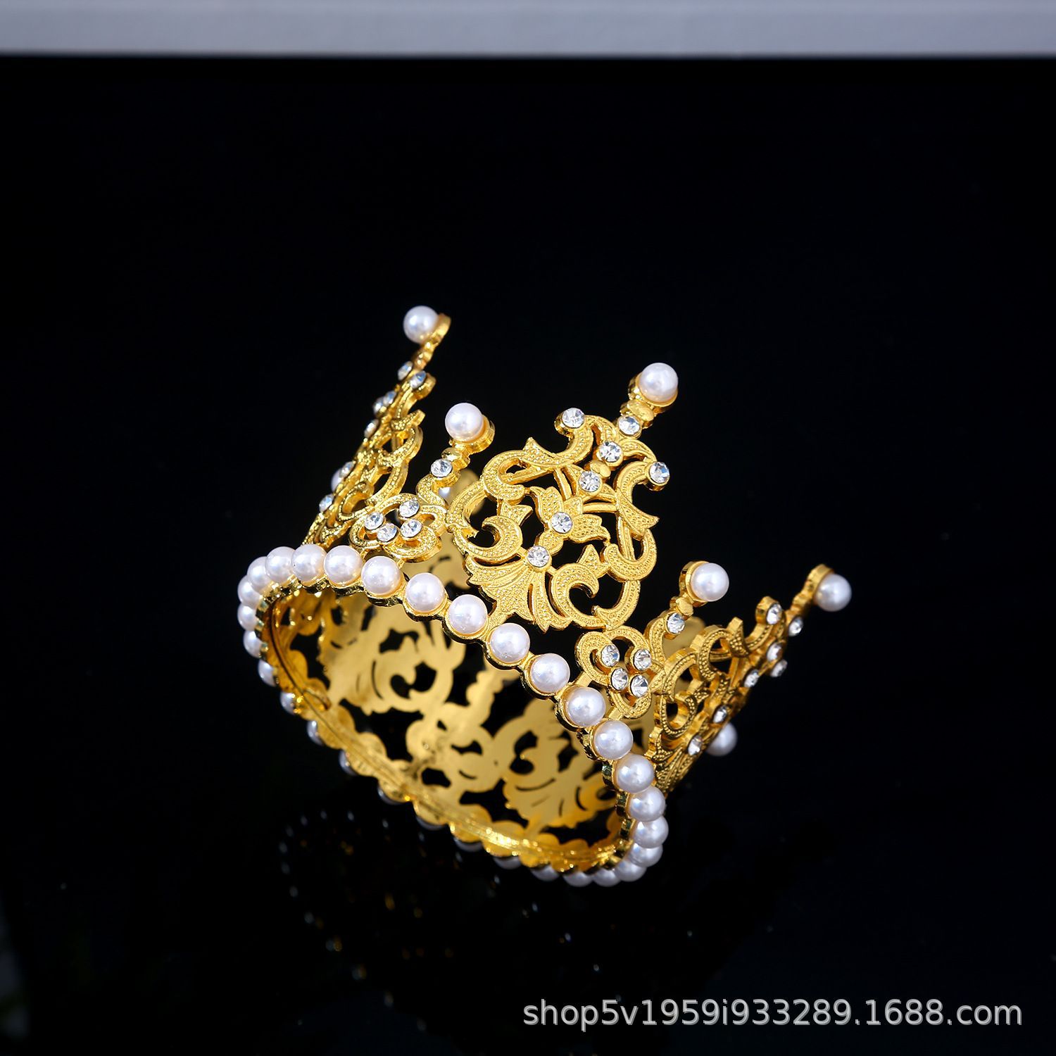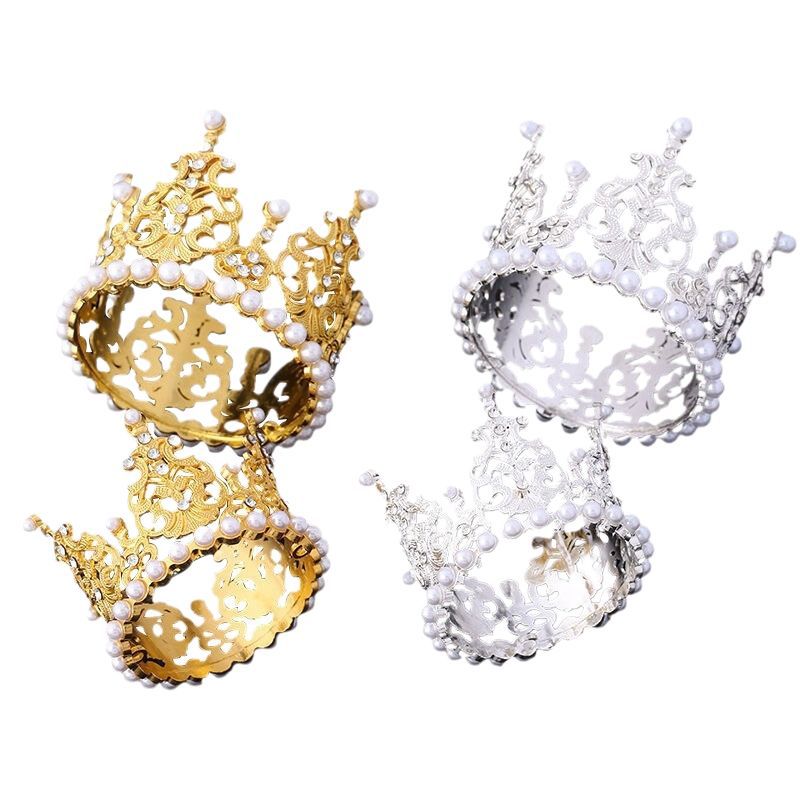 珍珠新娘皇冠头饰水钻合金公主王冠生日蛋糕摆件花束烘焙甜品装饰