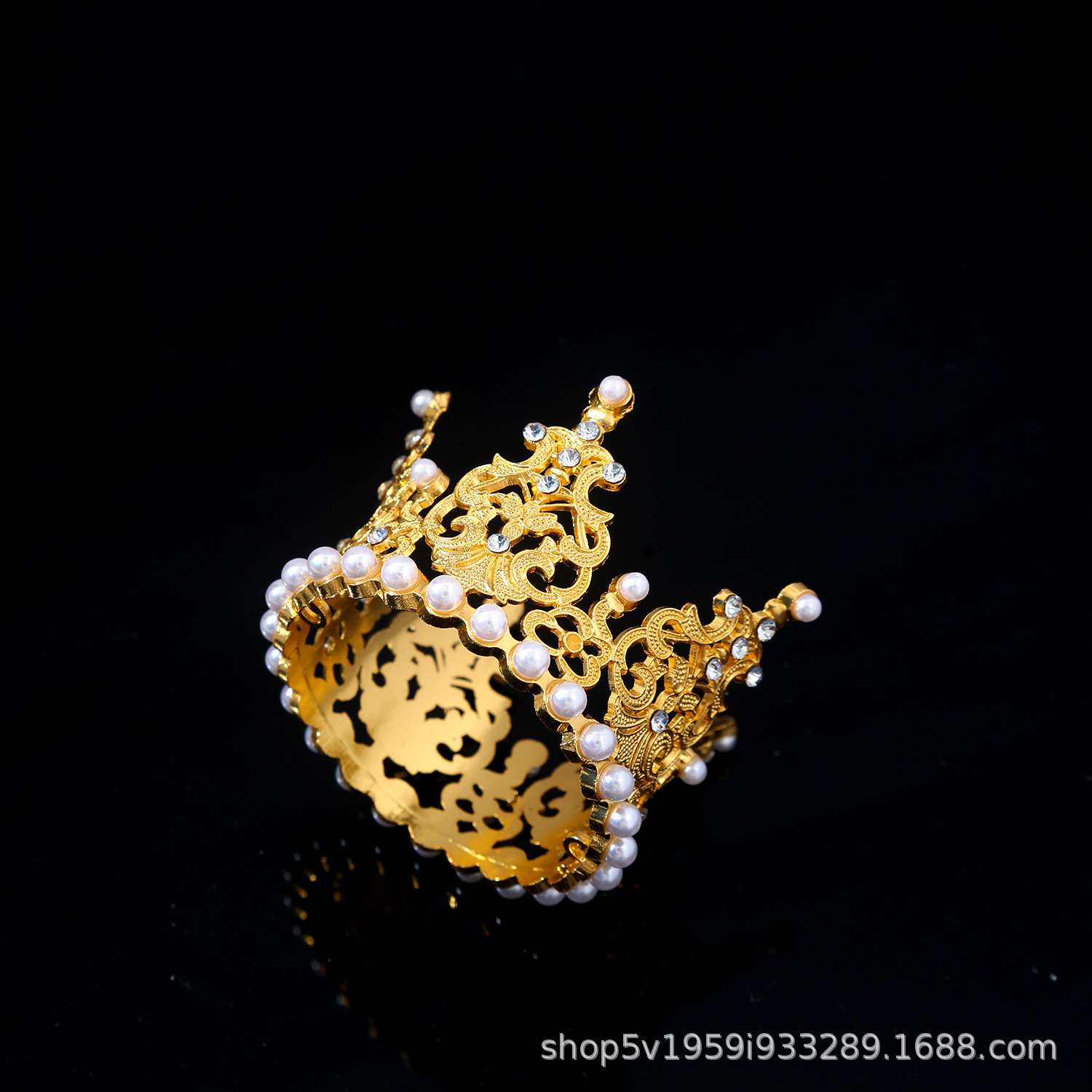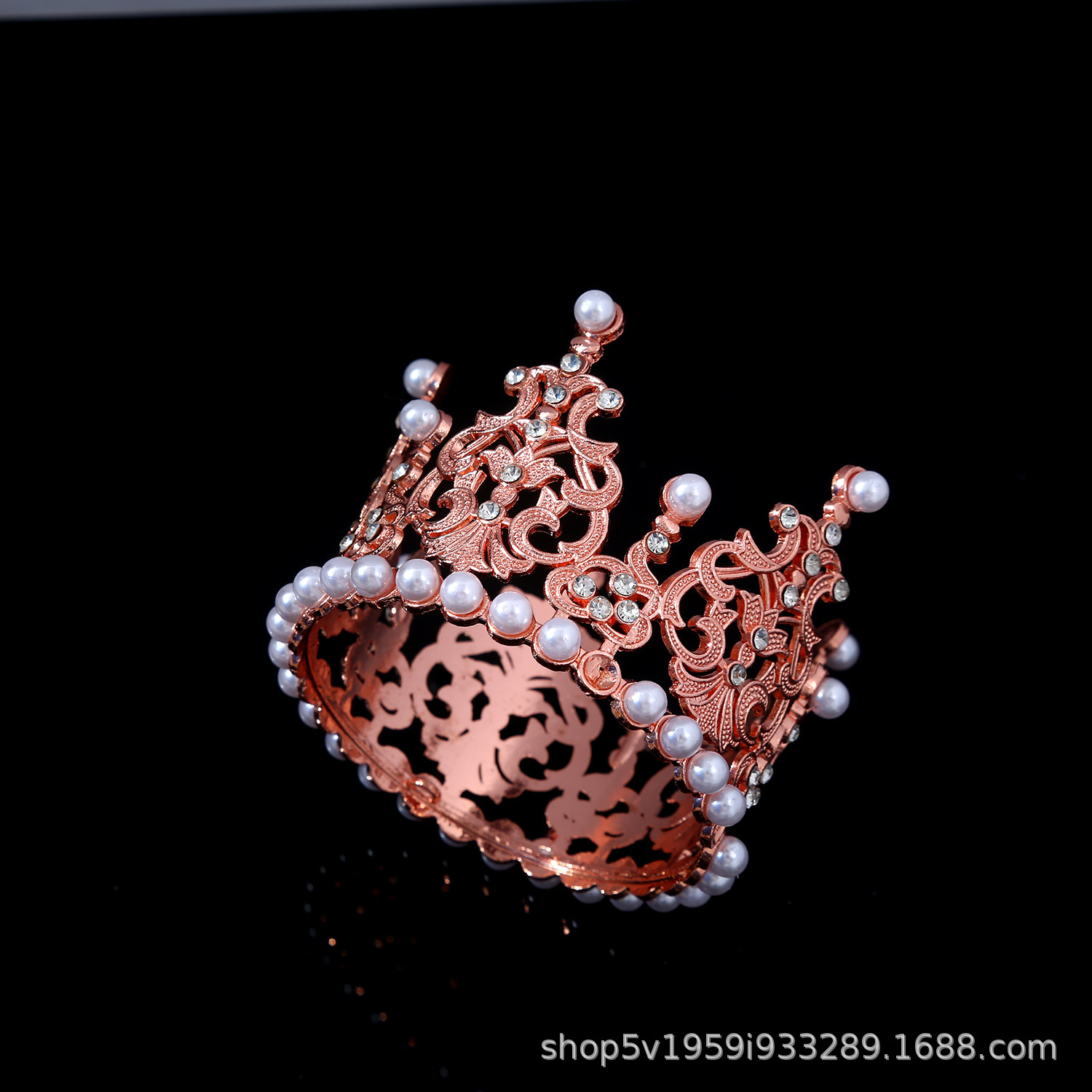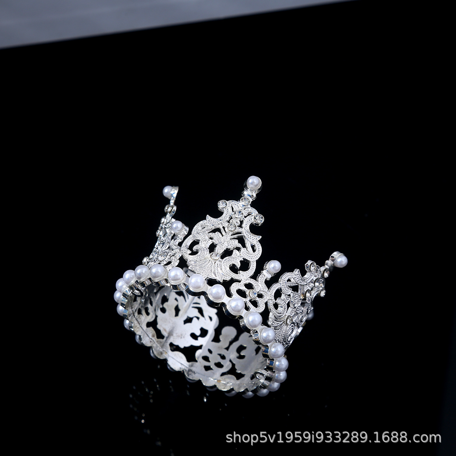 珍珠新娘皇冠头饰水钻合金公主王冠生日蛋糕摆件花束烘焙甜品装饰