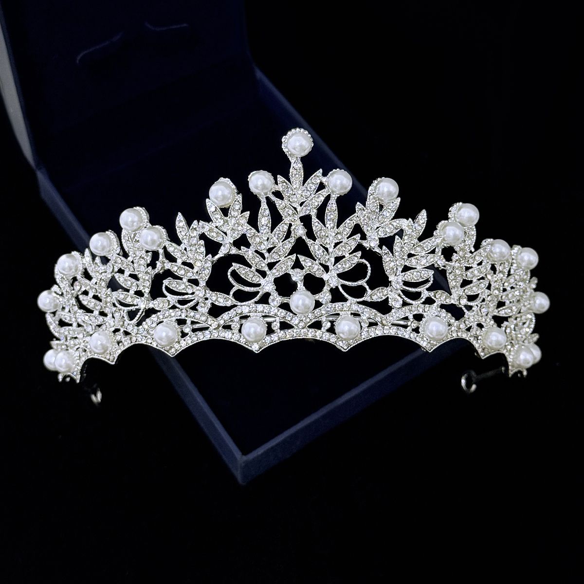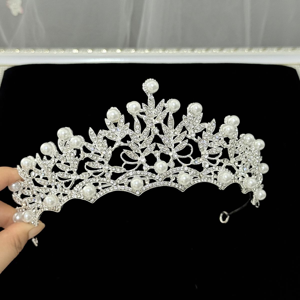 新娘头饰婚纱水钻珍珠新款皇冠配饰公主大气韩式生日皇冠结婚王冠