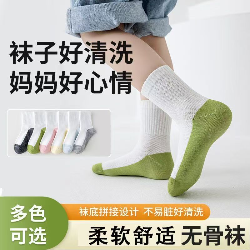 秋冬款儿童袜子拼色学生袜子中筒运动袜舒适柔软有骨袜子现货批发