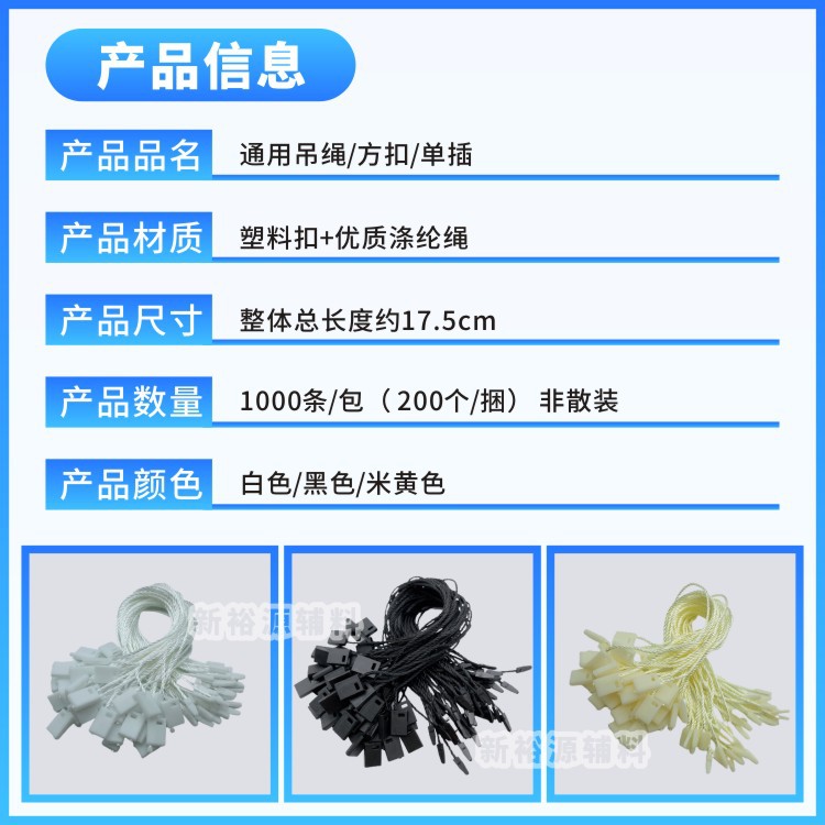 厂家批发通用现货方块吊粒单插吊牌挂绳服装吊绳吊牌方头塑料挂绳