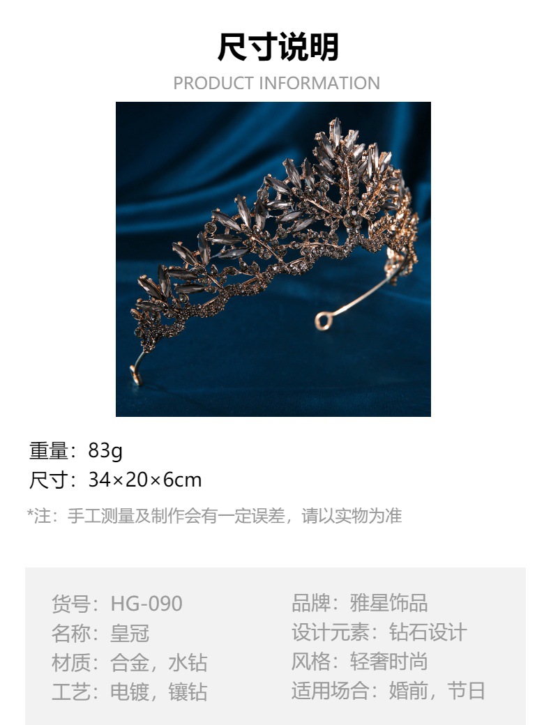 新娘皇冠婚纱礼服头饰生日成人礼演出百搭水钻发箍奢华王冠批发