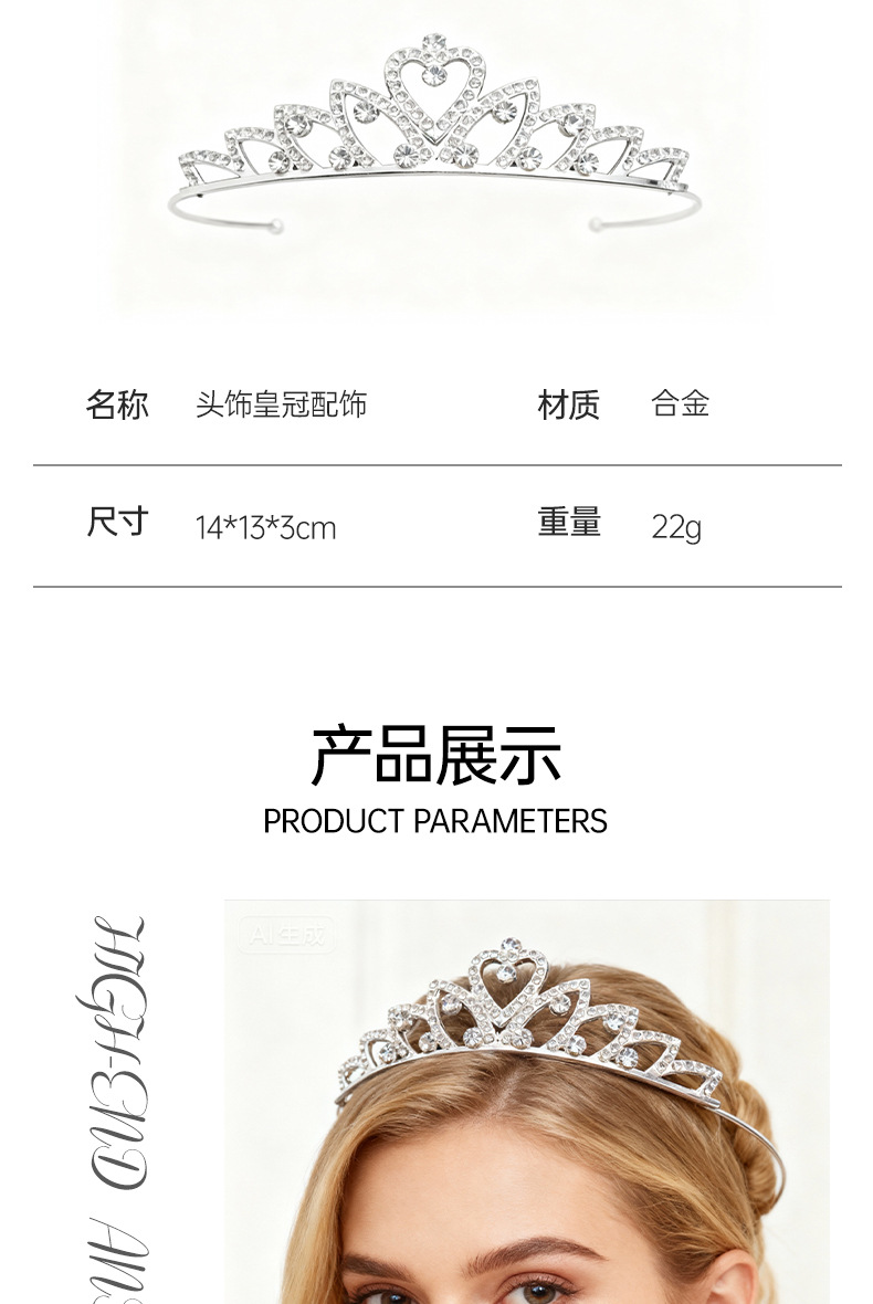 皇冠头饰舞台表演水钻发冠高端生日公主发箍舞会演出礼服配饰王冠