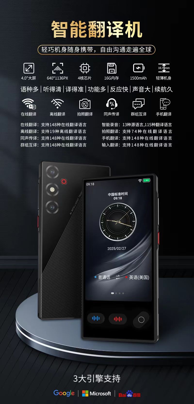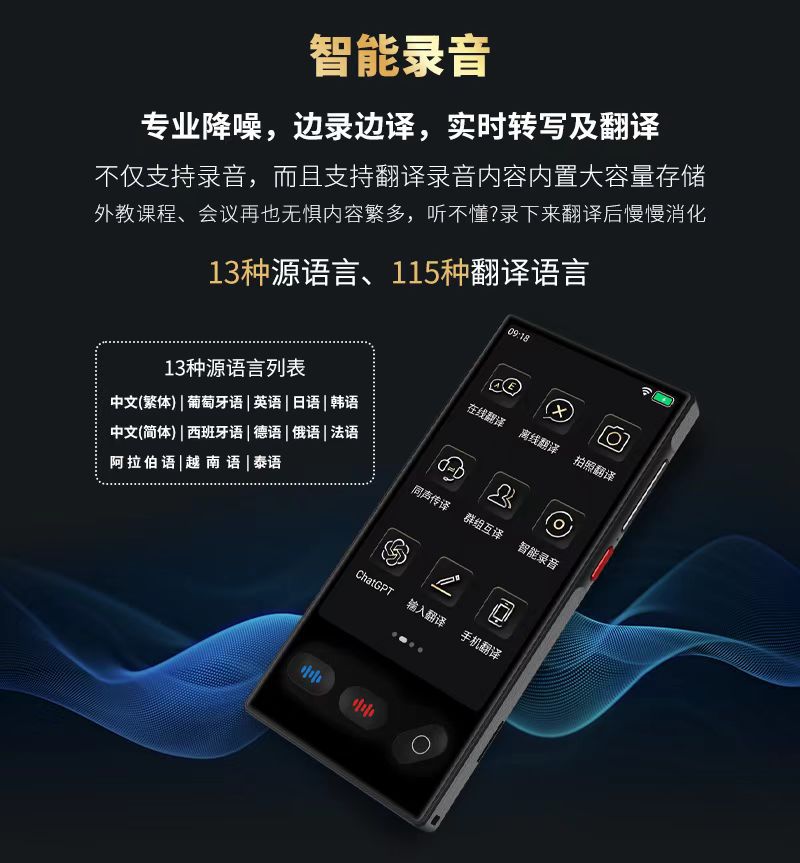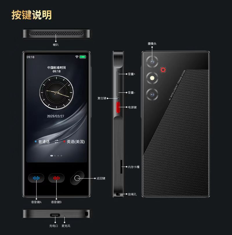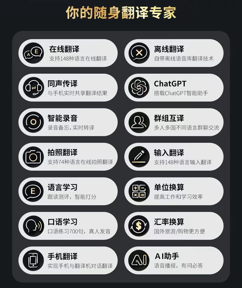 跨境AI智能翻译机带蓝牙功能离线翻译多国语言翻译机精准同声传译