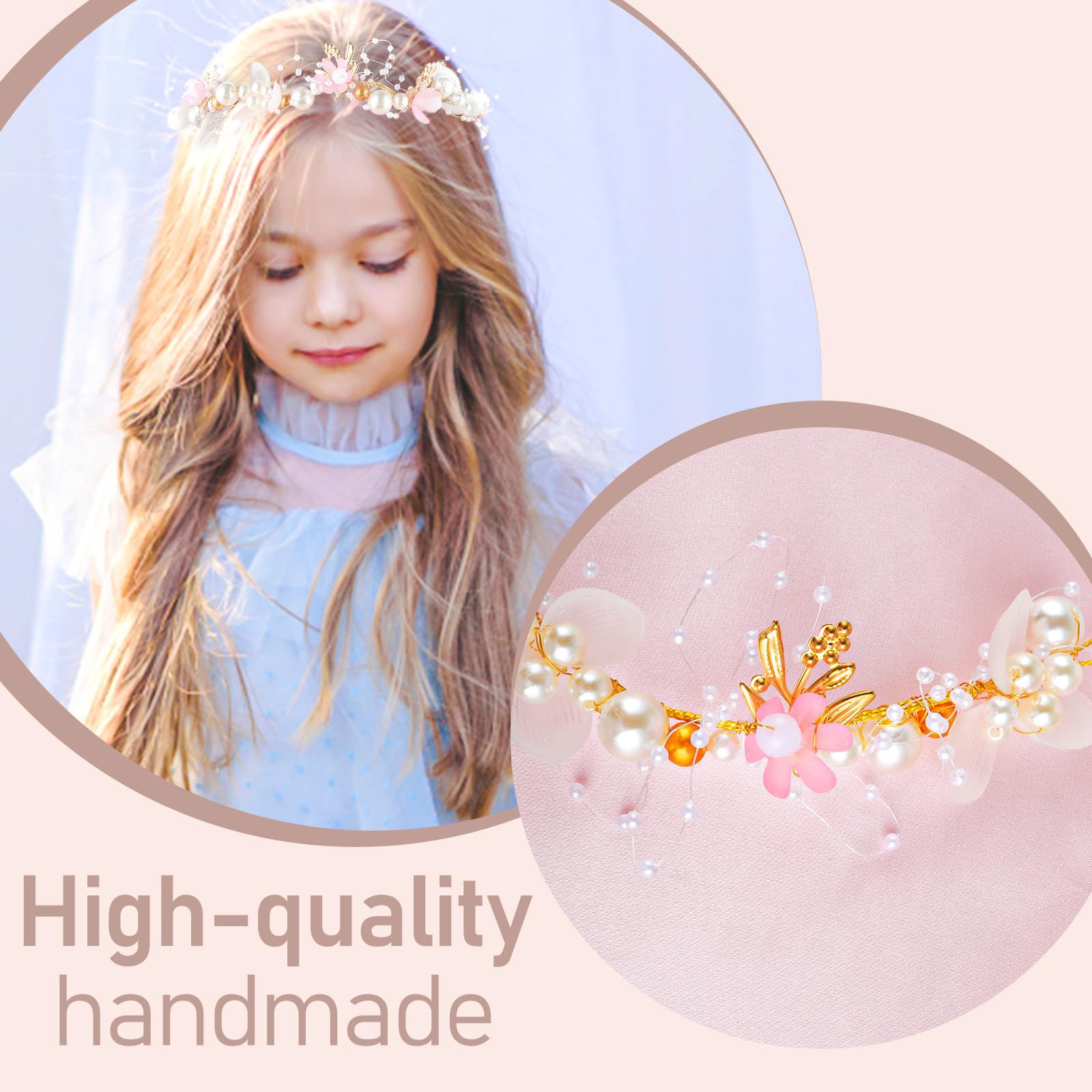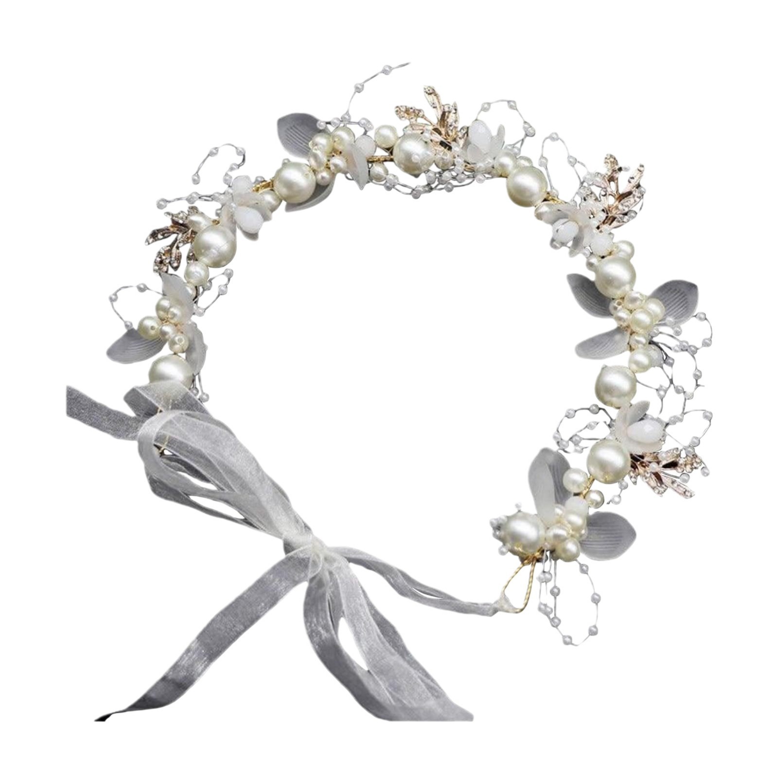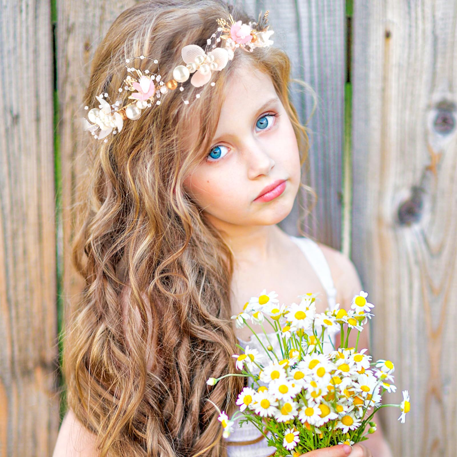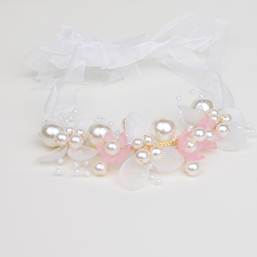 森系粉色花环头花头箍 花朵花环珍珠发带 新娘皇冠欧式儿童头饰