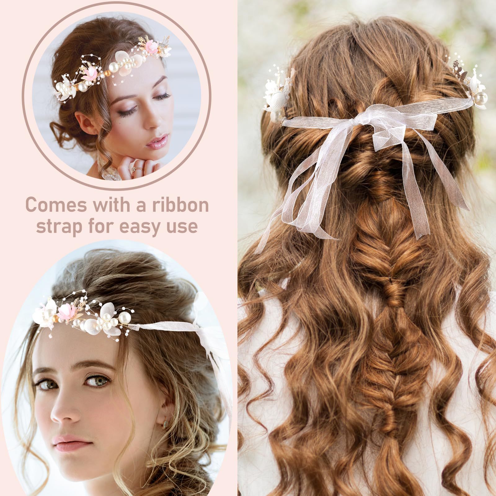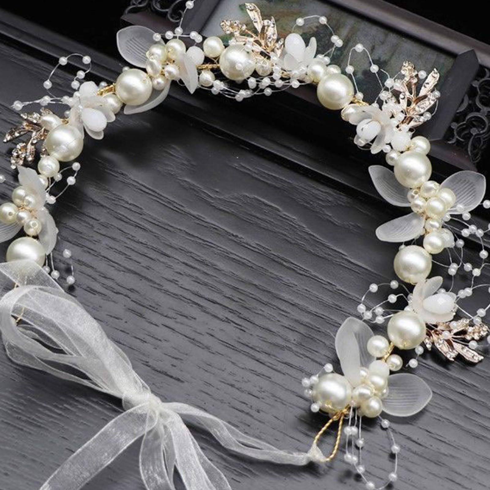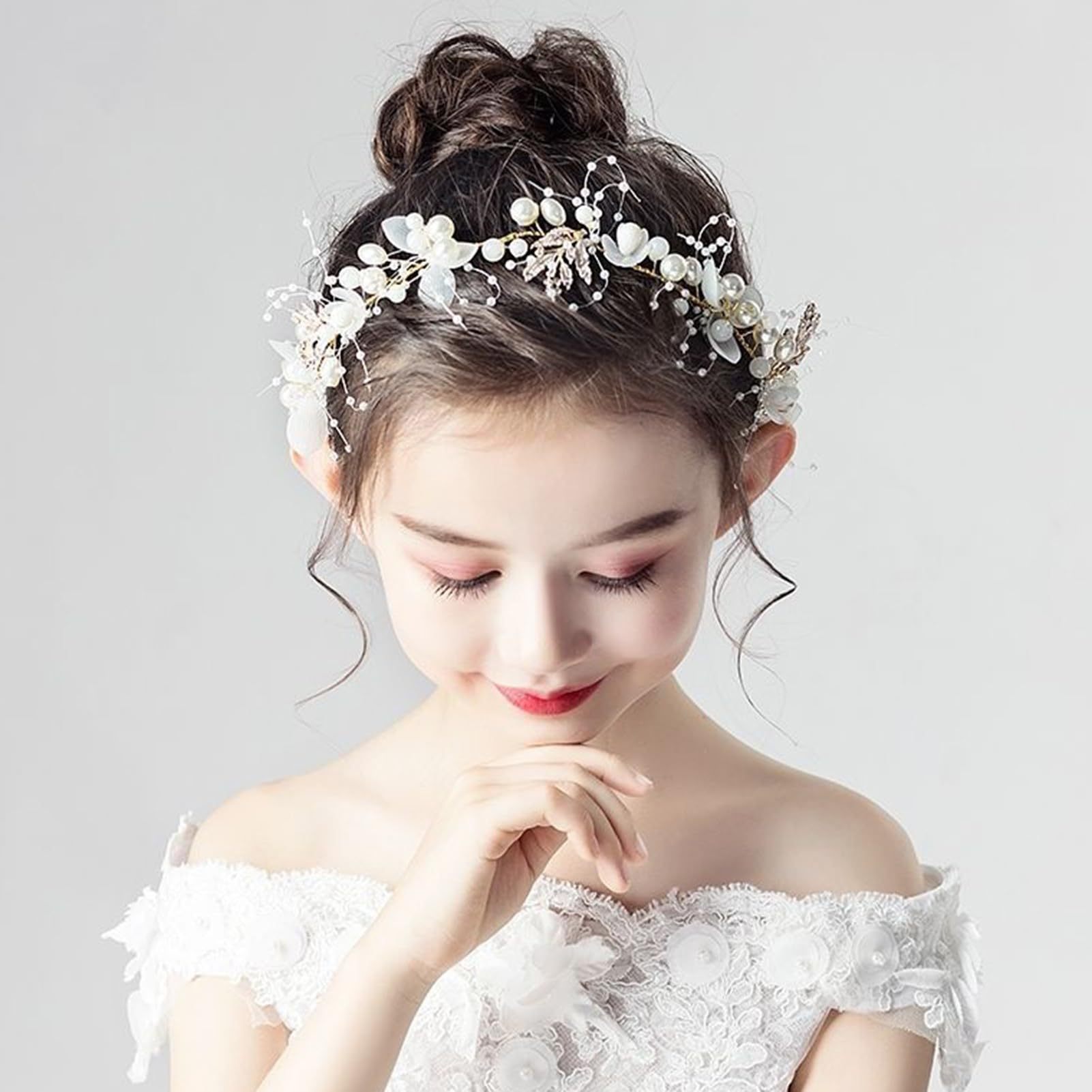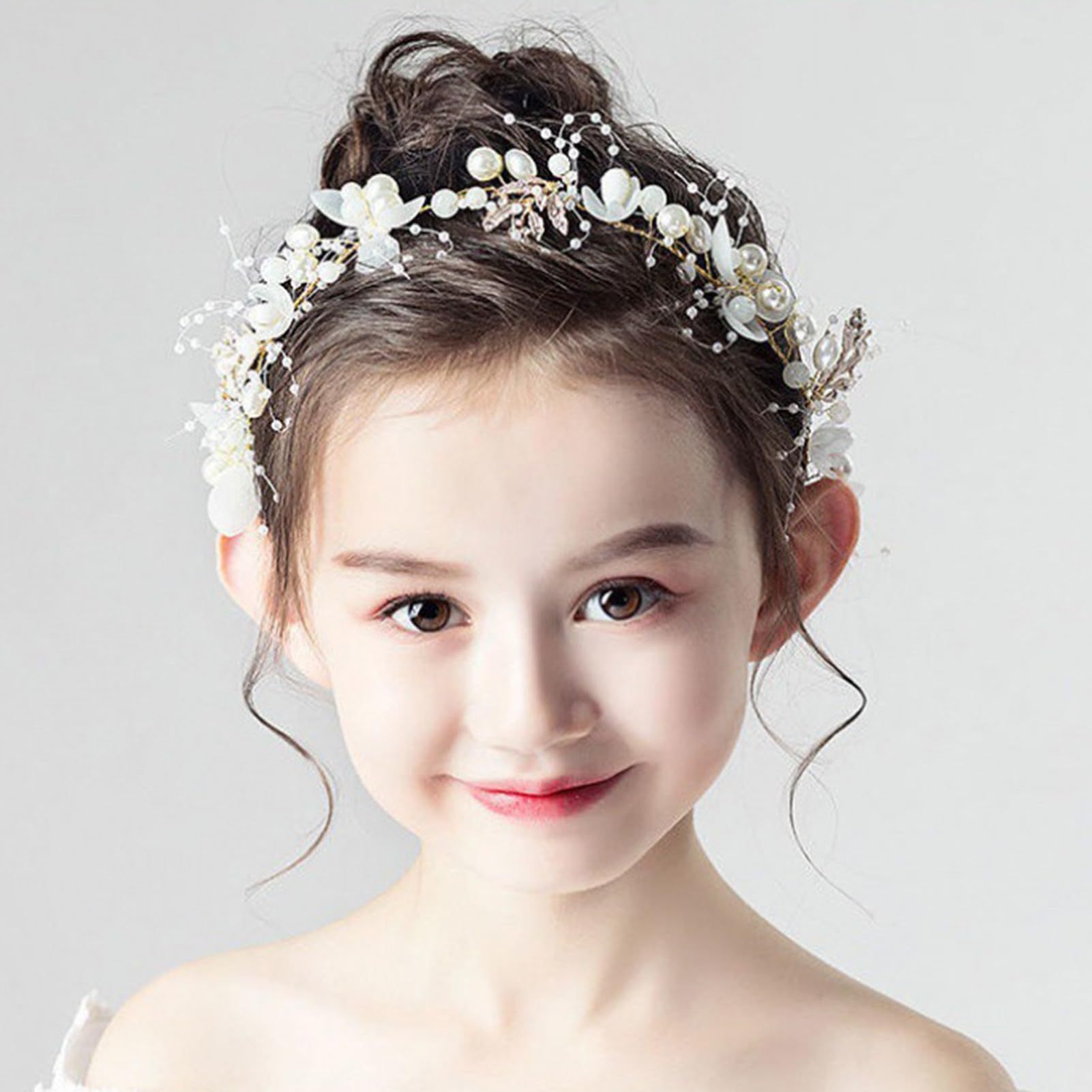 森系粉色花环头花头箍 花朵花环珍珠发带 新娘皇冠欧式儿童头饰