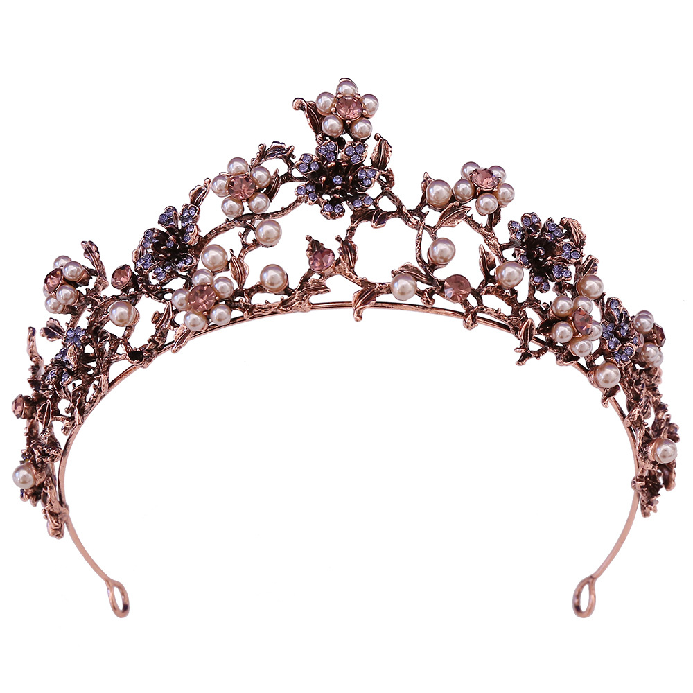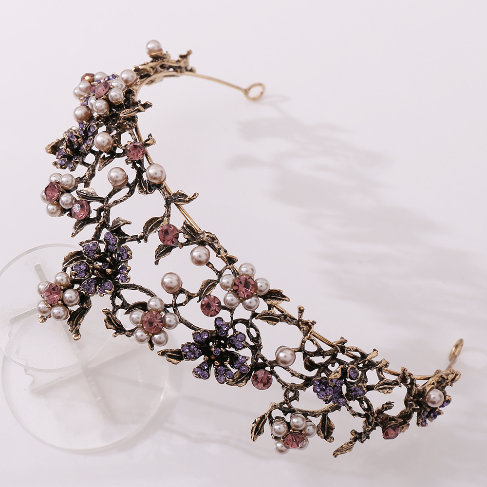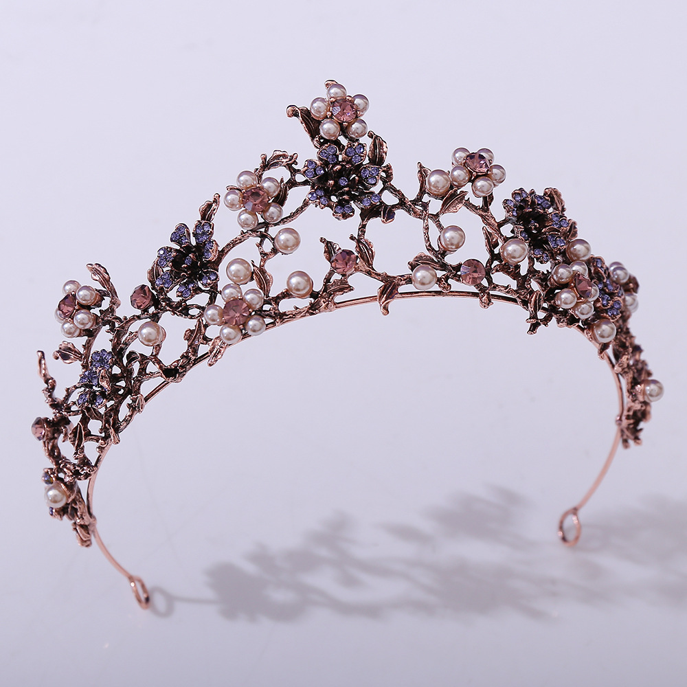 欧美花卉镶黑钻珍珠巴洛克新娘皇冠 韩式婚庆生日头饰发箍配饰品