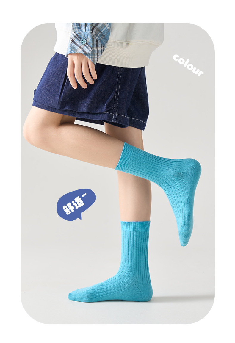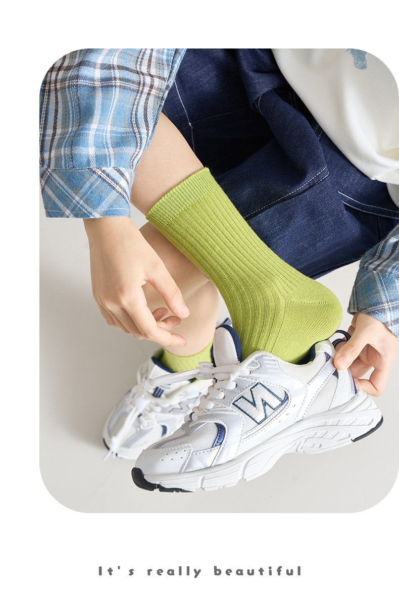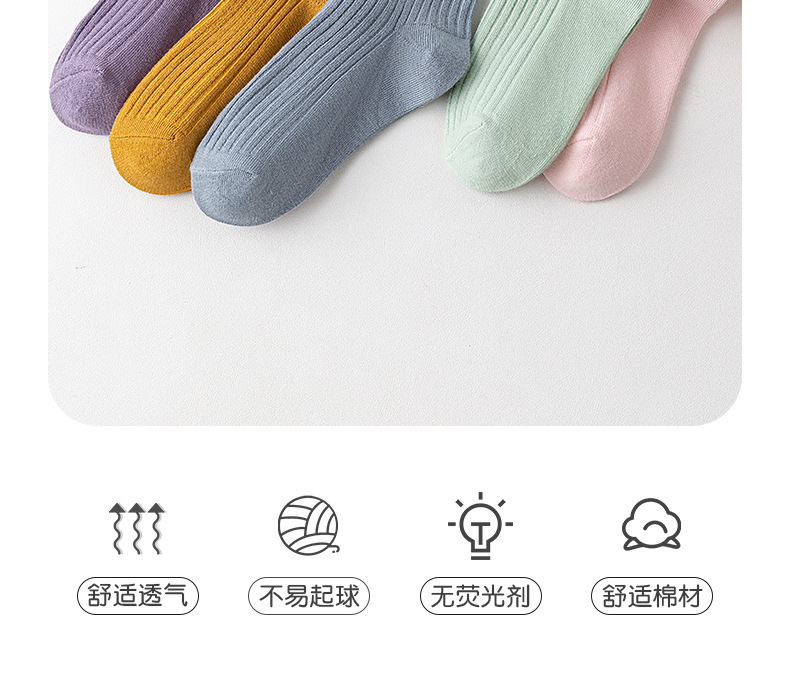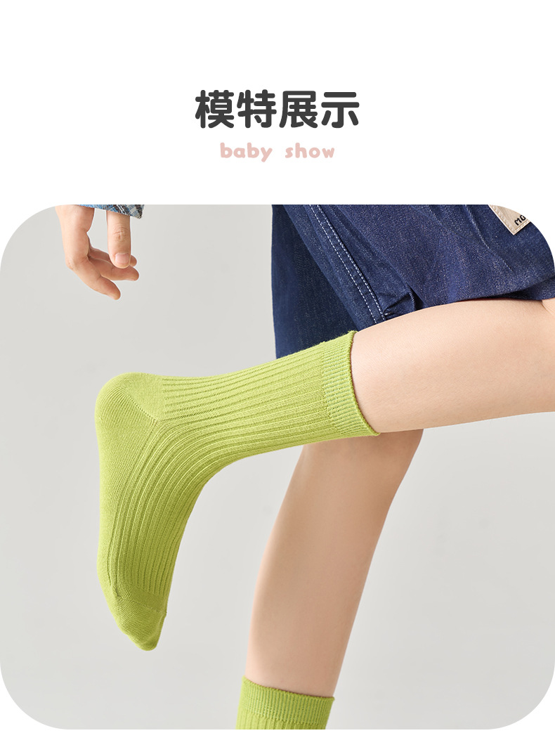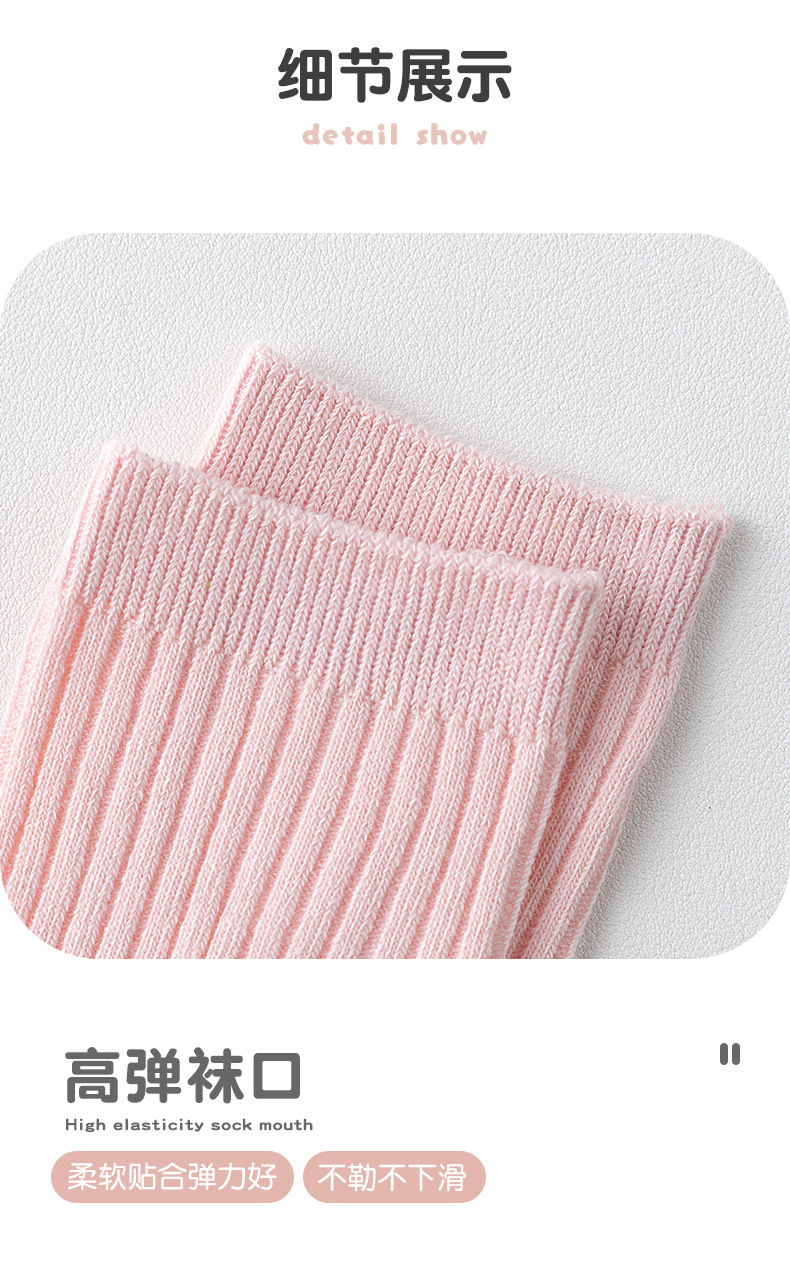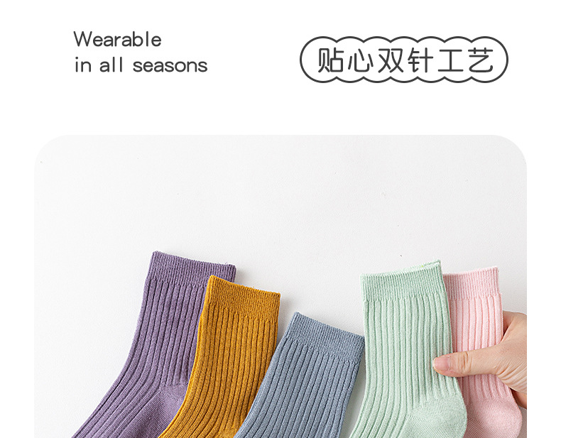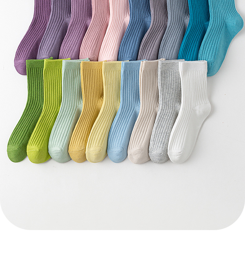儿童袜秋冬纯色中筒袜竖条双针简约百搭中小童棉袜糖果色男女童袜