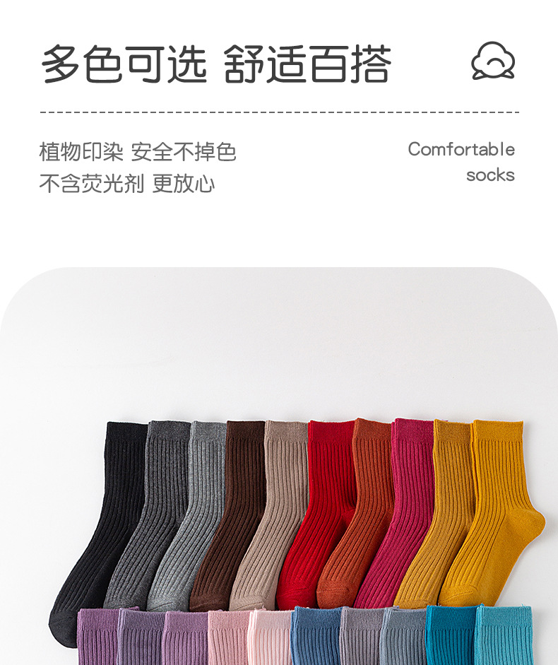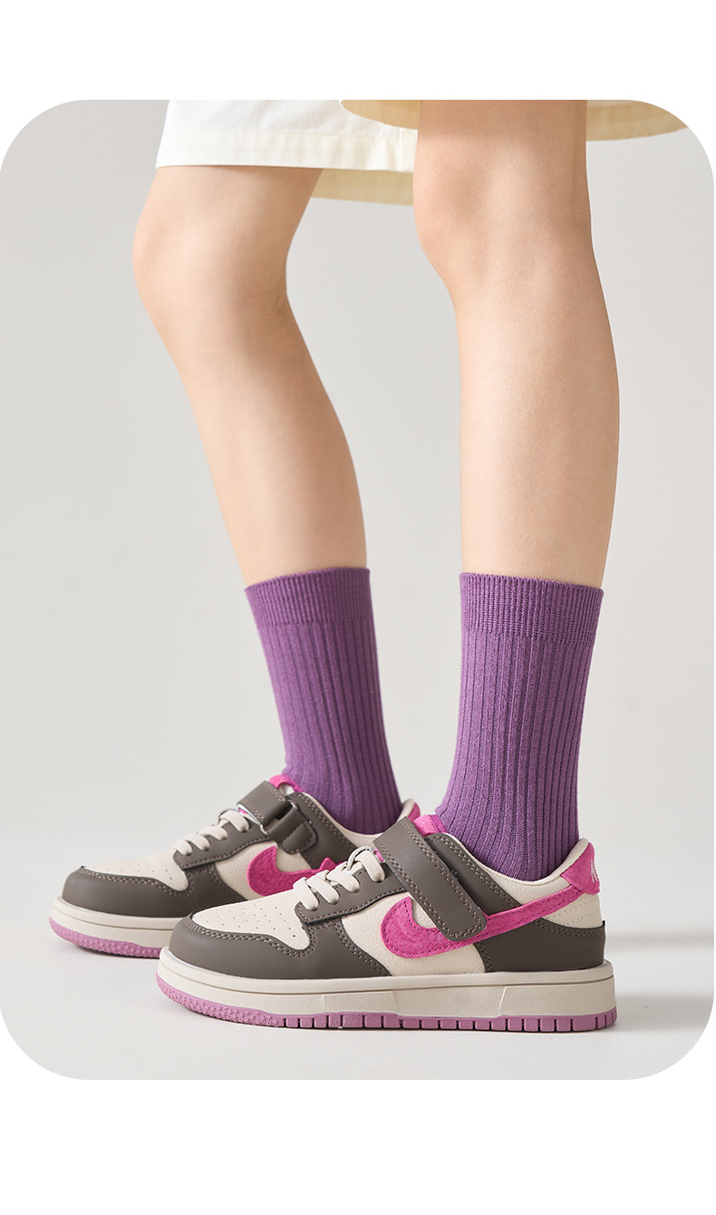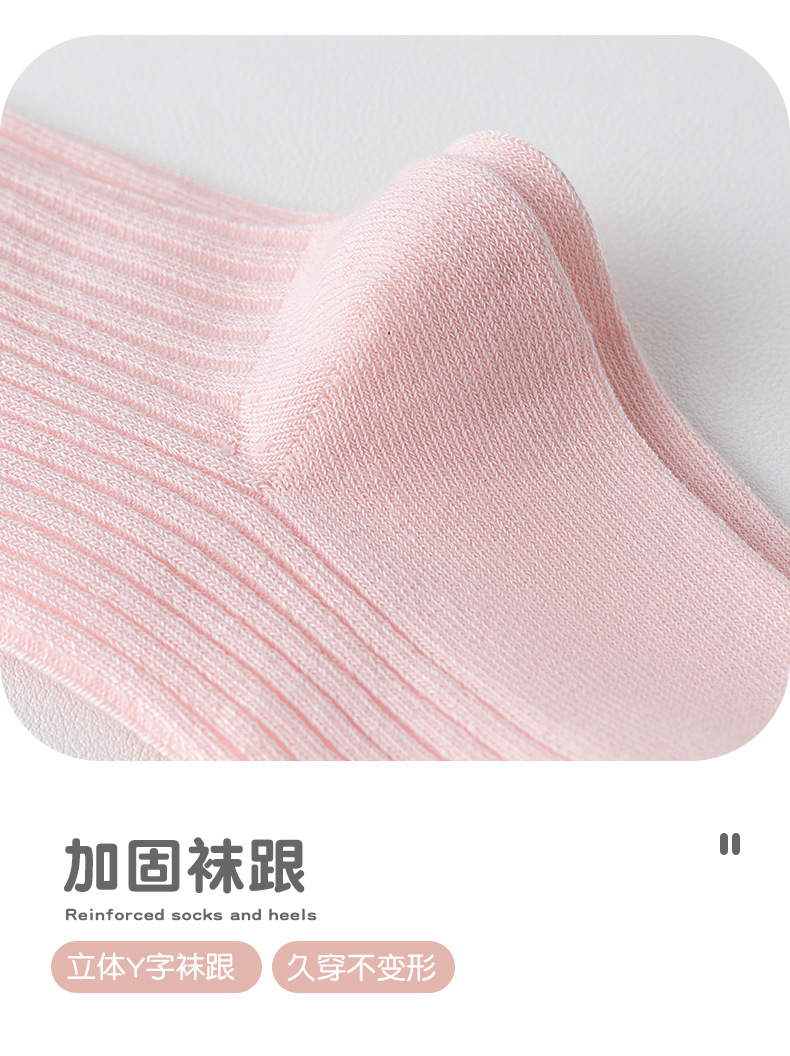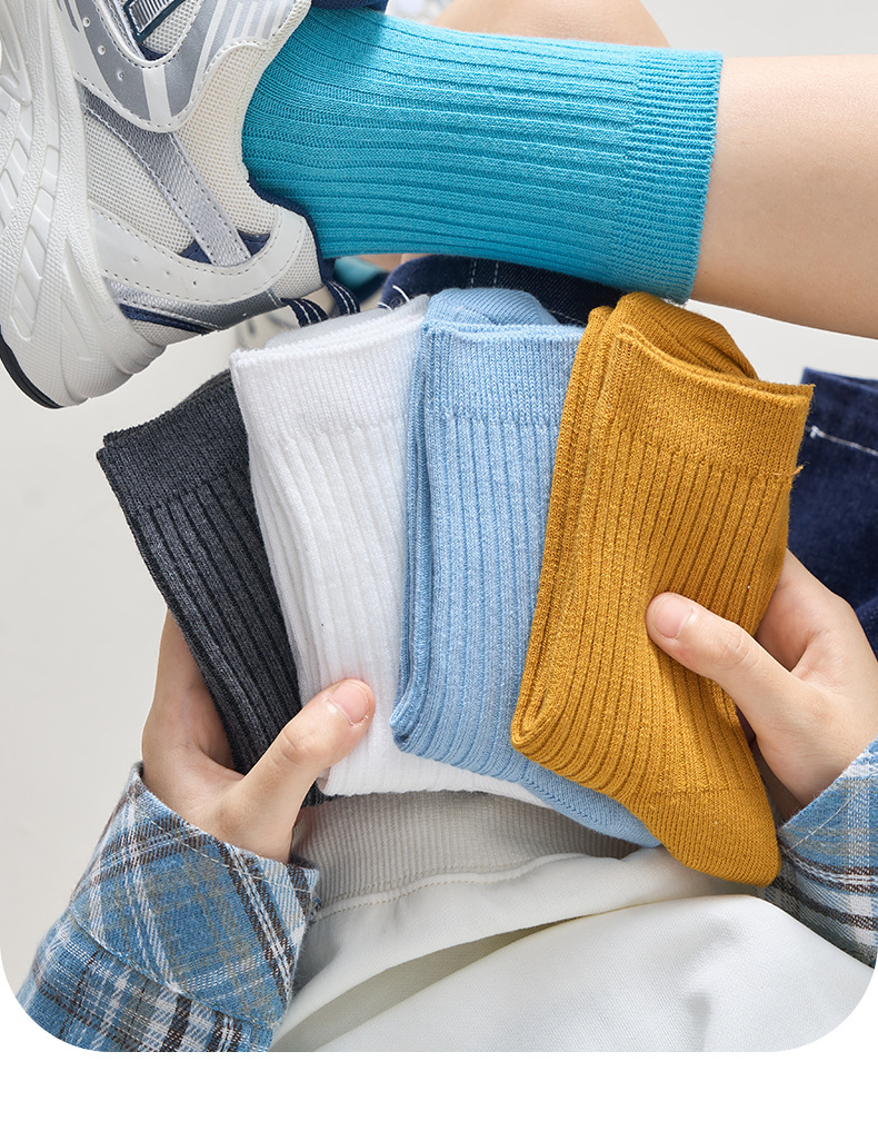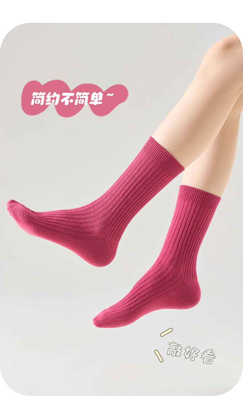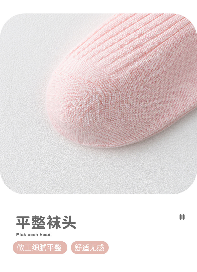儿童袜秋冬纯色中筒袜竖条双针简约百搭中小童棉袜糖果色男女童袜