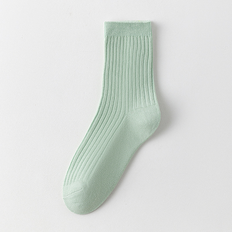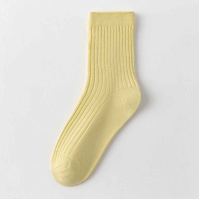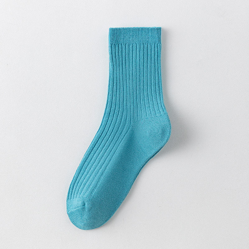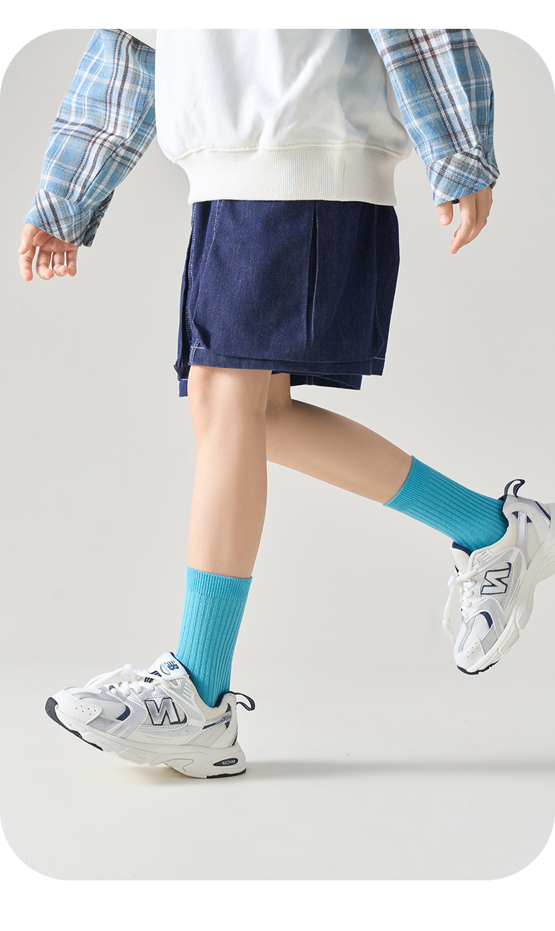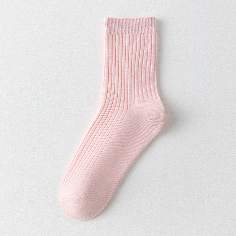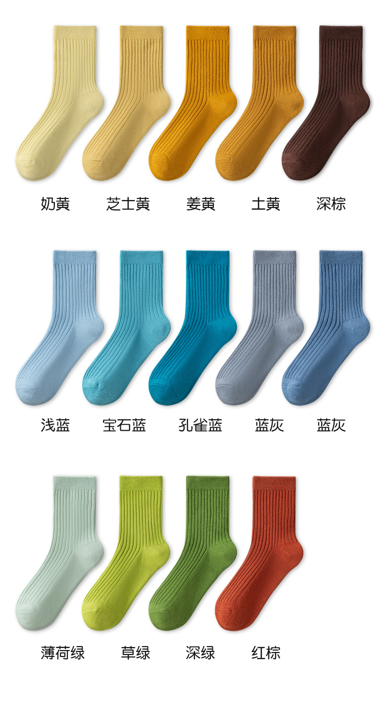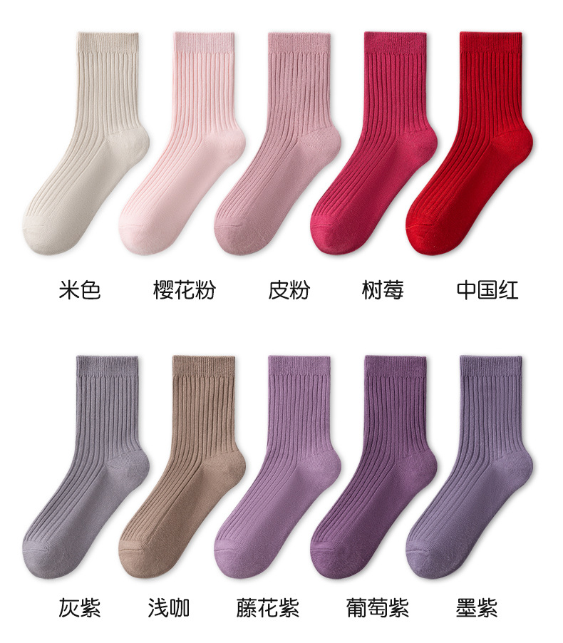 儿童袜秋冬纯色中筒袜竖条双针简约百搭中小童棉袜糖果色男女童袜
