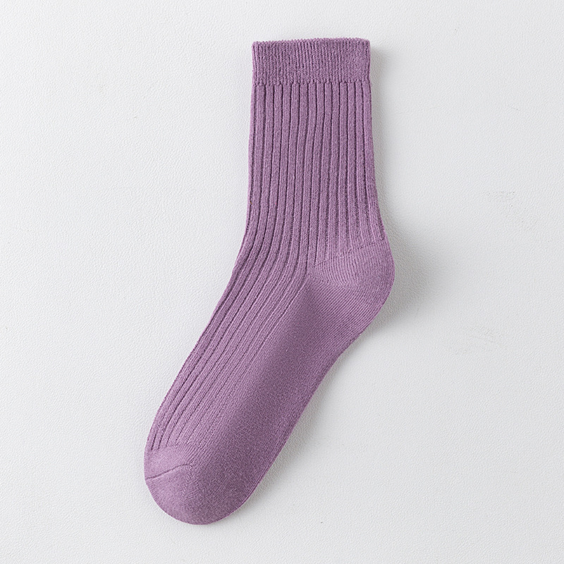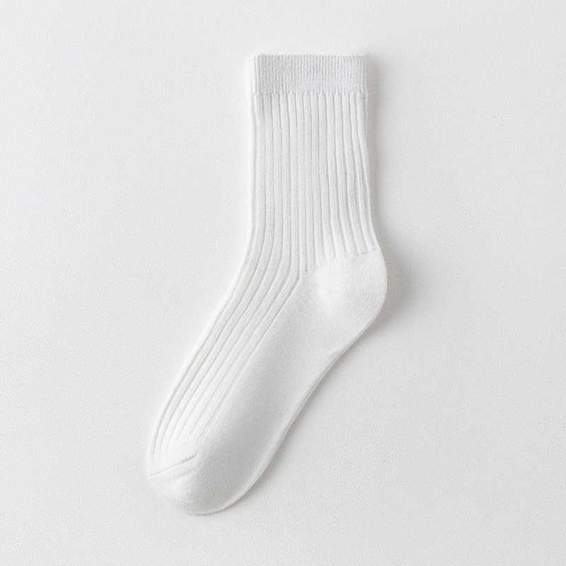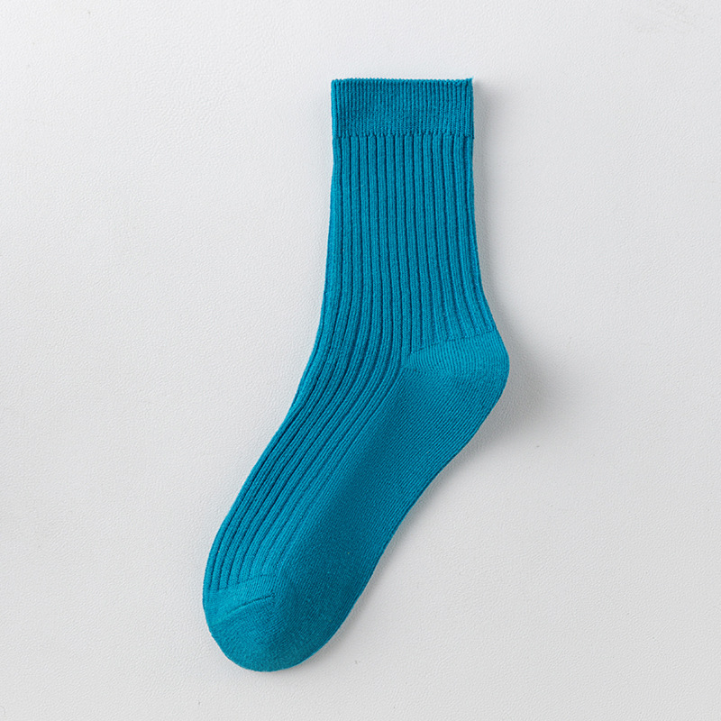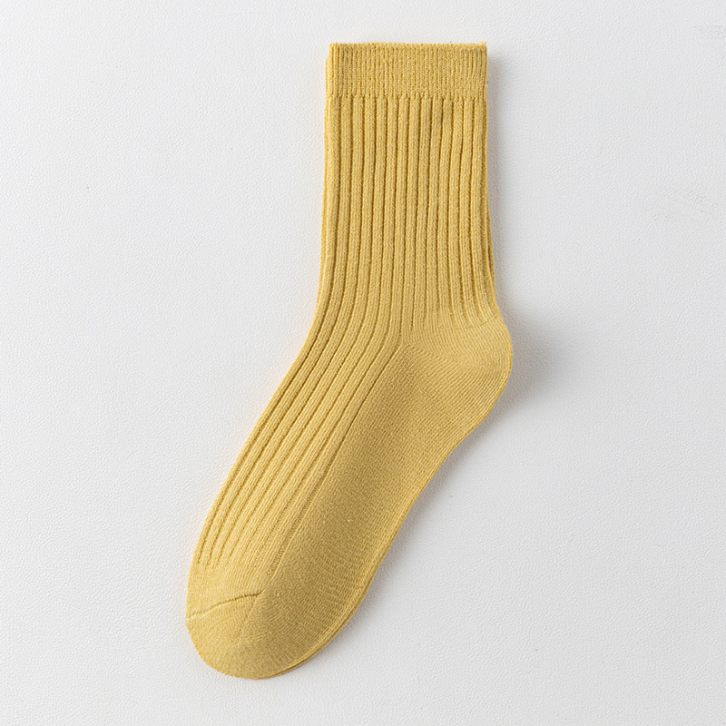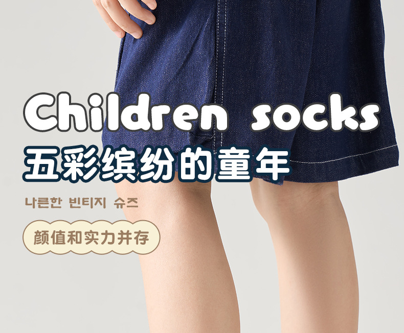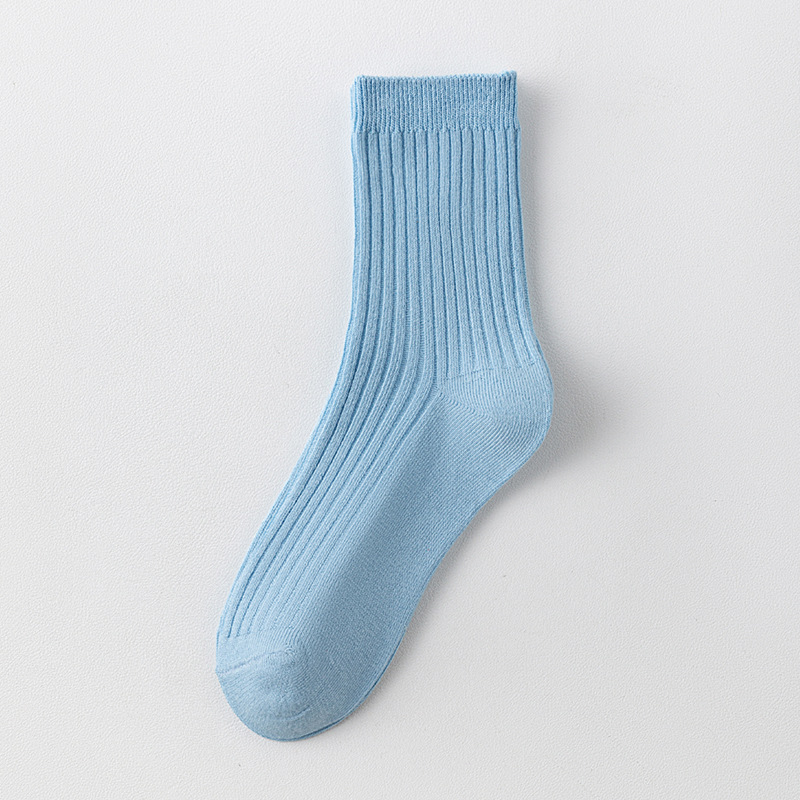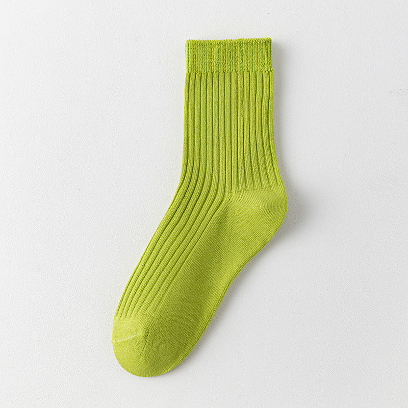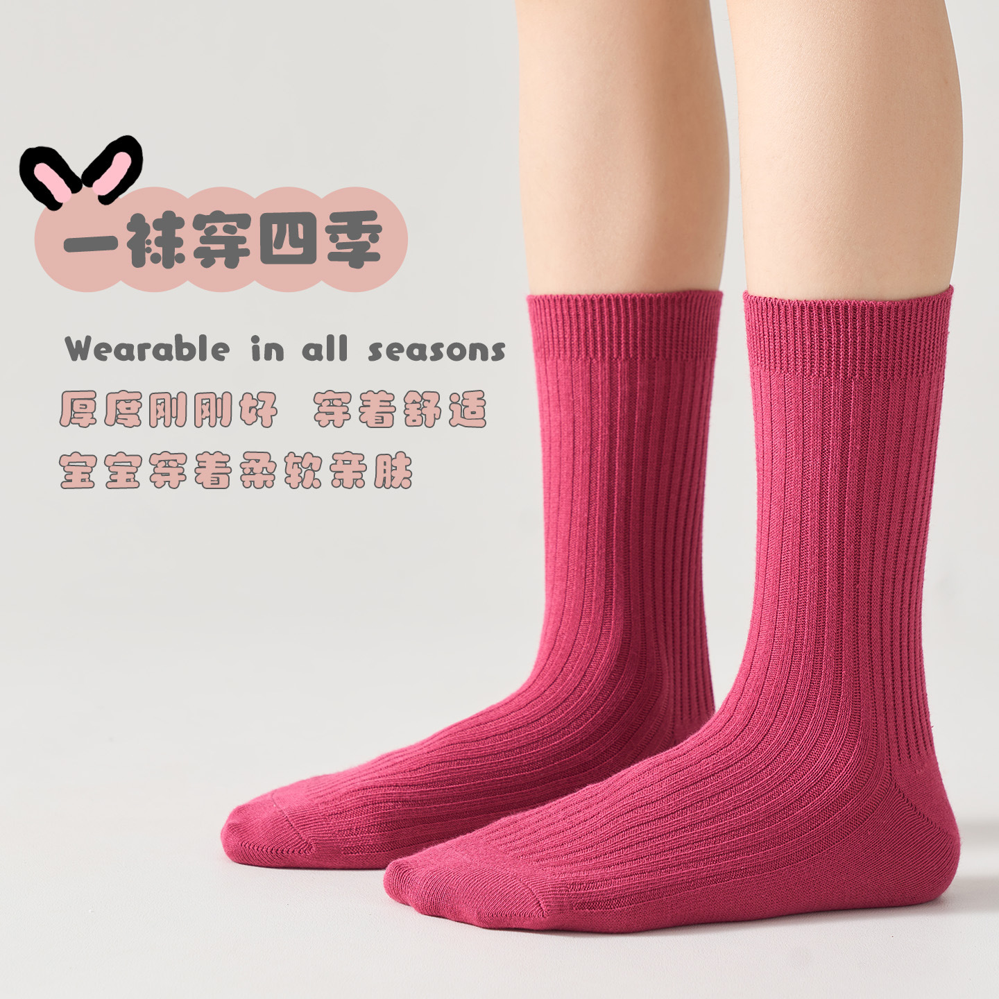 儿童袜秋冬纯色中筒袜竖条双针简约百搭中小童棉袜糖果色男女童袜