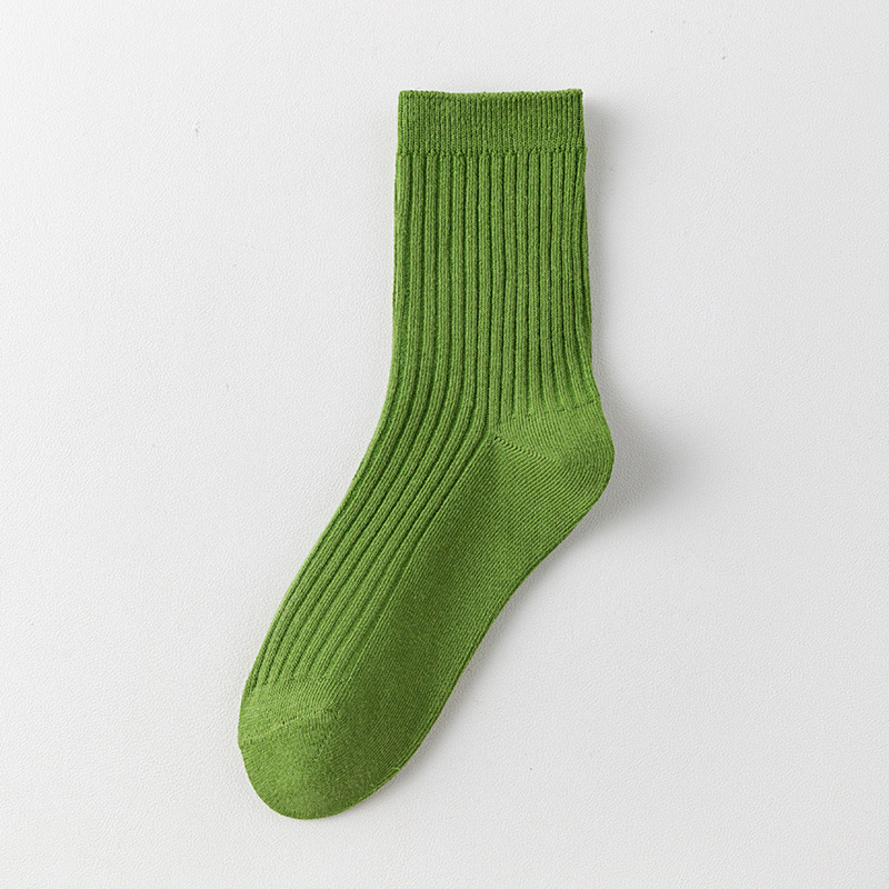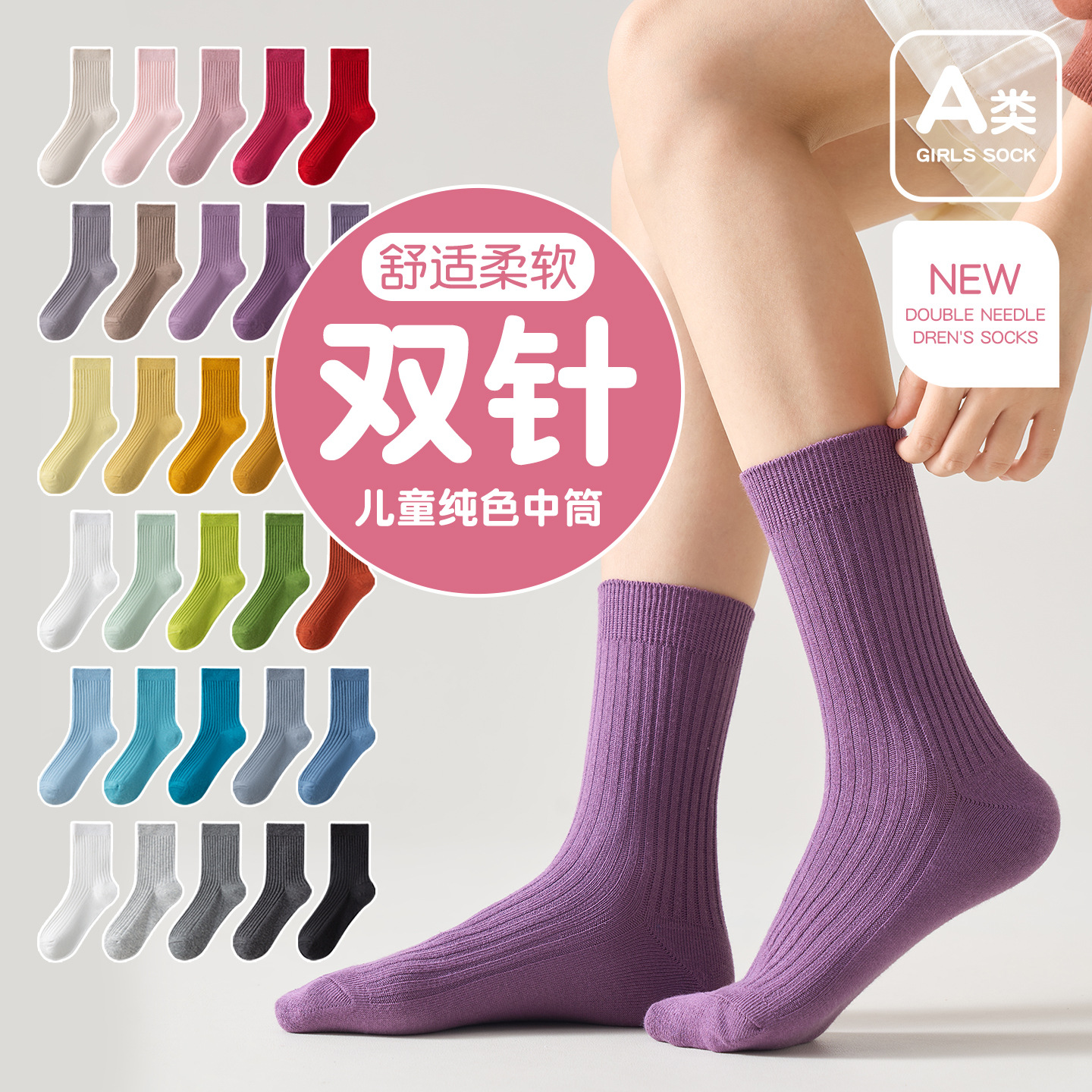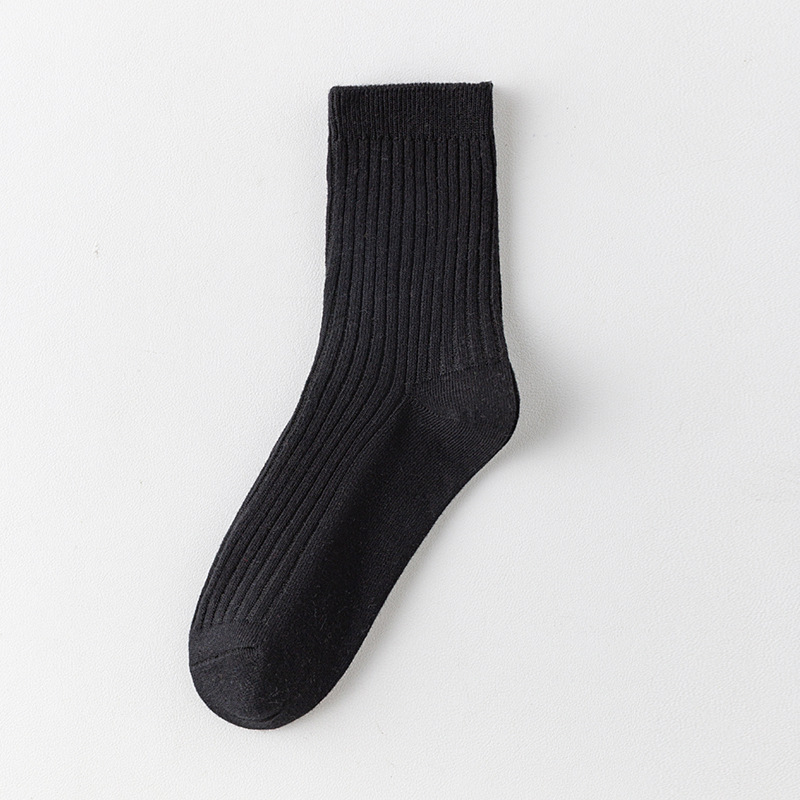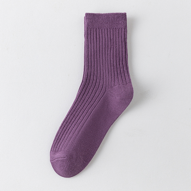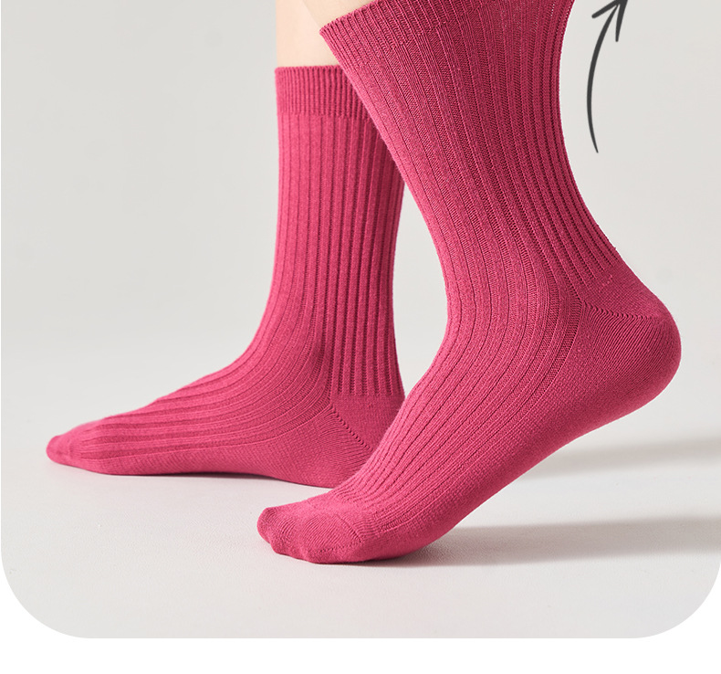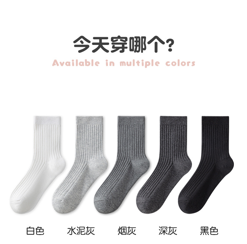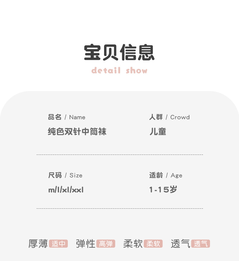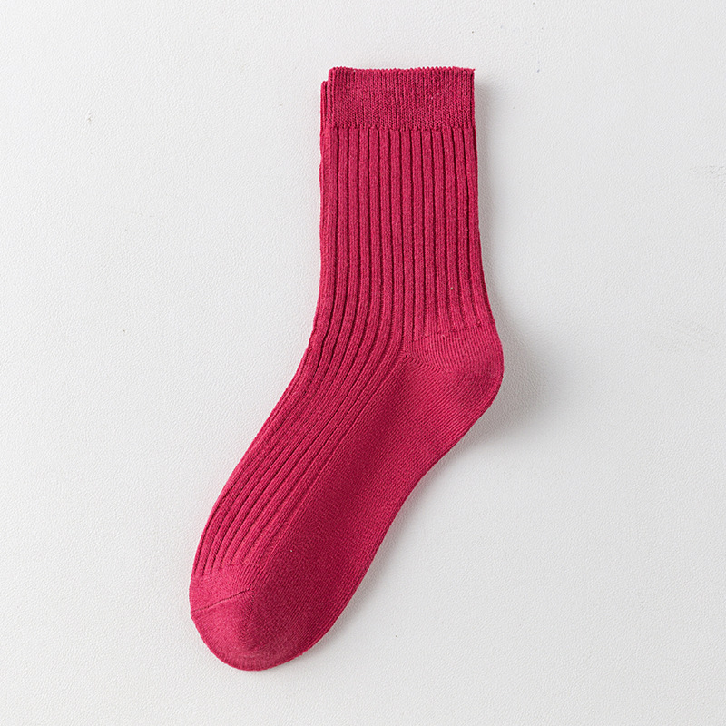 儿童袜秋冬纯色中筒袜竖条双针简约百搭中小童棉袜糖果色男女童袜