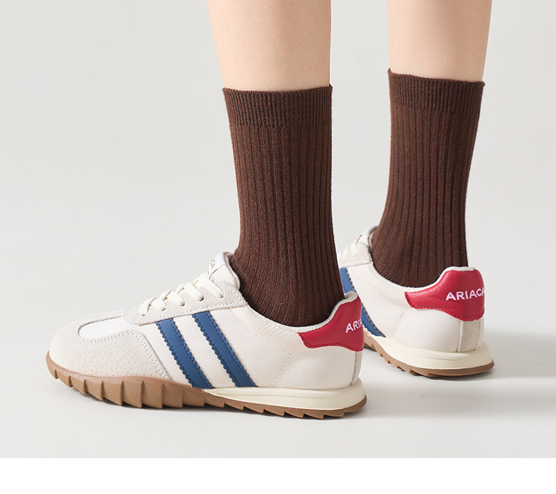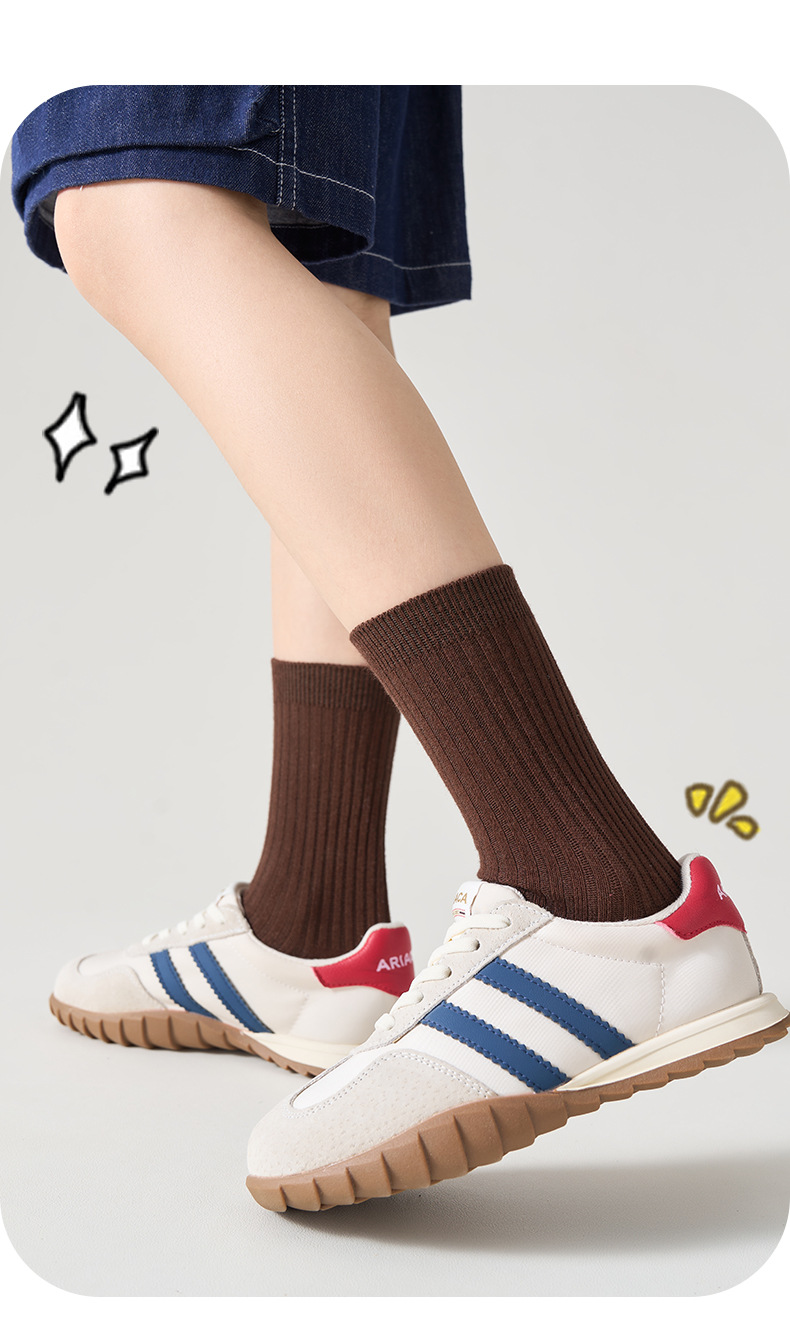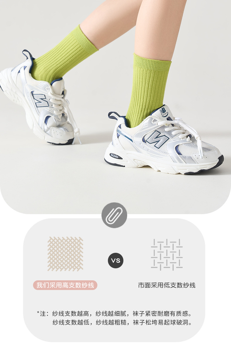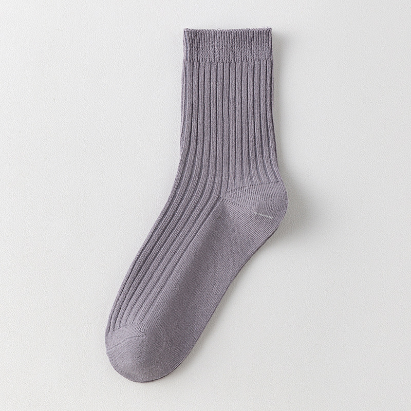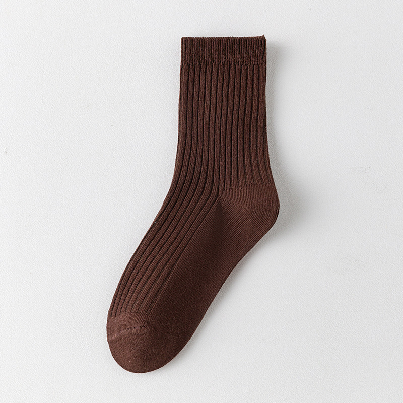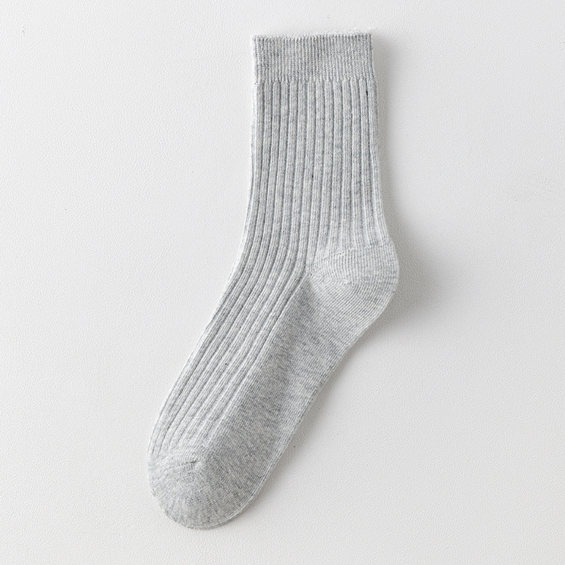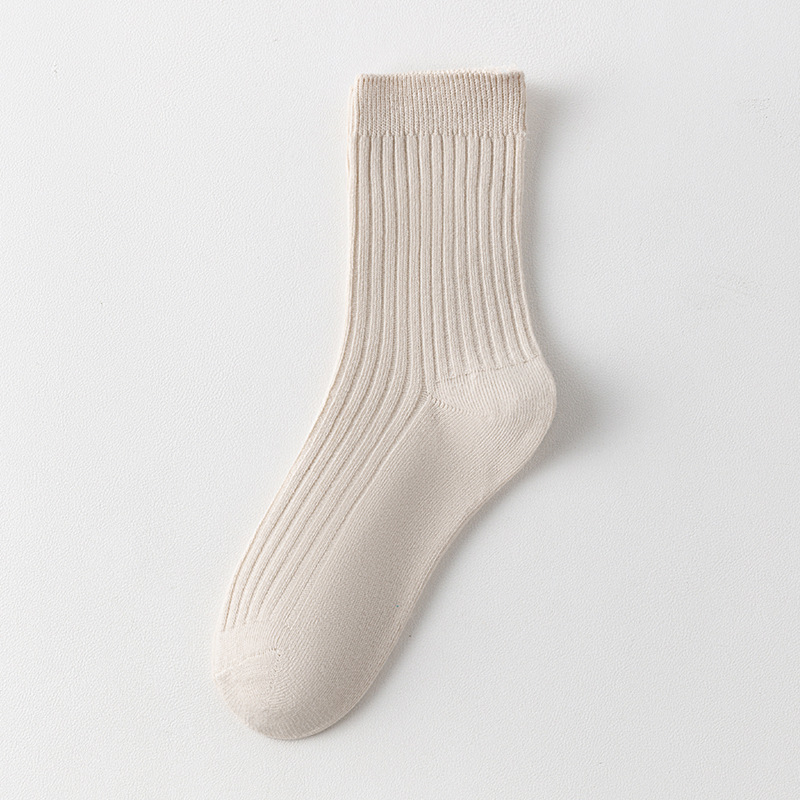 儿童袜秋冬纯色中筒袜竖条双针简约百搭中小童棉袜糖果色男女童袜