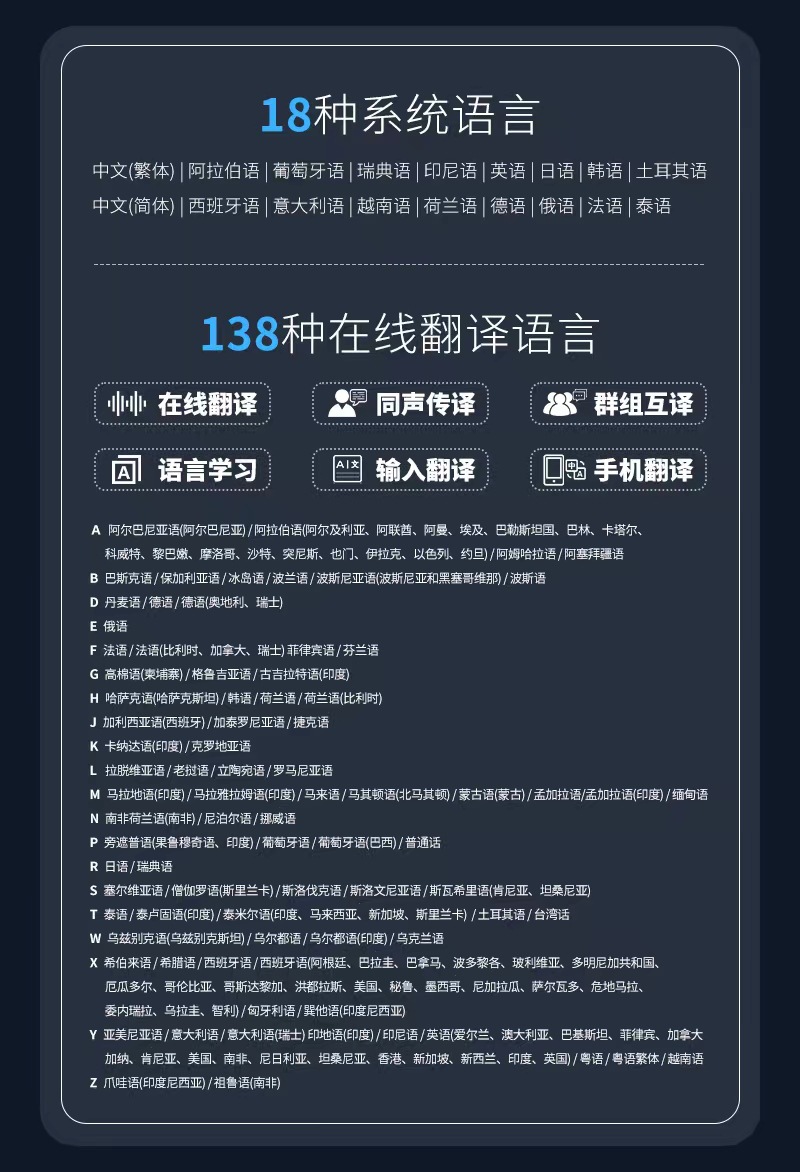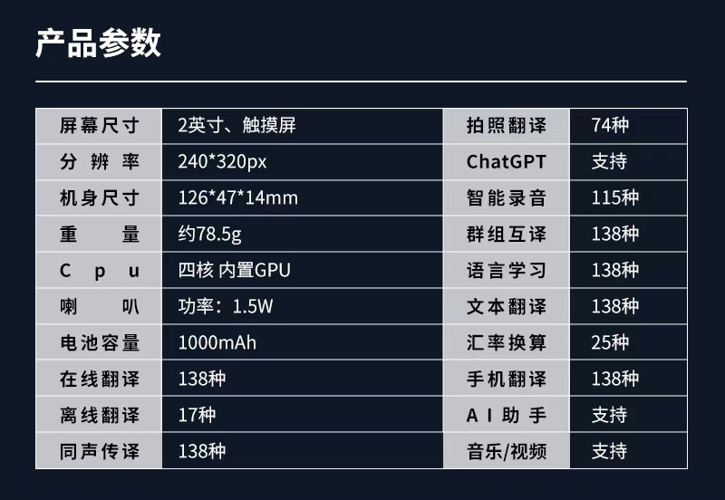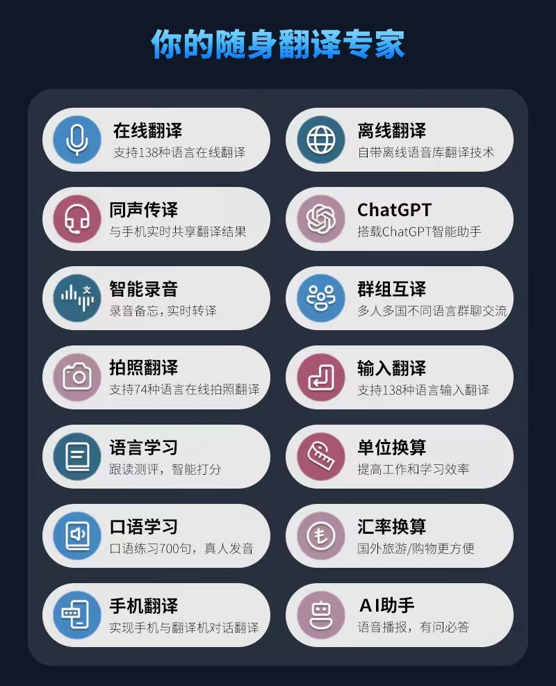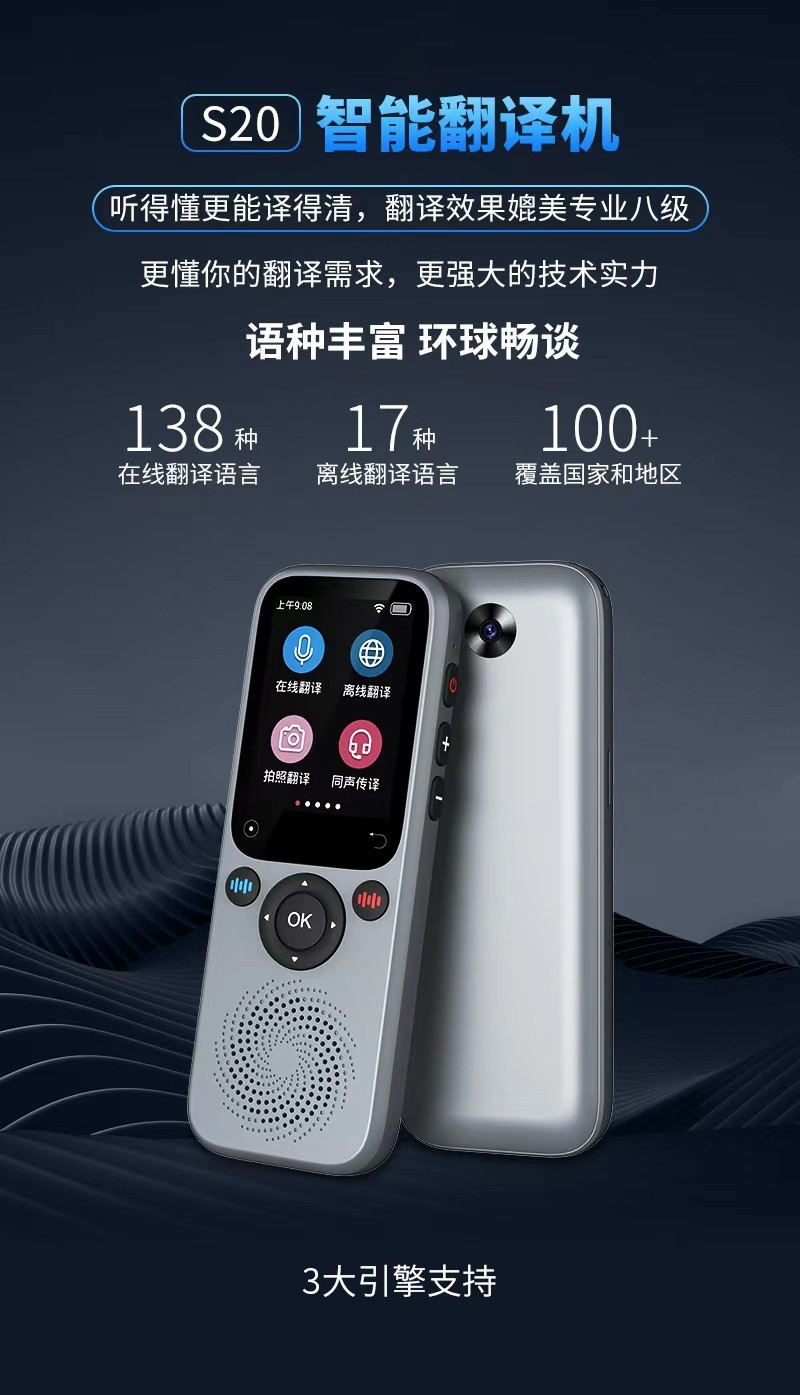 s20智能翻译机多国语言离线拍照AI翻译出国旅游随身同声 互译语音
