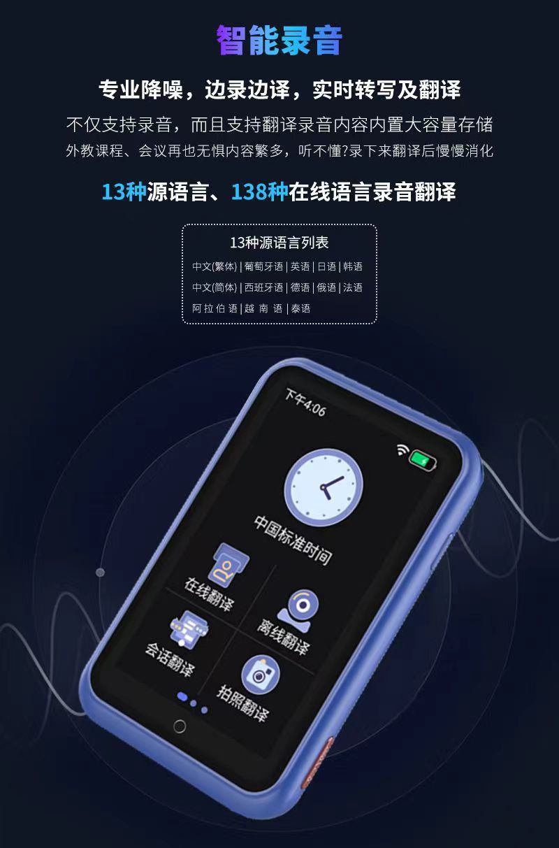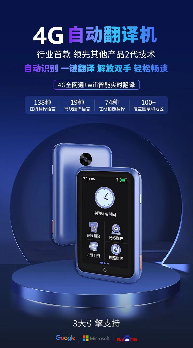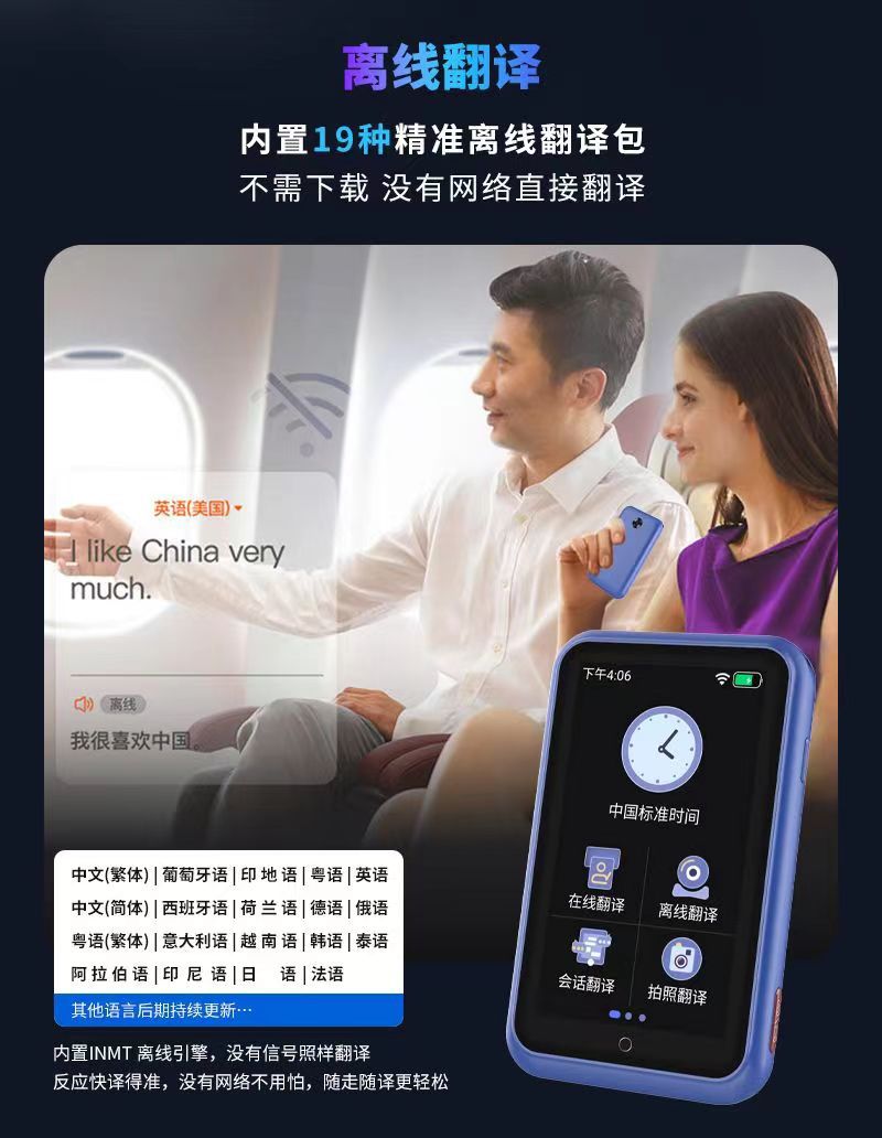 4G版AI智能语音翻译机精准离线 支持139国语言出差办公旅游翻译器