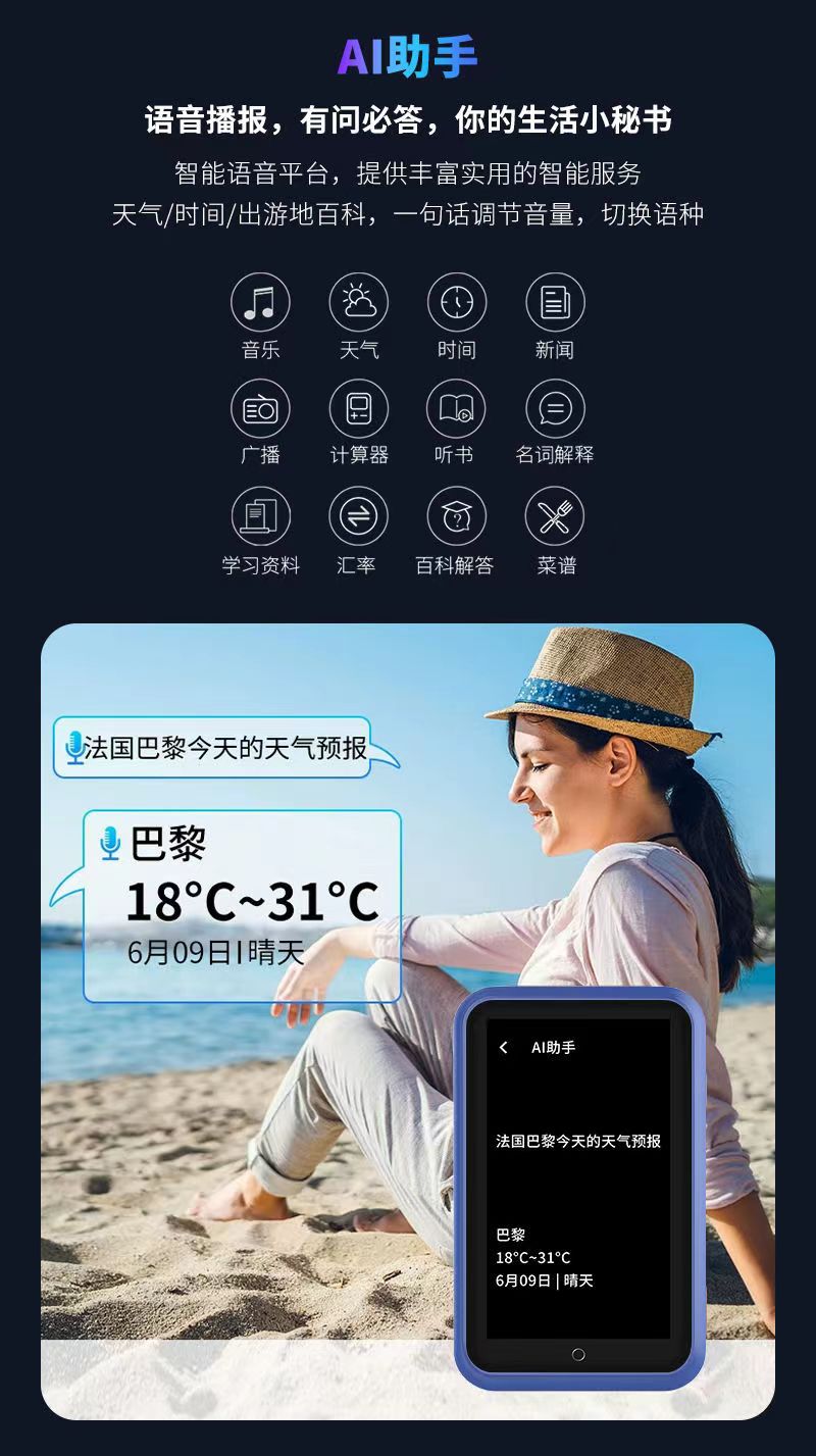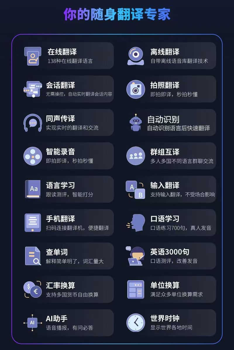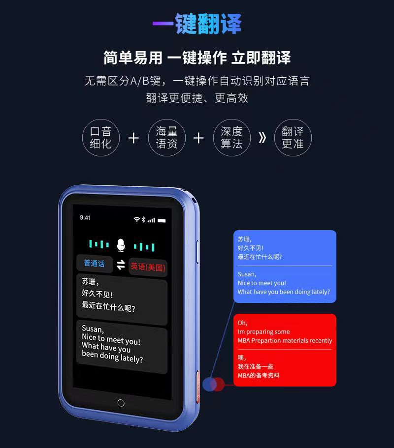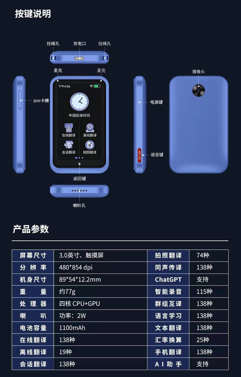 4G版AI智能语音翻译机精准离线 支持139国语言出差办公旅游翻译器