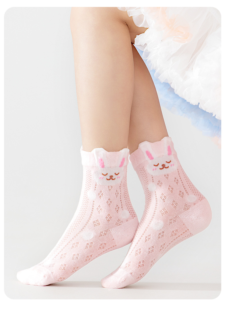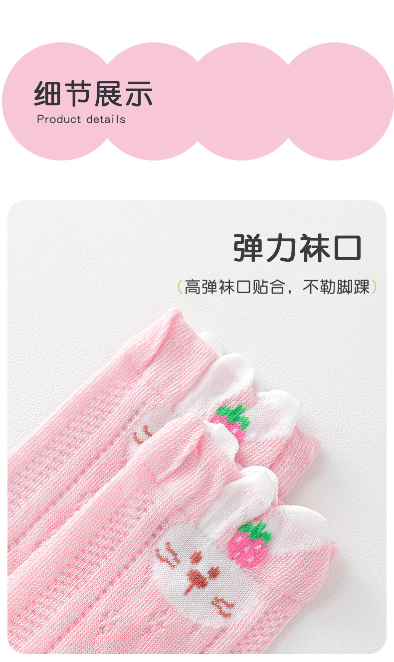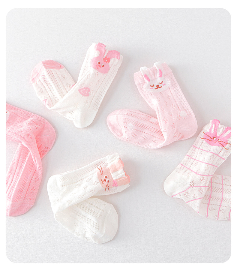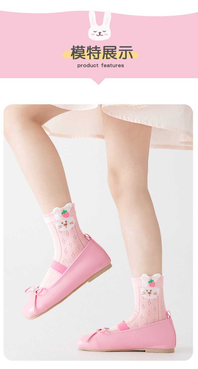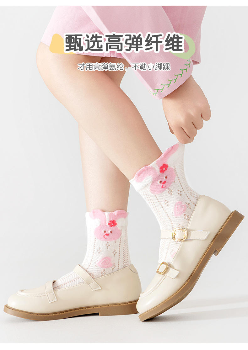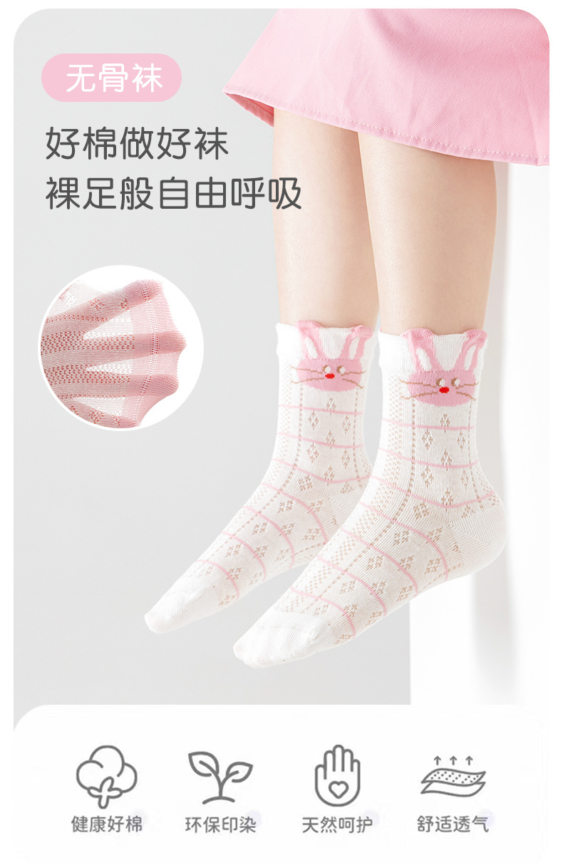2026女童袜子夏季网眼儿童袜透气精梳棉无骨宝宝袜子A类粉色兔子