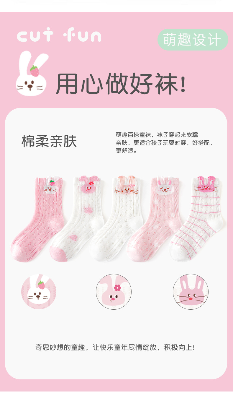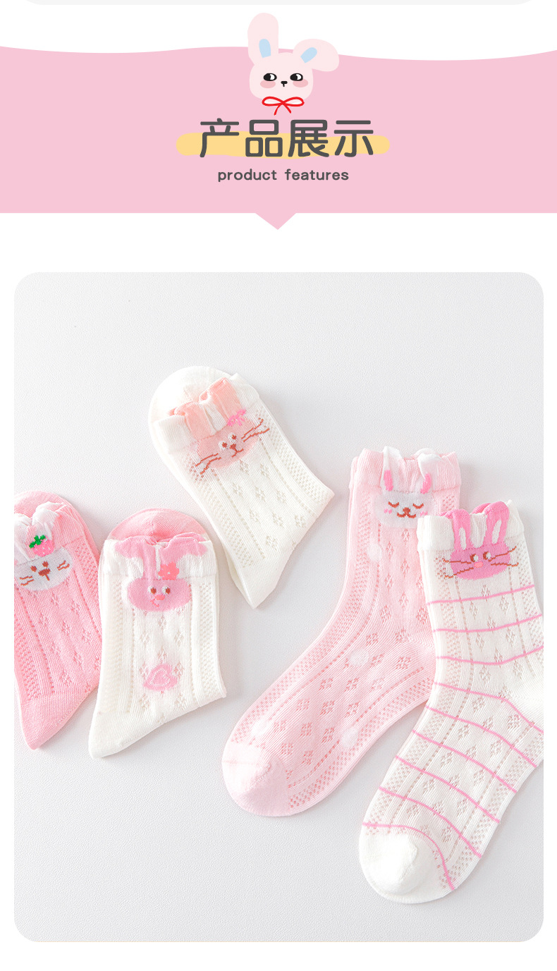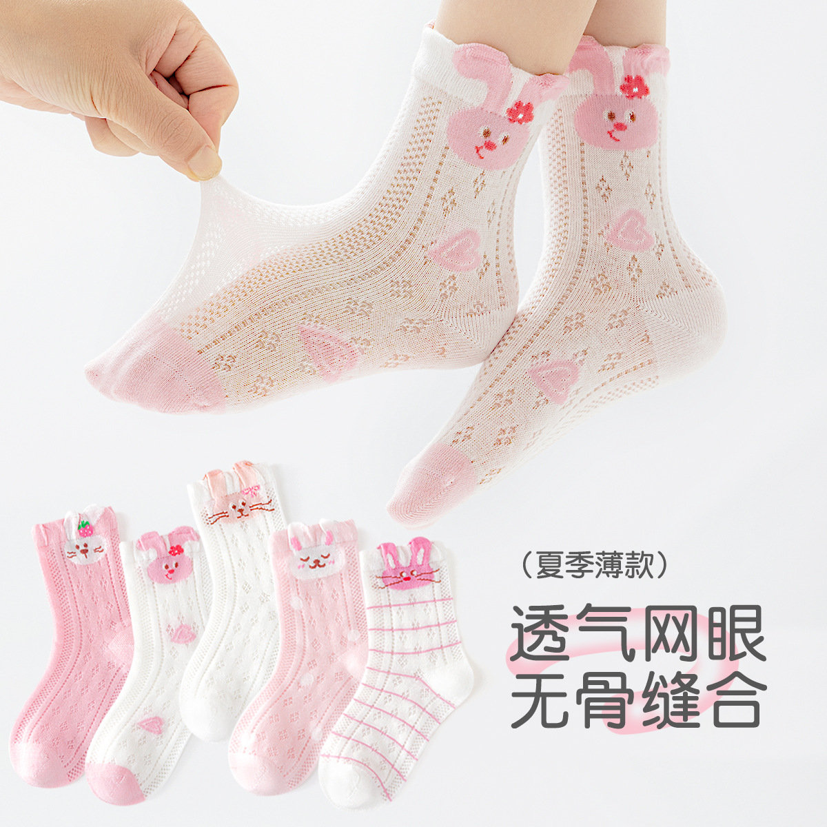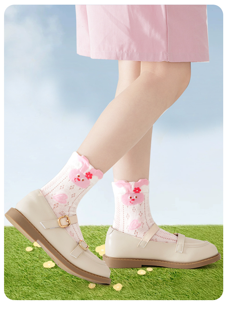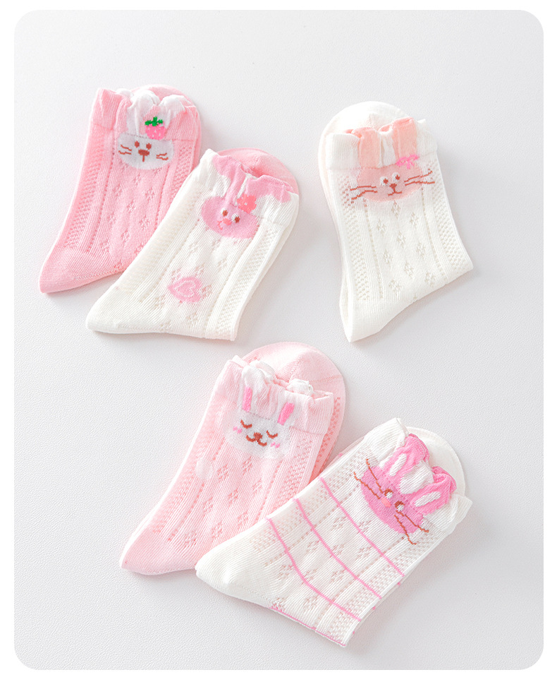 2026女童袜子夏季网眼儿童袜透气精梳棉无骨宝宝袜子A类粉色兔子