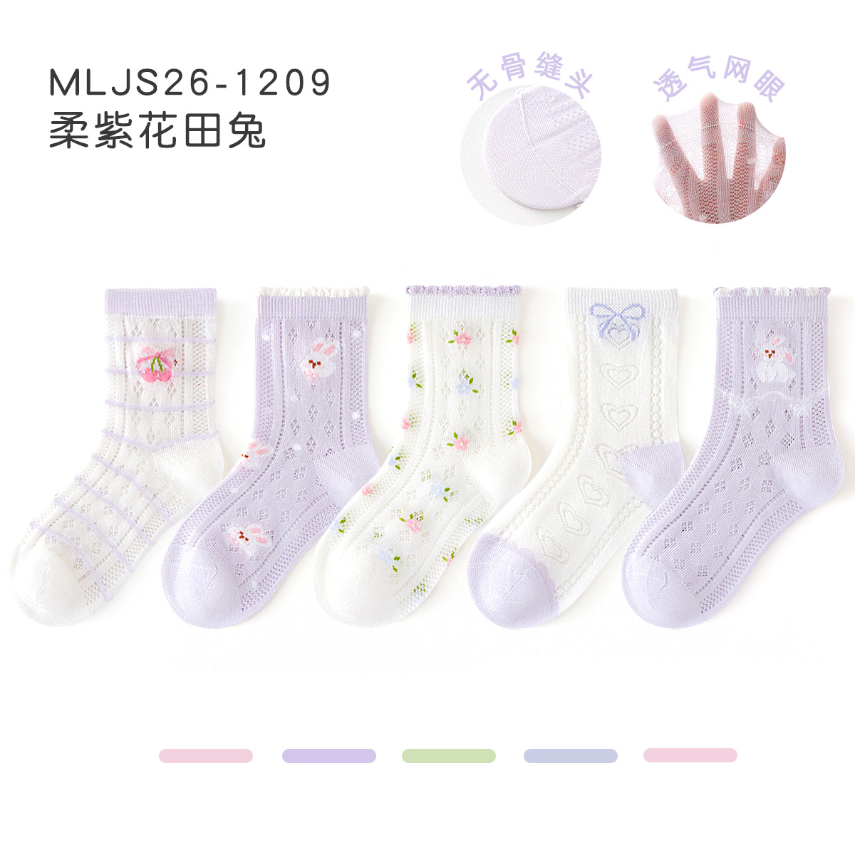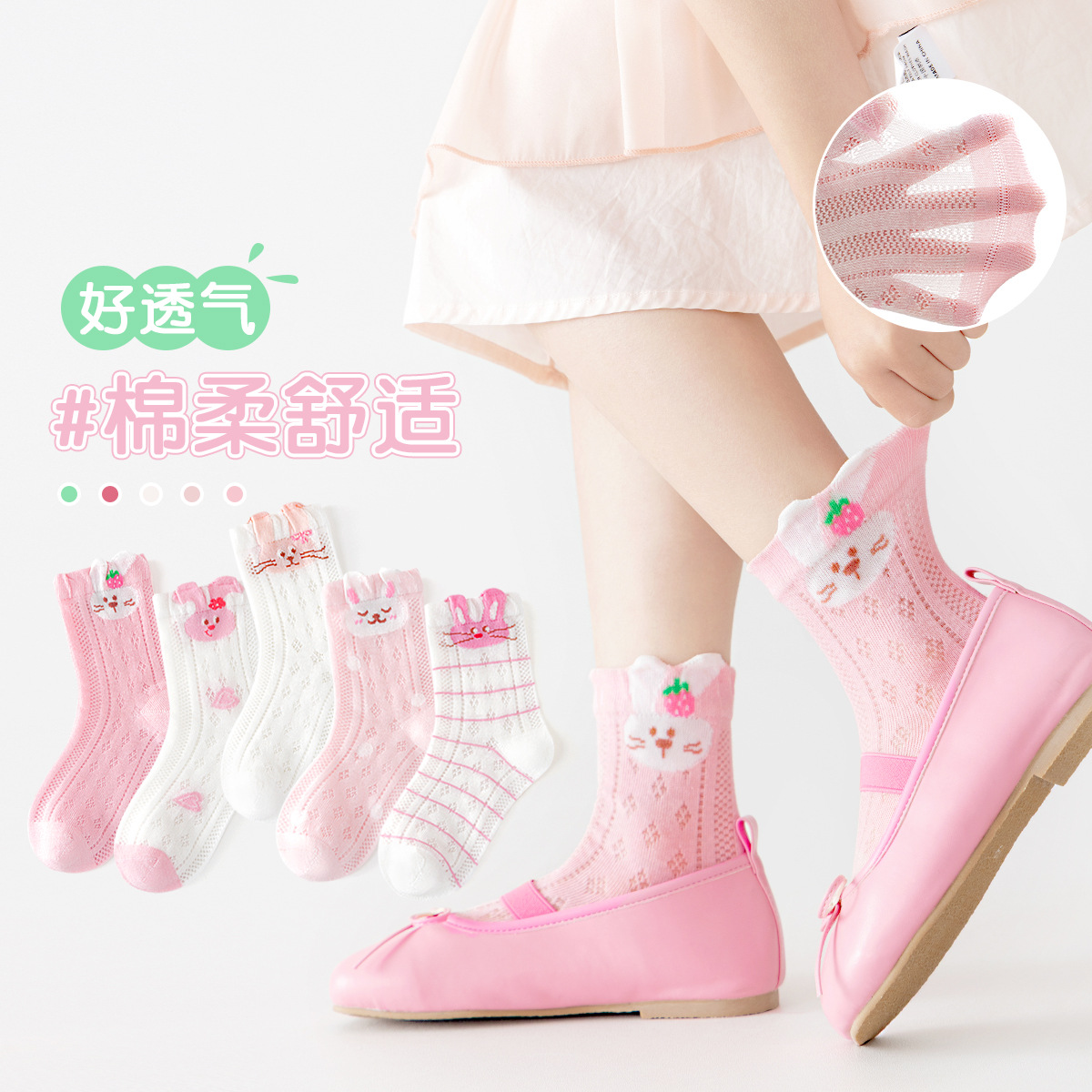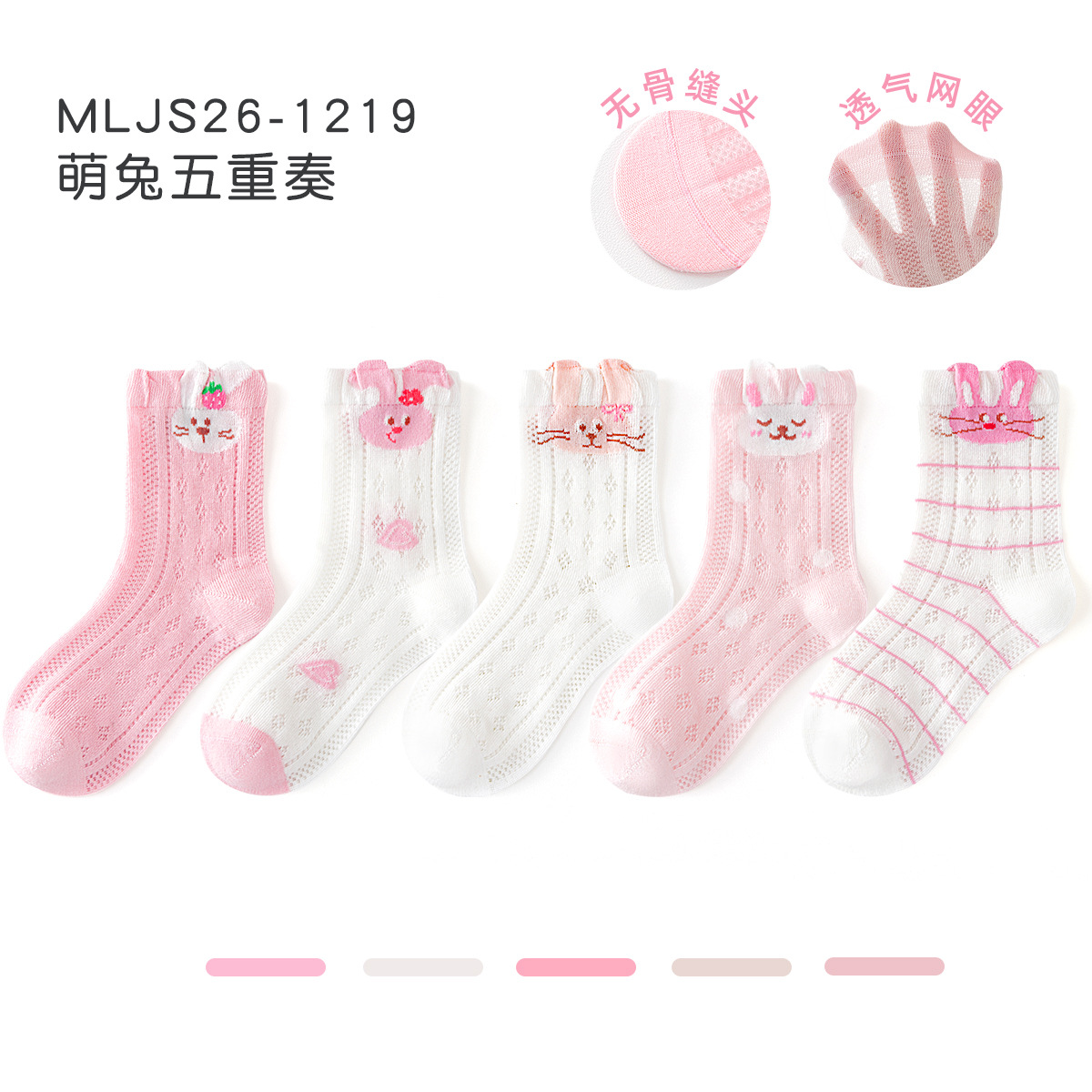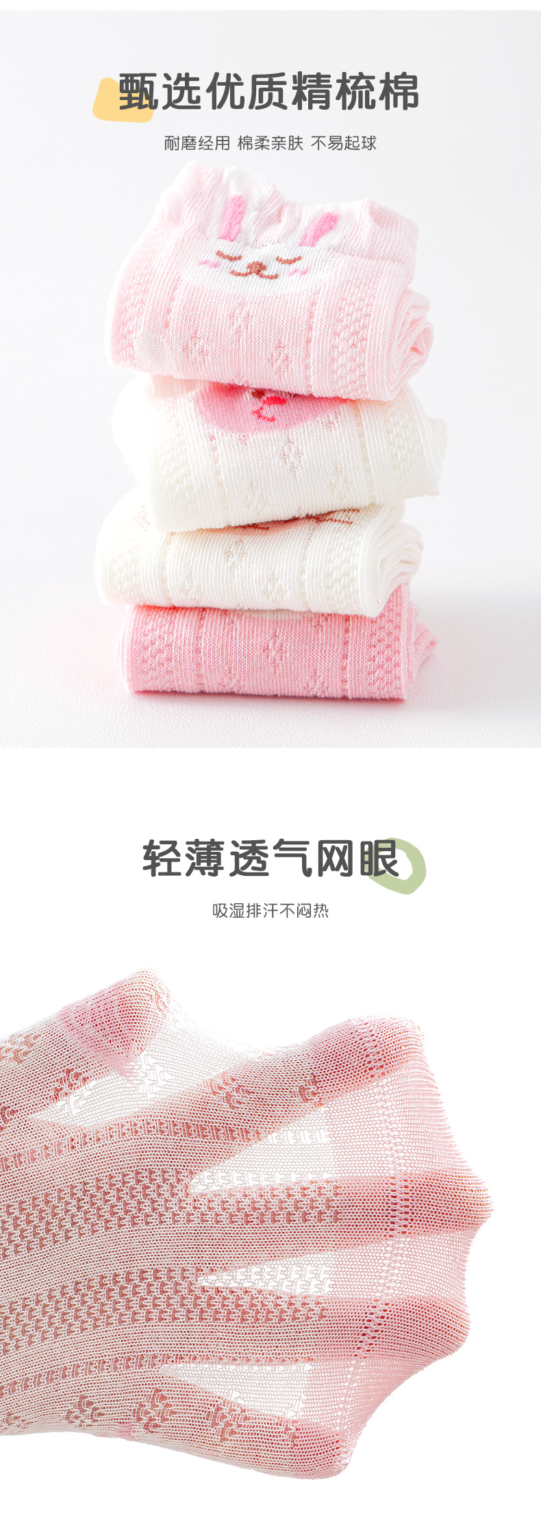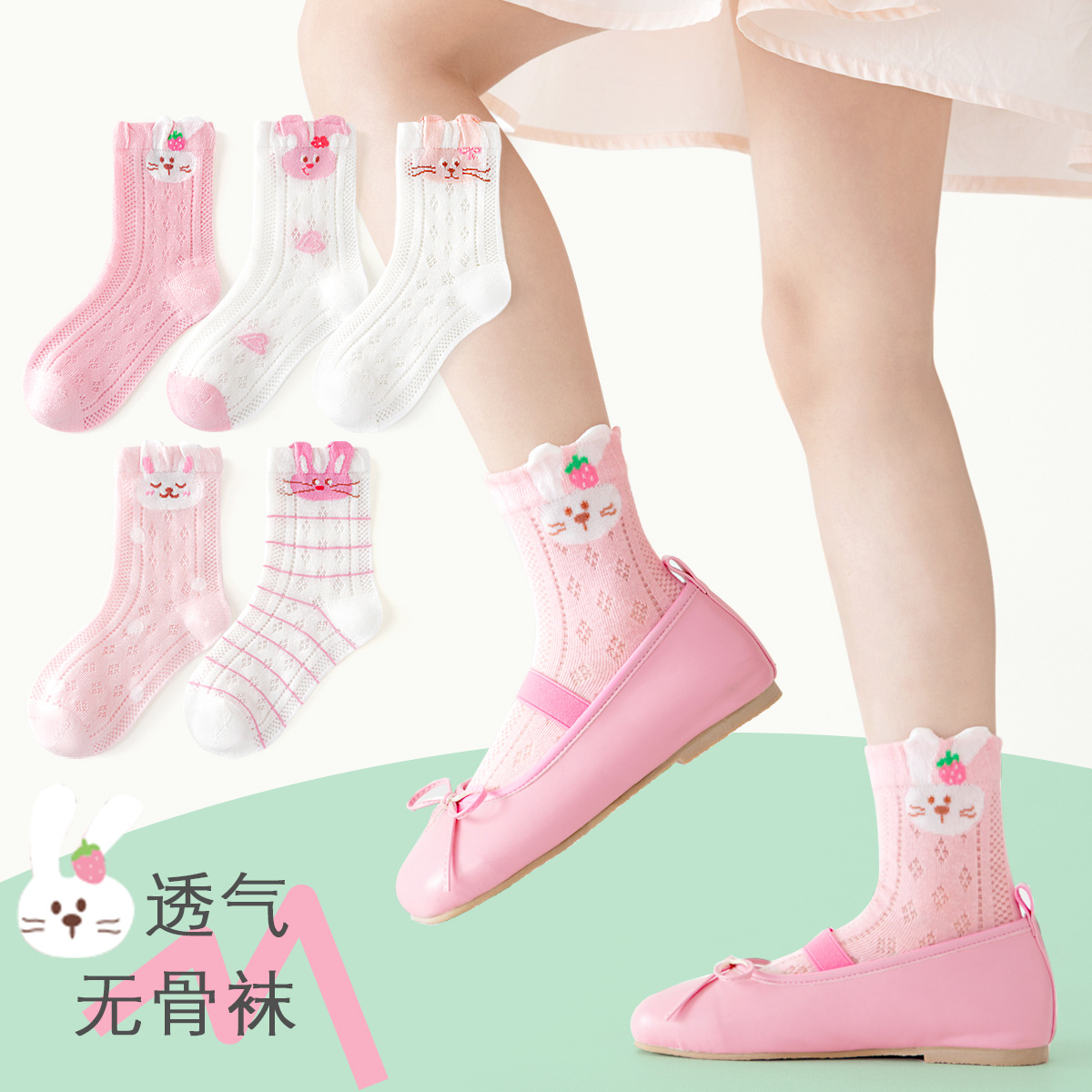 2026女童袜子夏季网眼儿童袜透气精梳棉无骨宝宝袜子A类粉色兔子