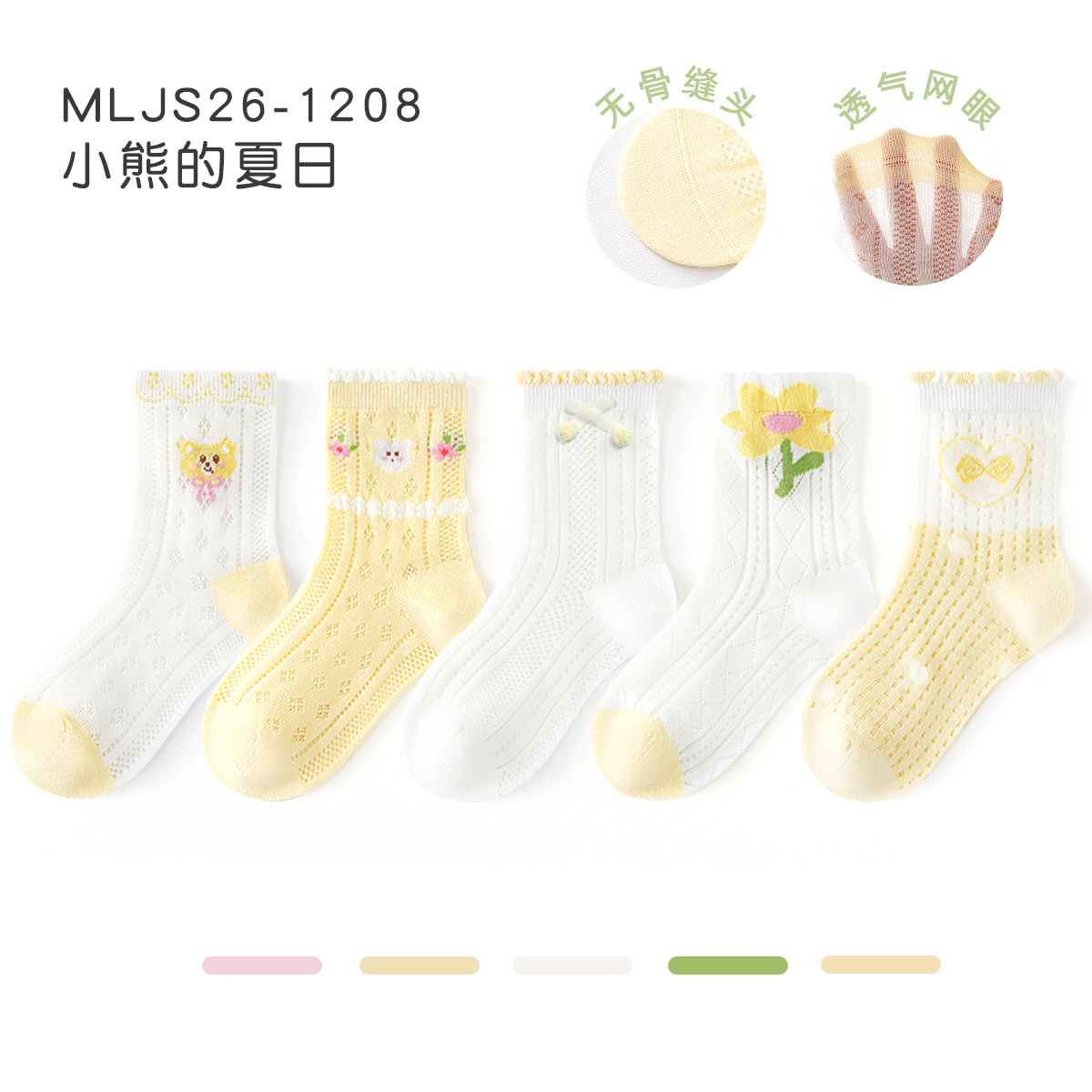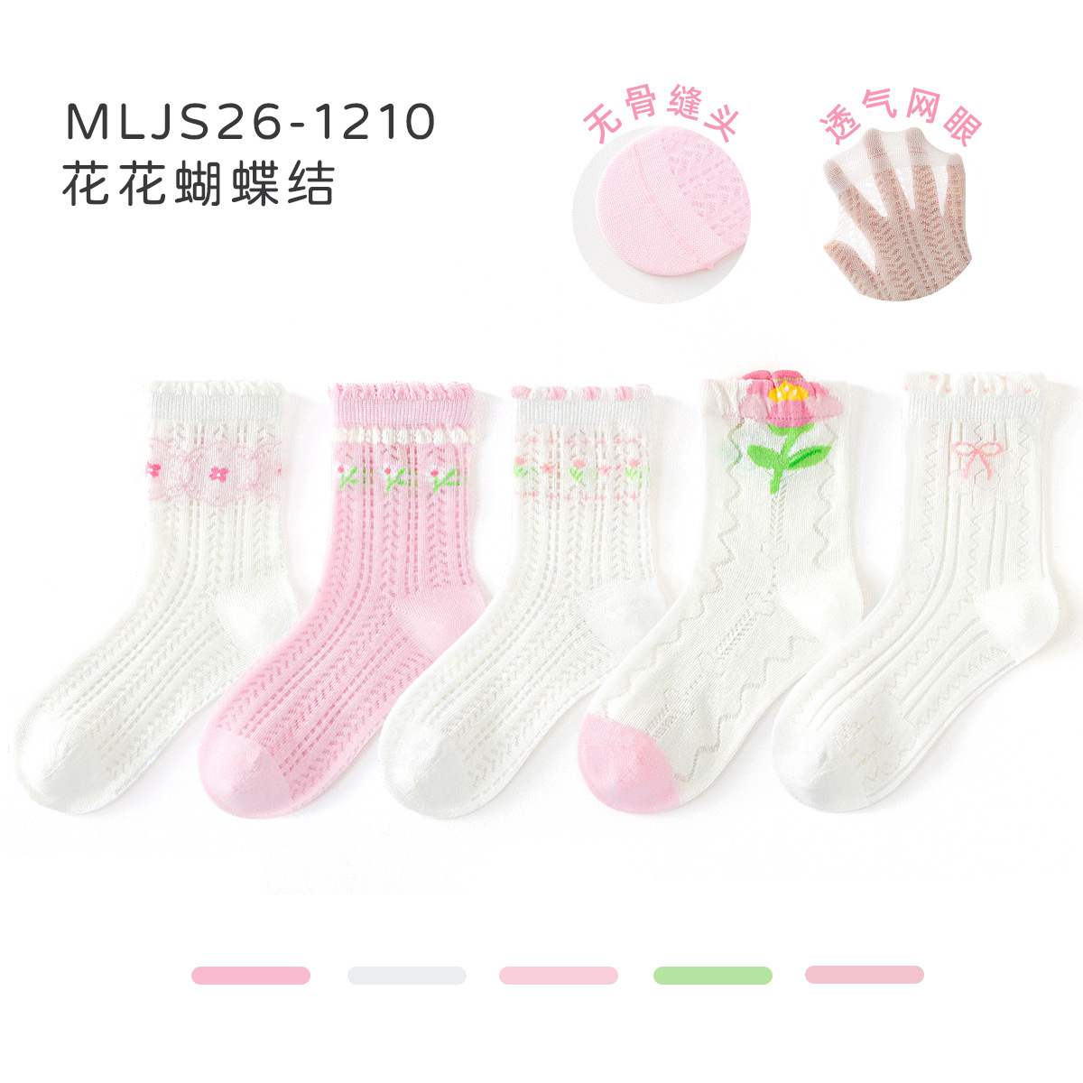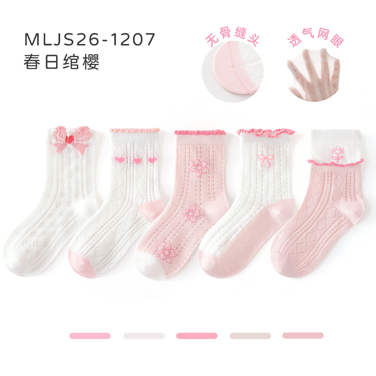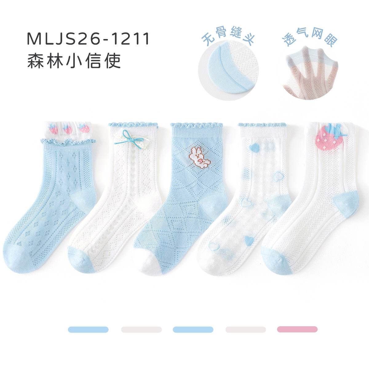 2026女童袜子夏季网眼儿童袜透气精梳棉无骨宝宝袜子A类粉色兔子