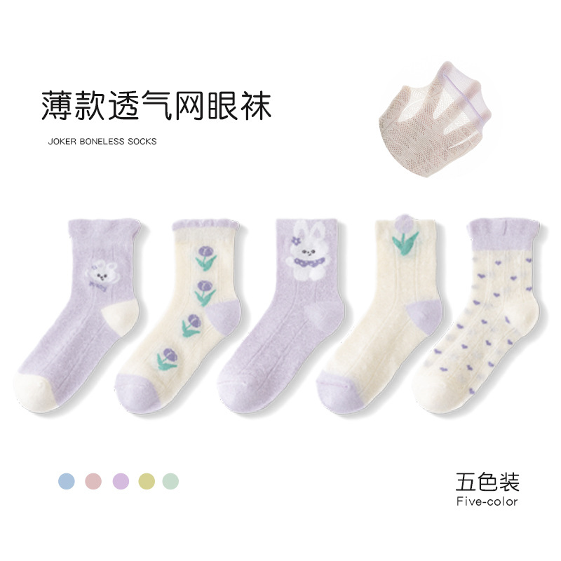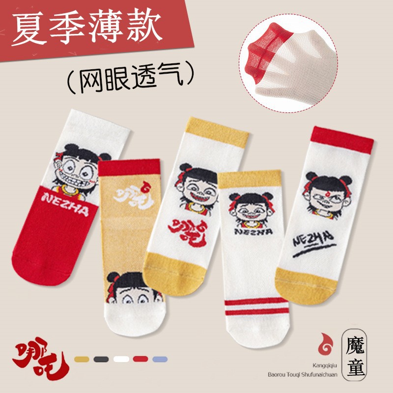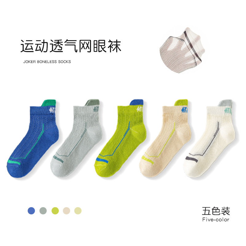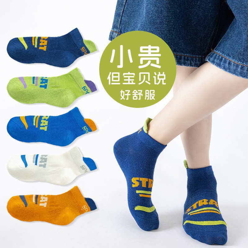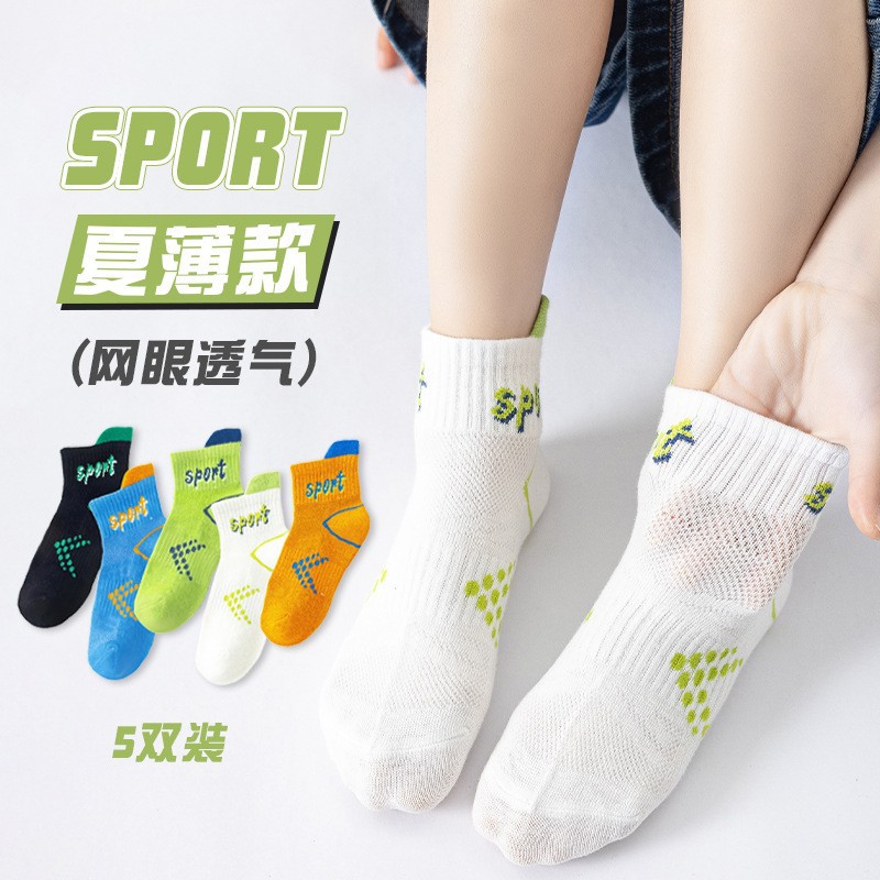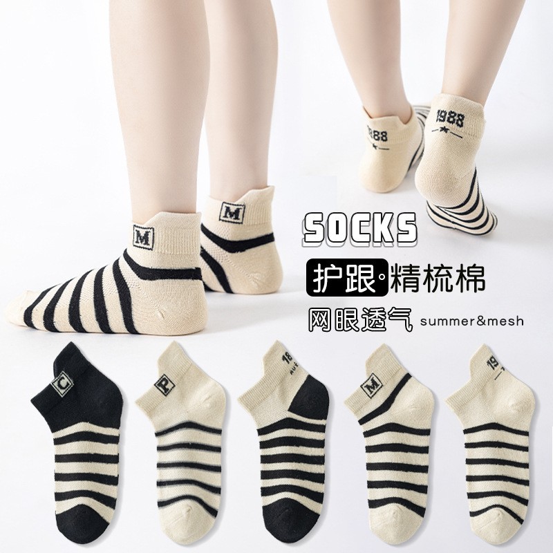 儿童袜子男童夏季薄款网眼短袜透气字母精梳棉中大童男童儿童棉袜
