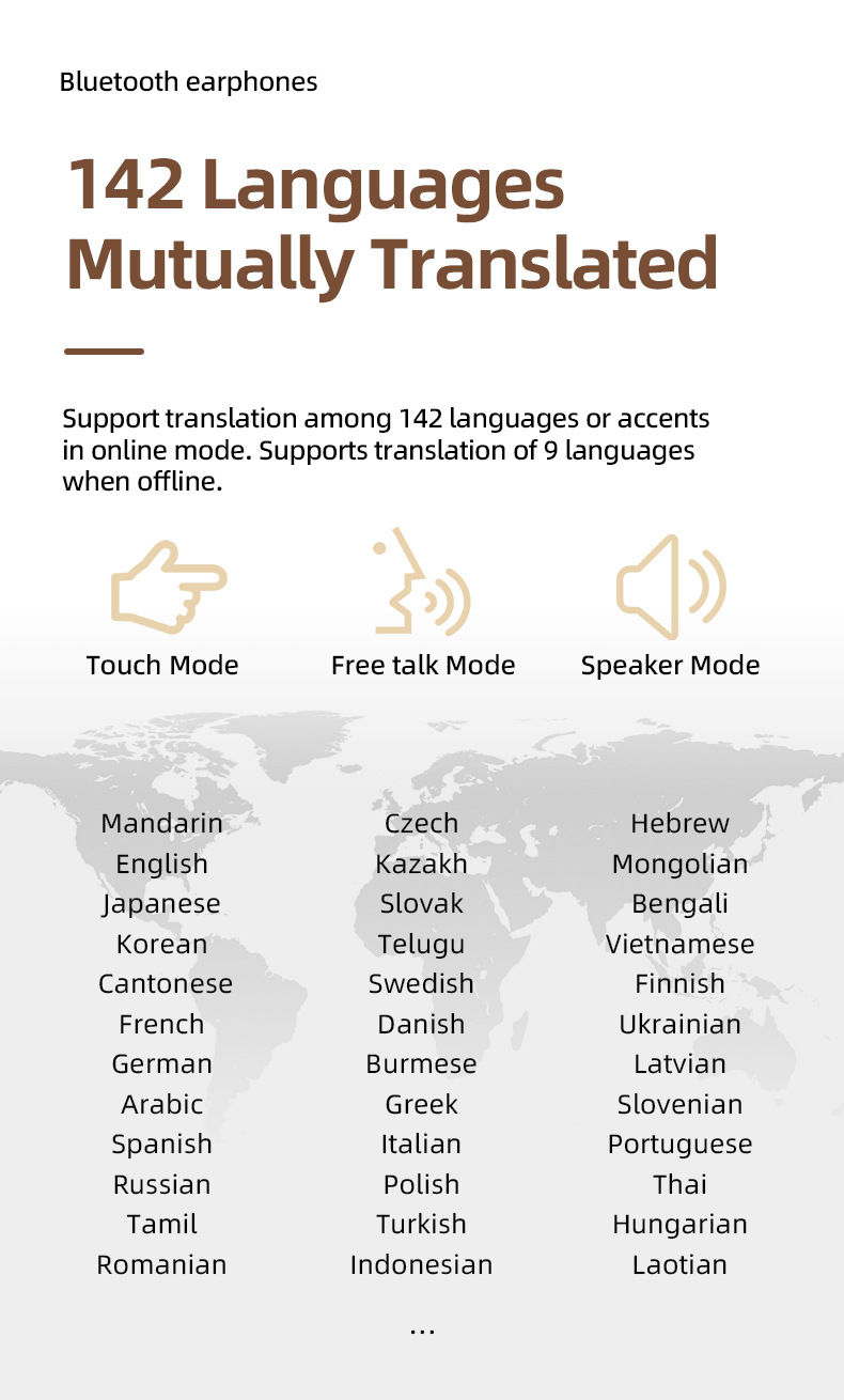 T23无线蓝牙翻译耳机挂耳式翻译器降噪多国语言翻译跨境外贸原厂