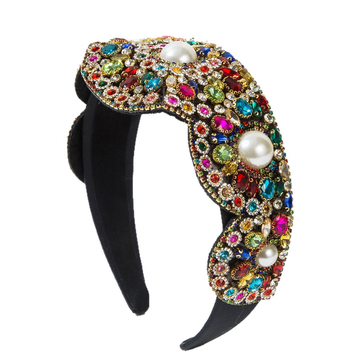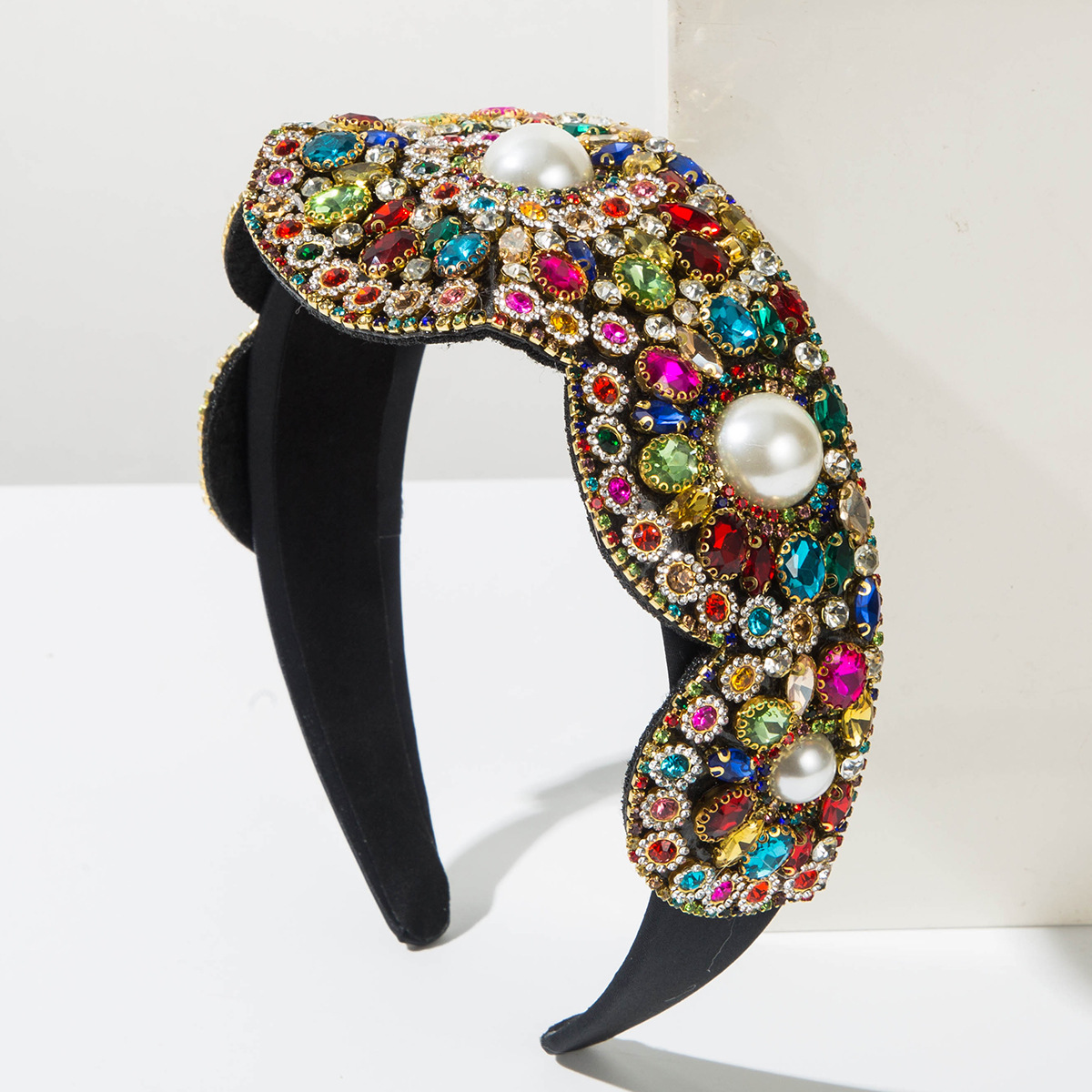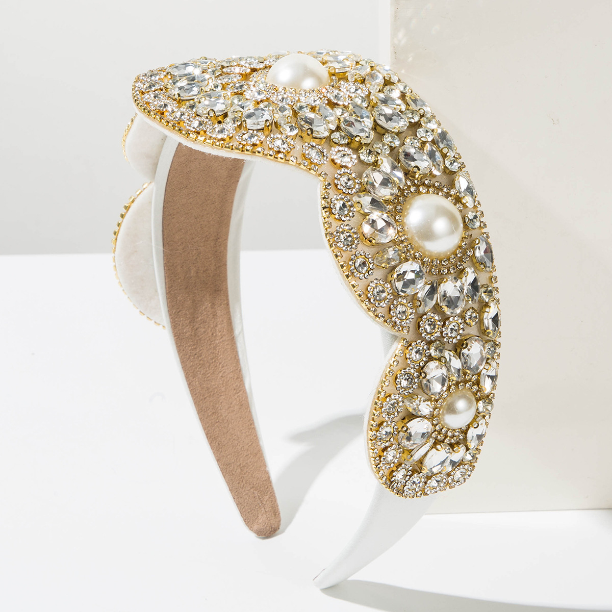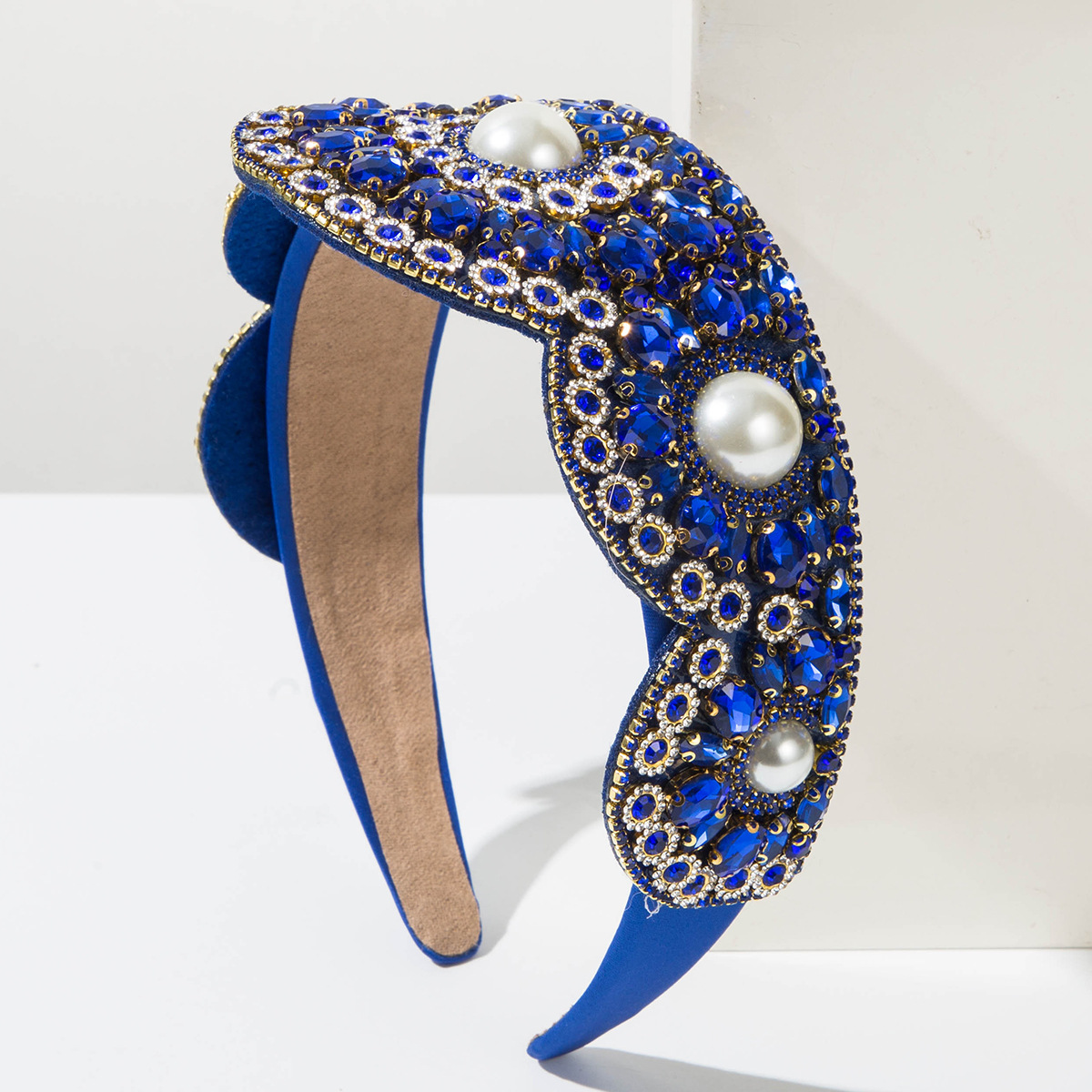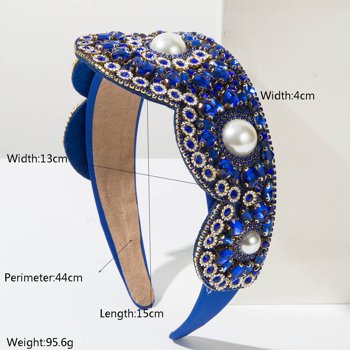 和鸣发箍跨境新款巴洛克复古夸张镶钻珍珠皇冠头箍宽边轻奢风发饰